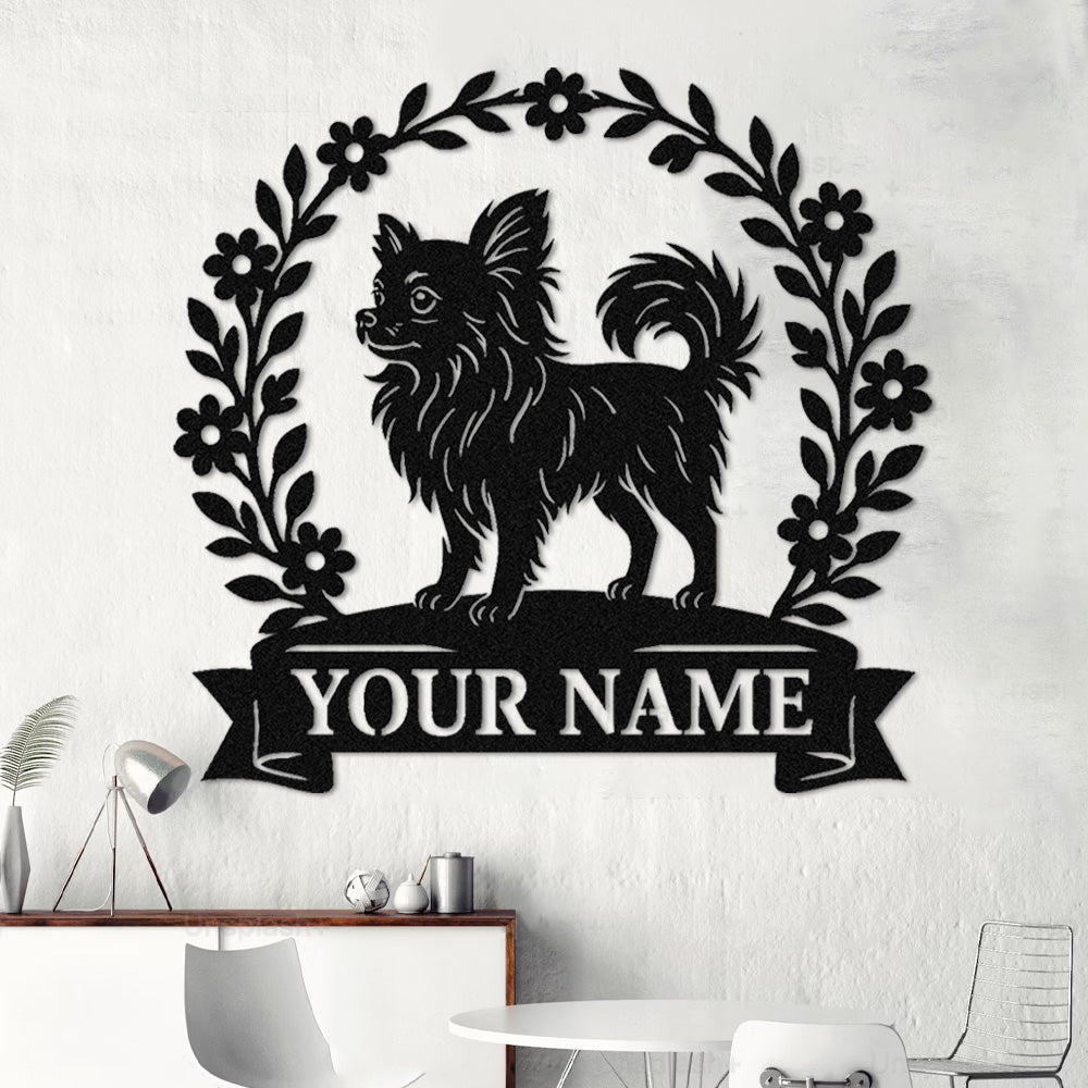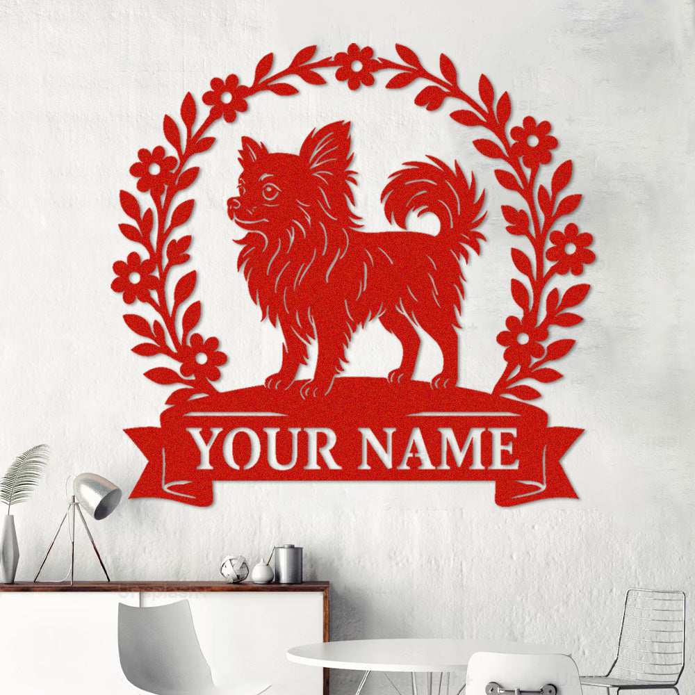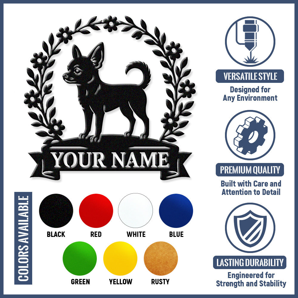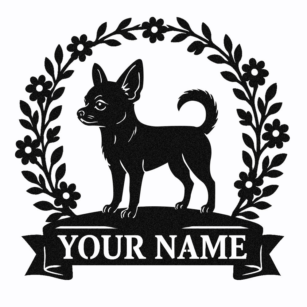 Short-haired Chihuahua Wreath Metal Wall Art Dog Lover Personalized Memorial Metal Sign