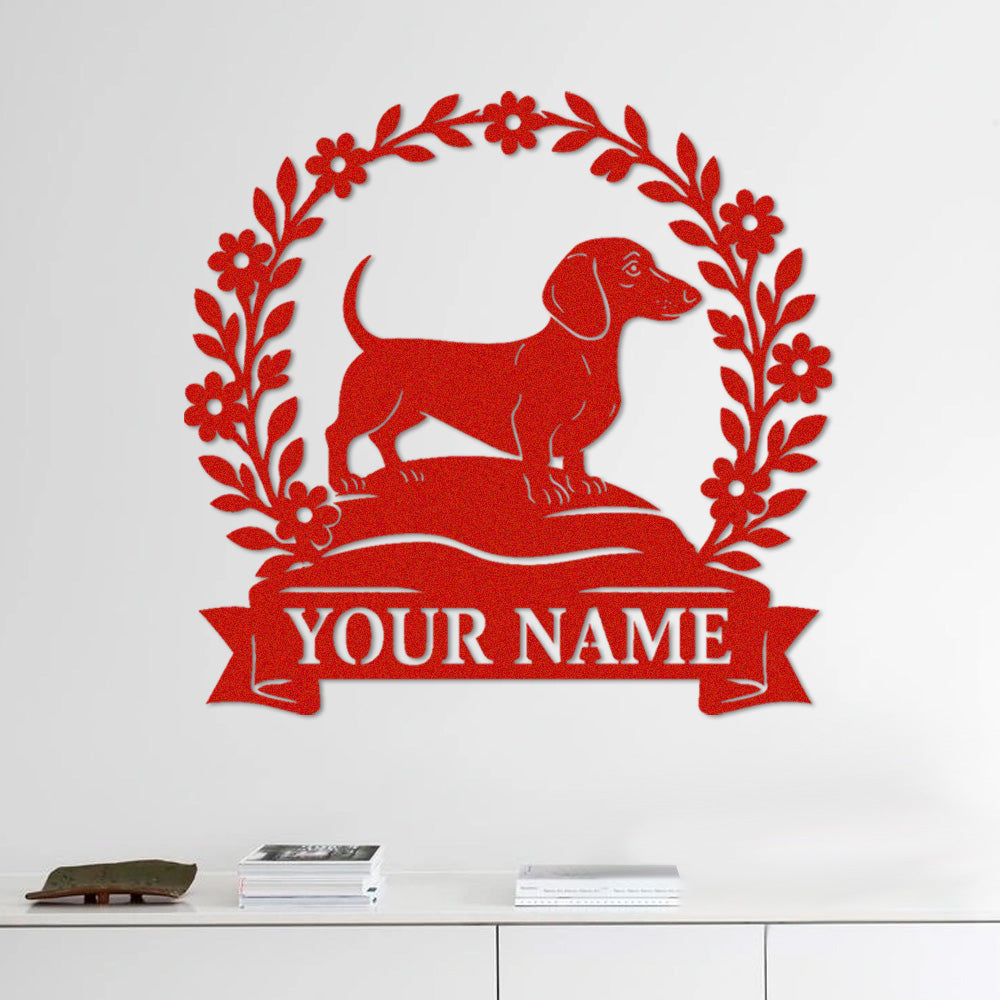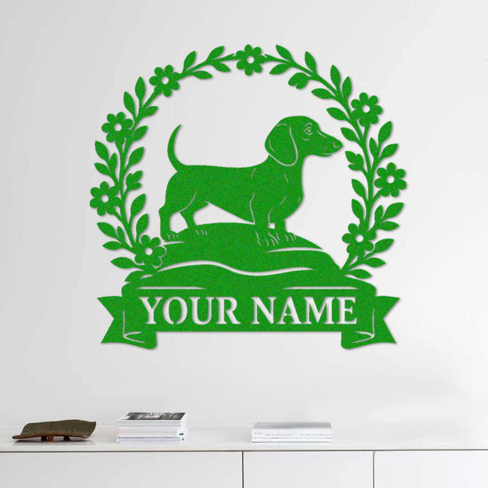 Dachshund Wreath Metal Wall Art Dog Lover Personalized Memorial Metal Sign