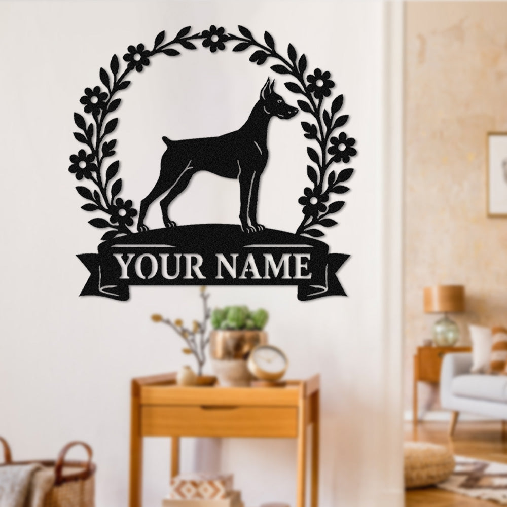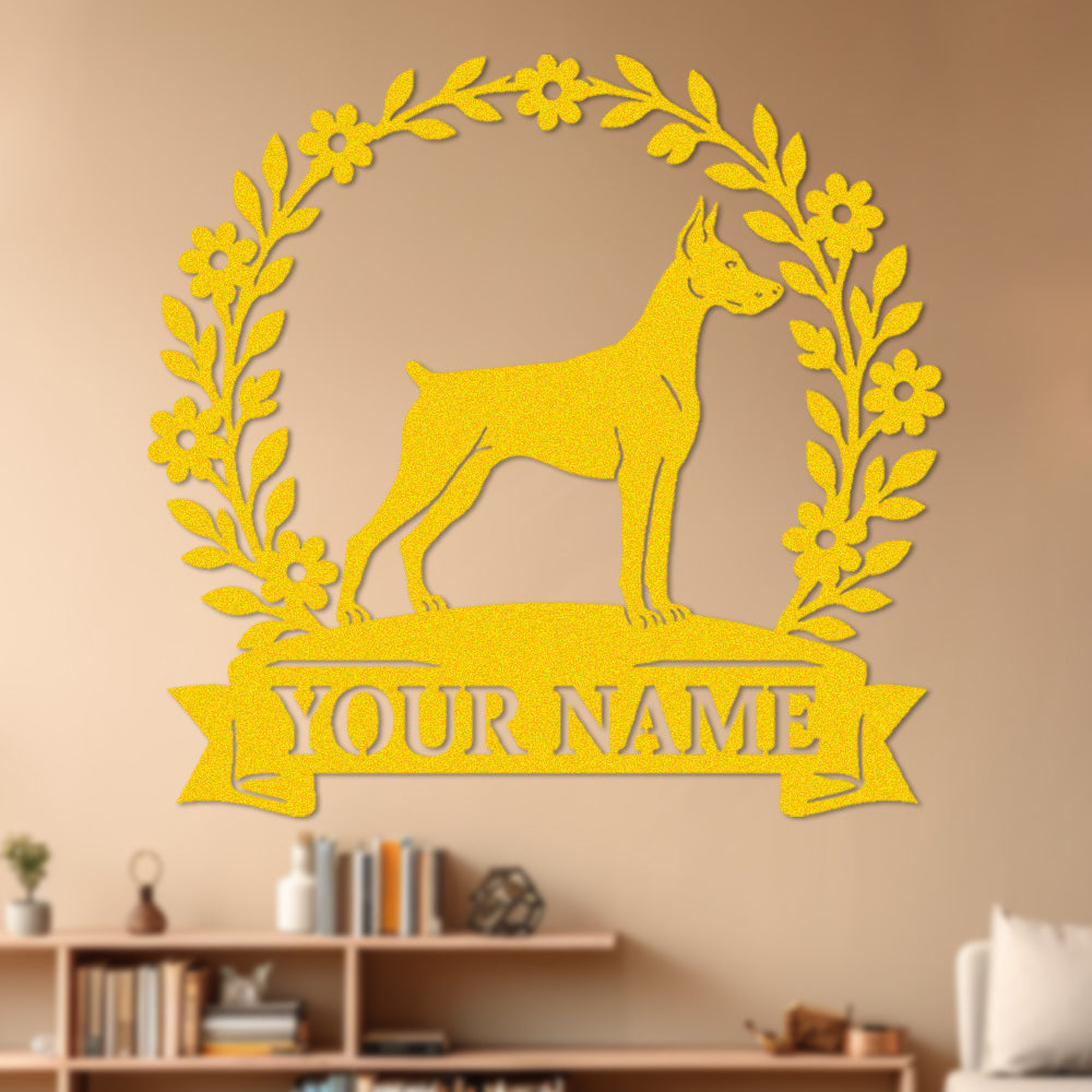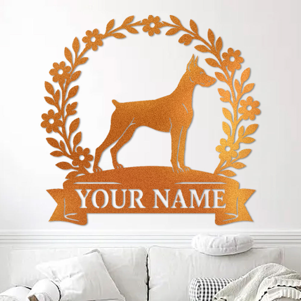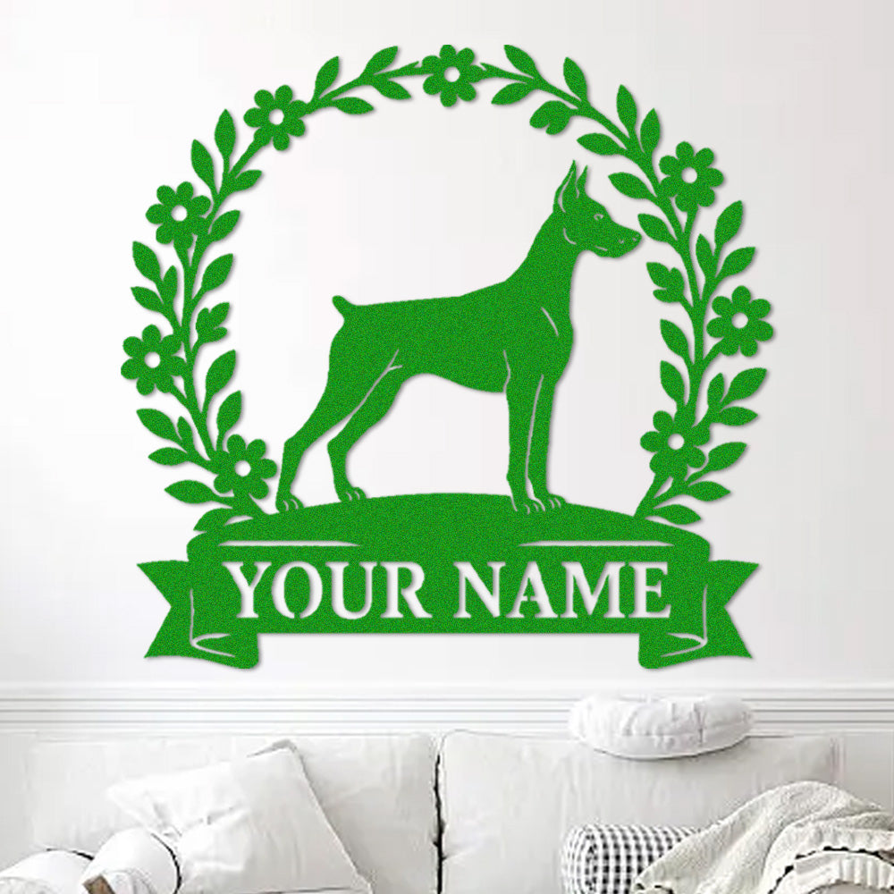 Doberman Pinscher Wreath Metal Wall Art Dog Lover Personalized Memorial Metal Sign