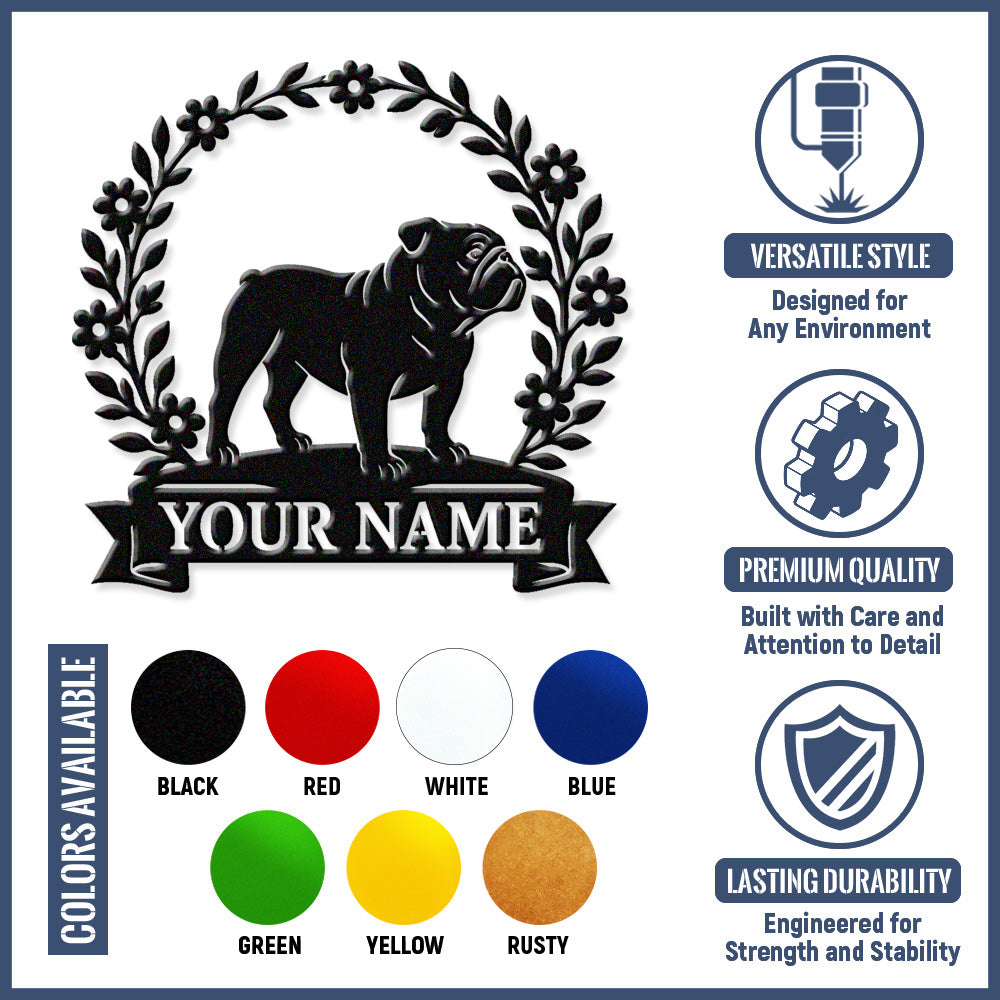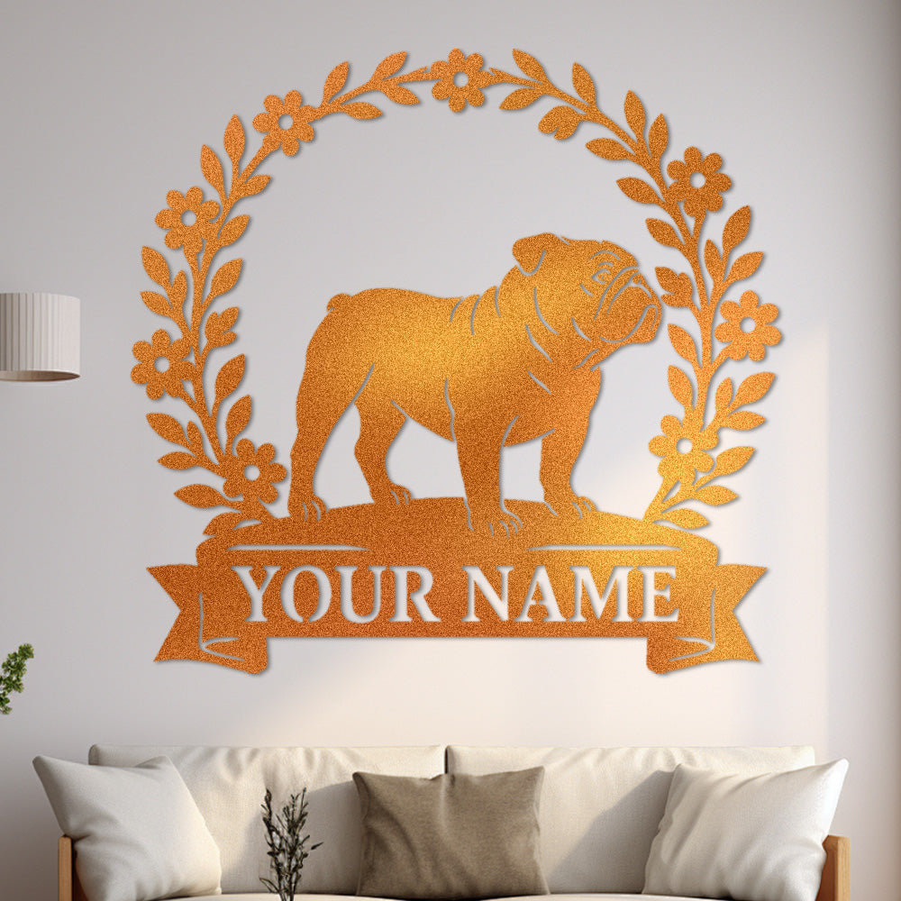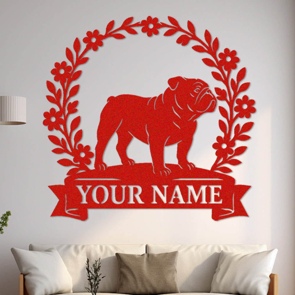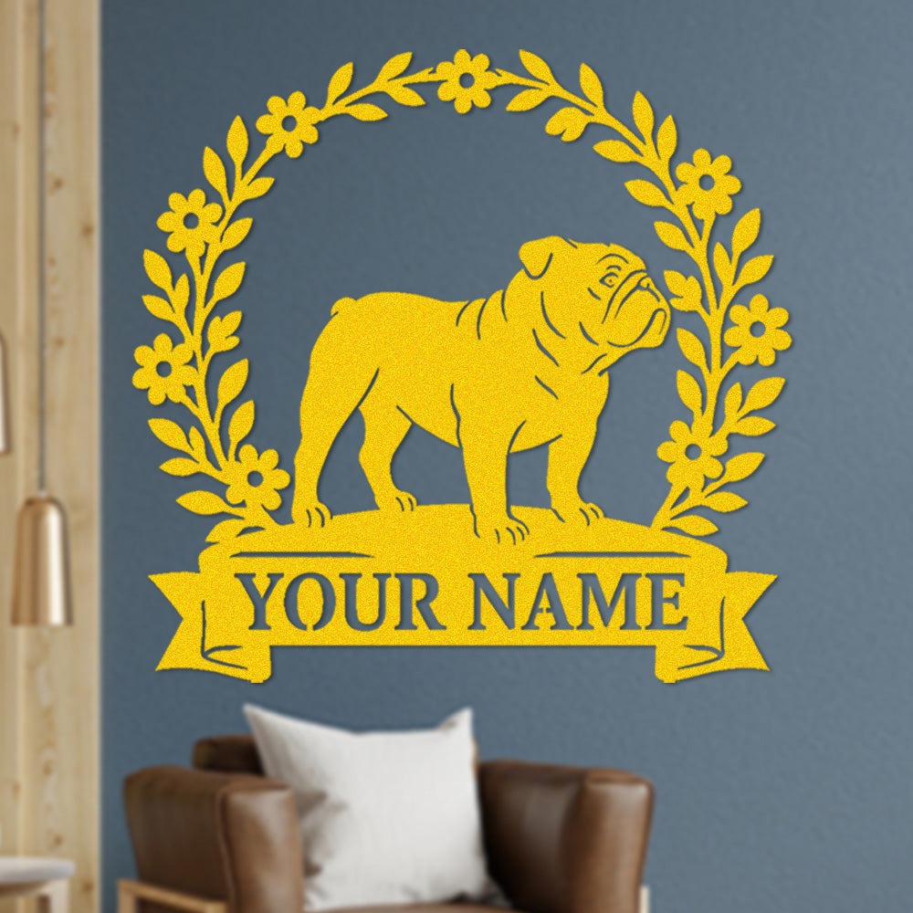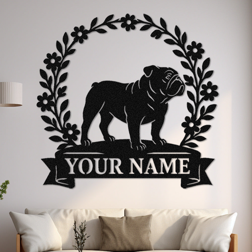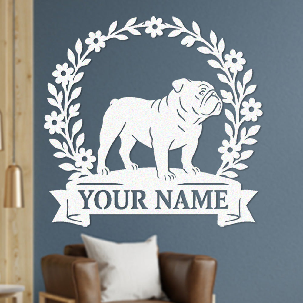 English Bulldog Wreath Metal Wall Art Dog Lover Personalized Memorial Metal Sign