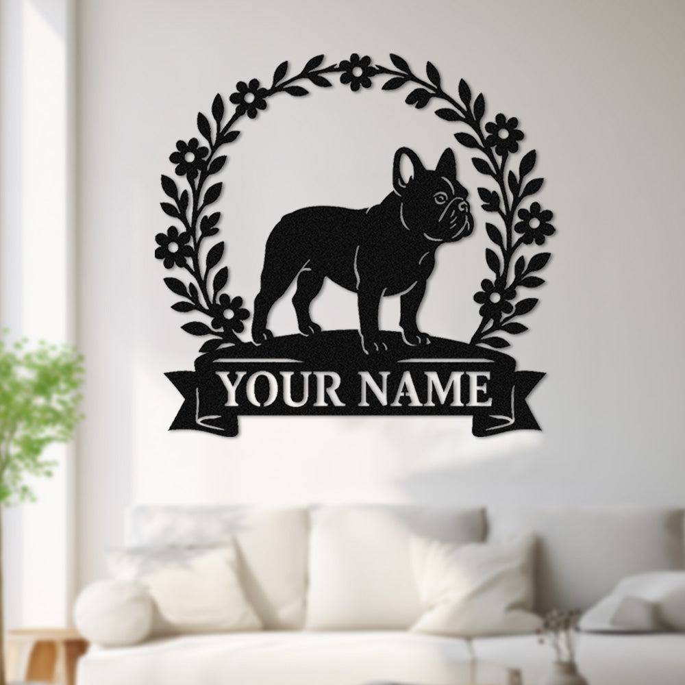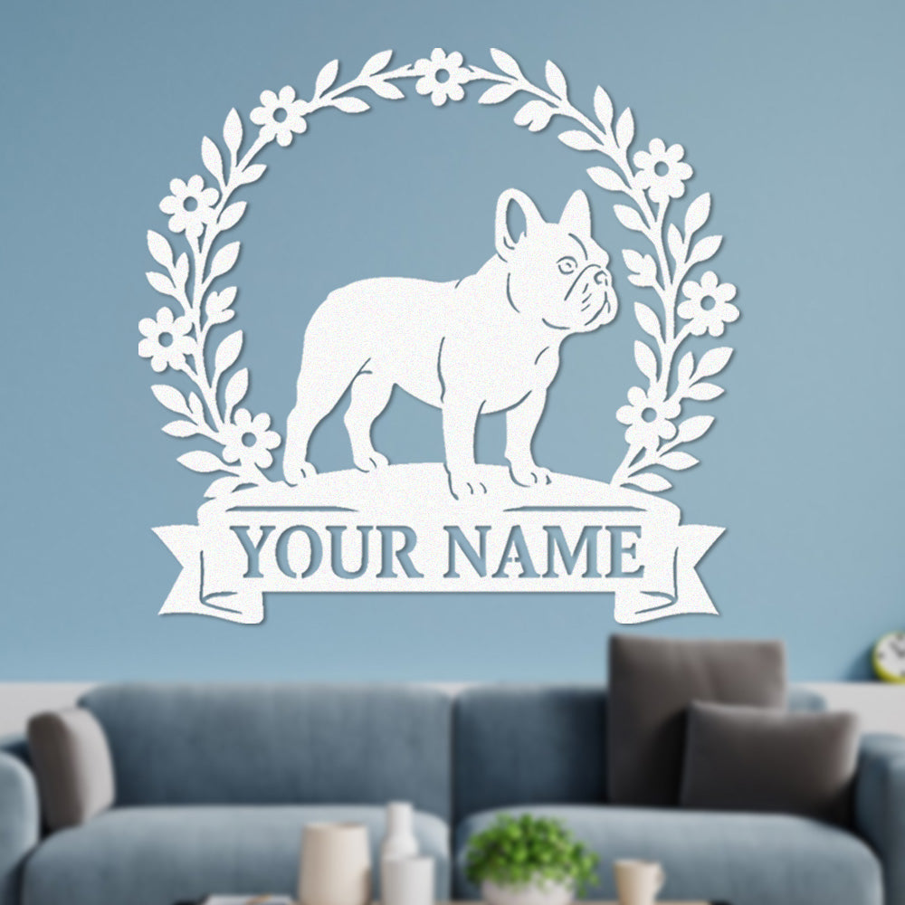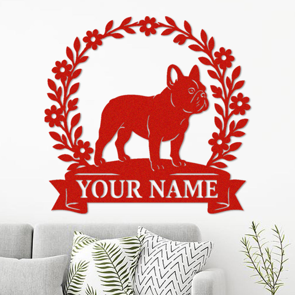 French Bulldog Wreath Metal Wall Art Dog Lover Personalized Memorial Metal Sign