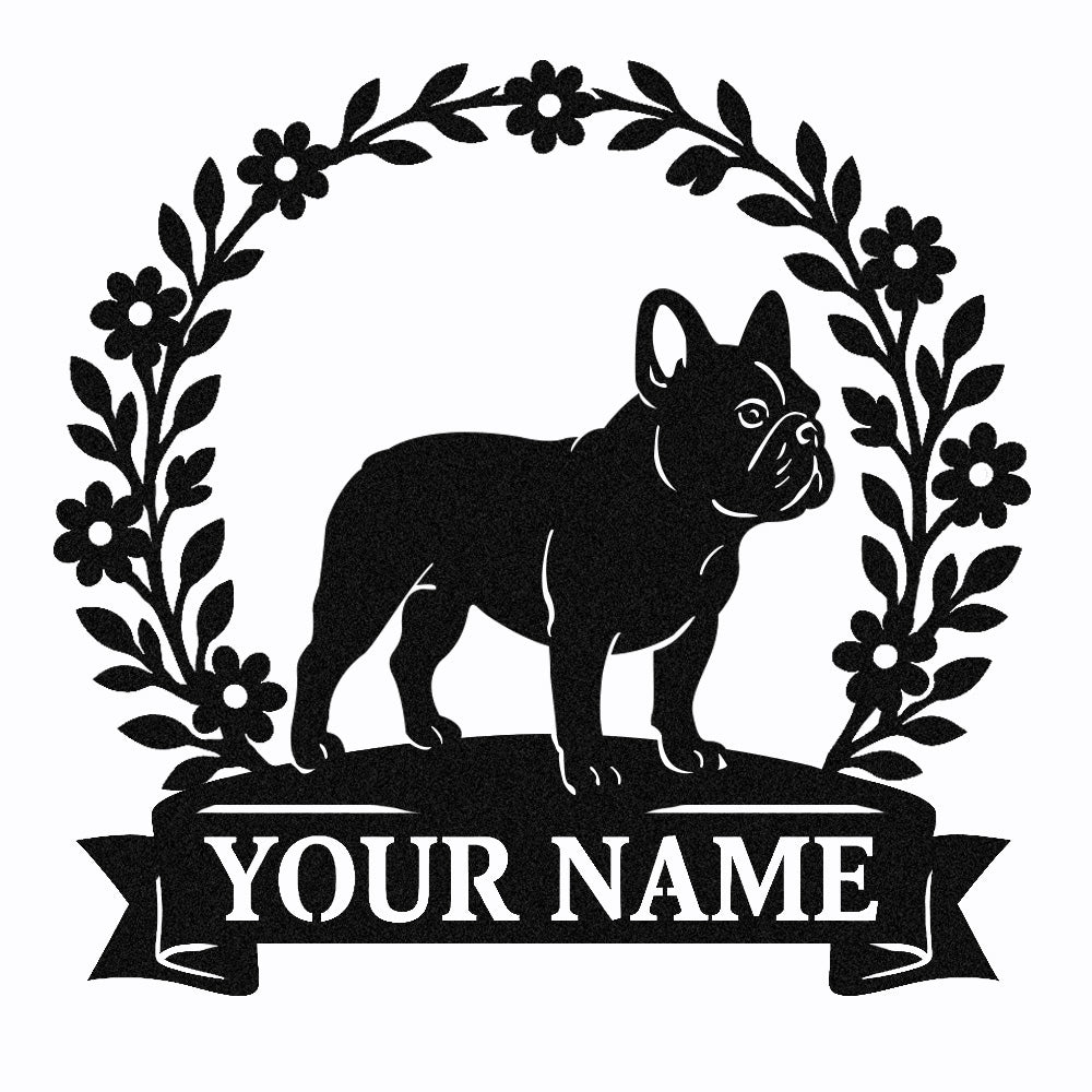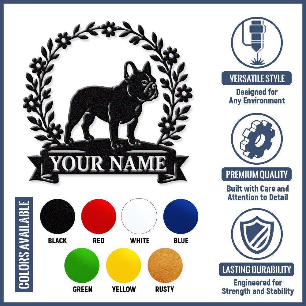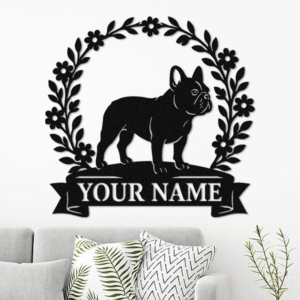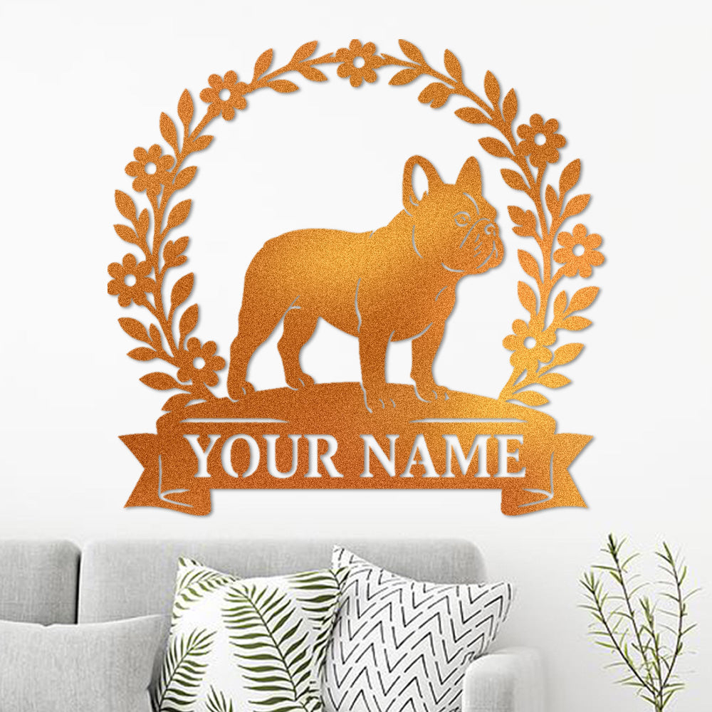 French Bulldog Wreath Metal Wall Art Dog Lover Personalized Memorial Metal Sign