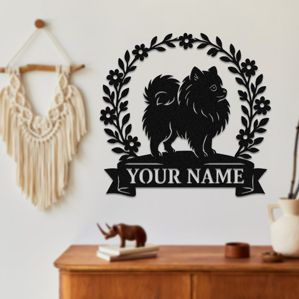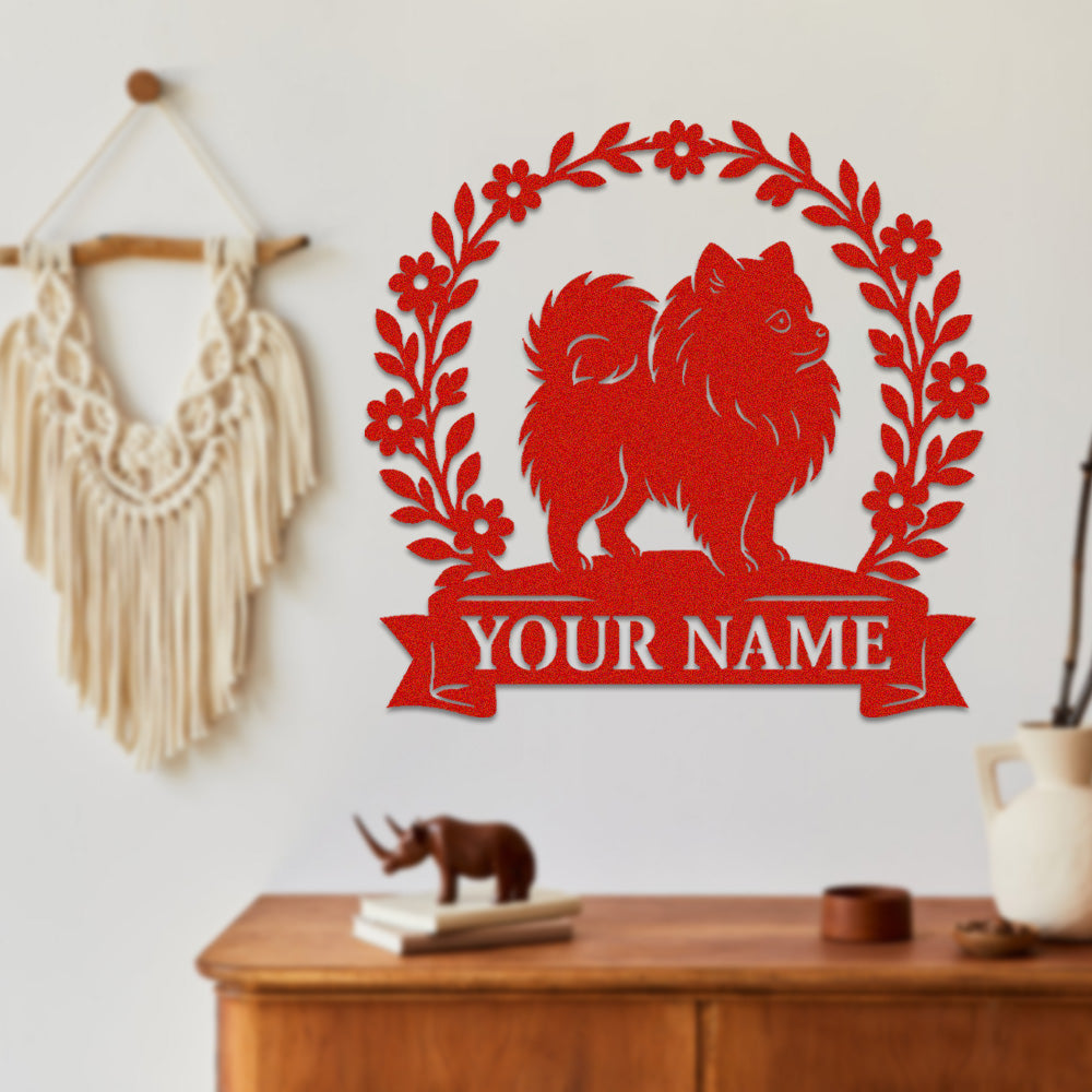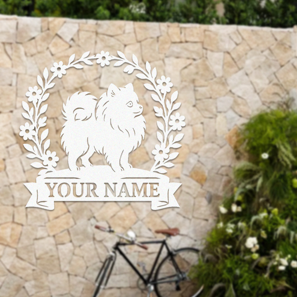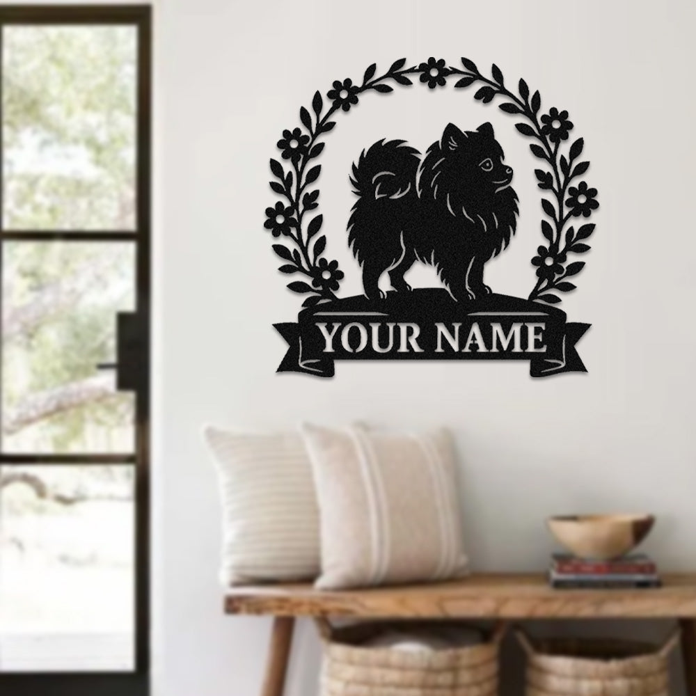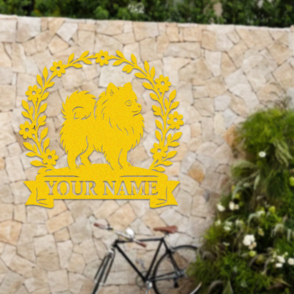 Pomeranian Wreath Metal Wall Art Dog Lover Personalized Memorial Metal Sign