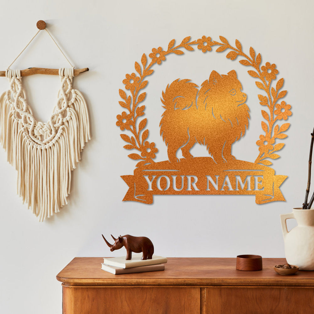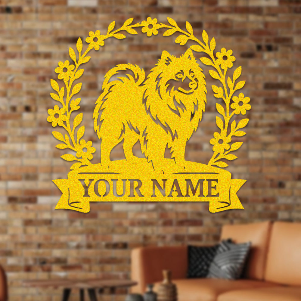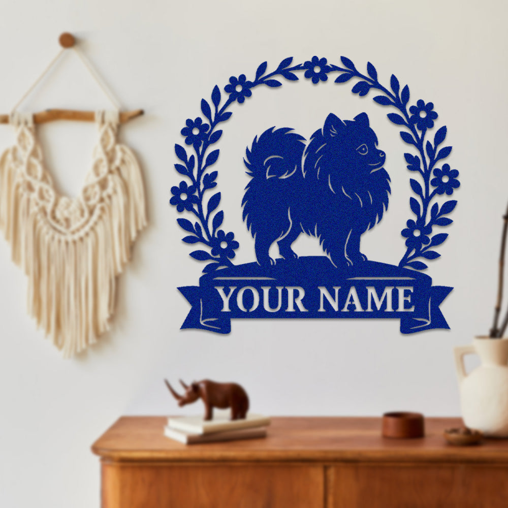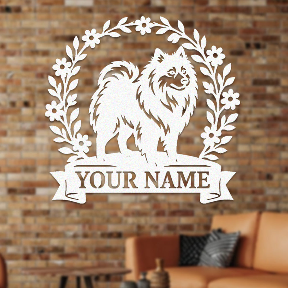 Pomeranian Wreath Metal Wall Art Dog Lover Personalized Memorial Metal Sign