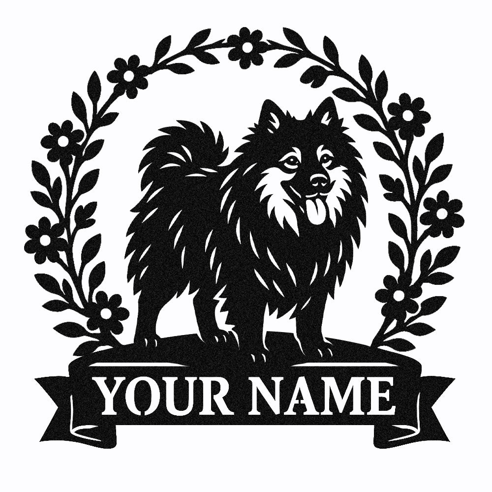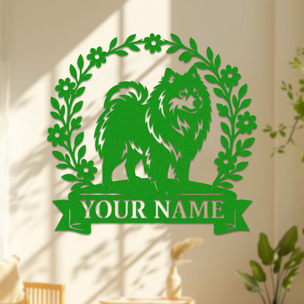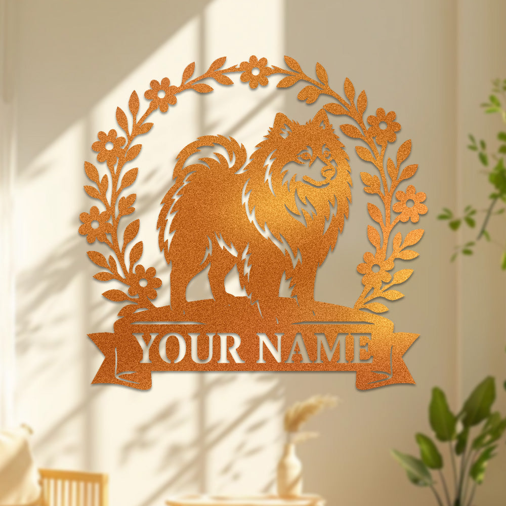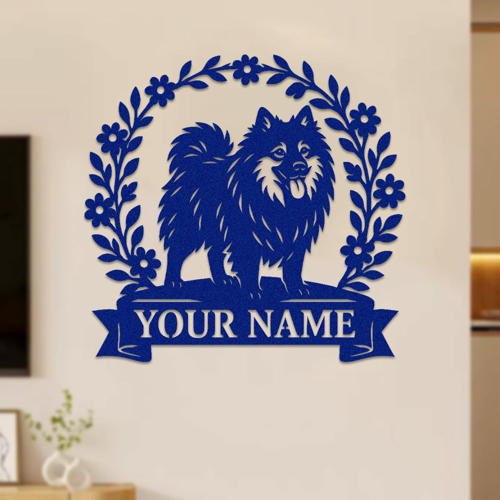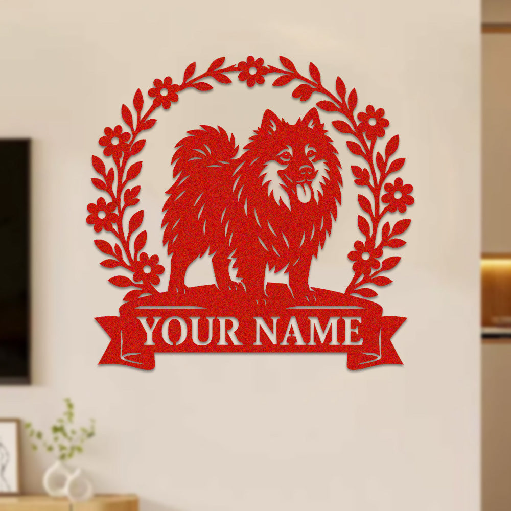 Pomeranian Wreath Metal Wall Art Dog Lover Personalized Memorial Metal Sign