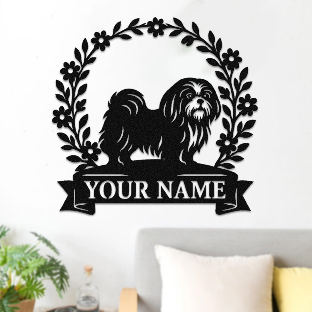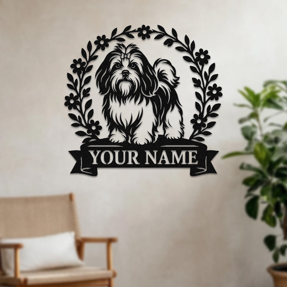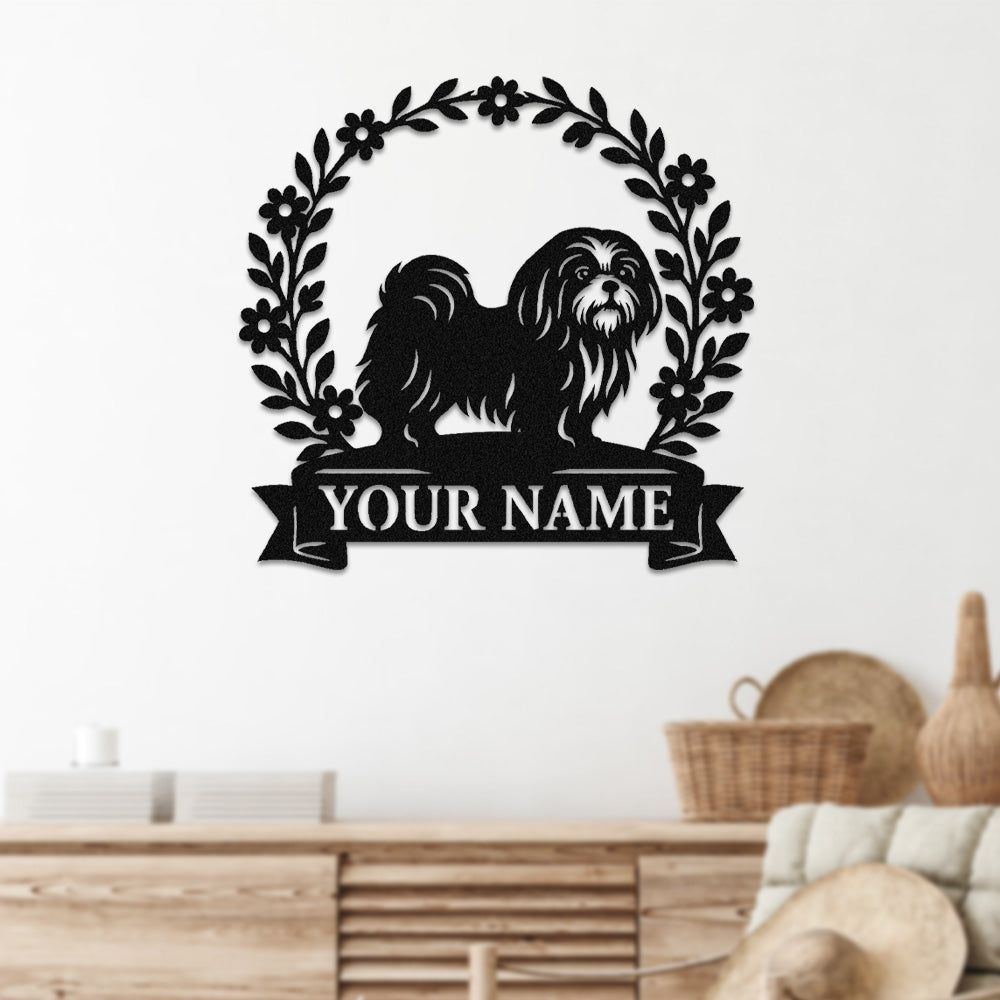 Shih Tzu Wreath Metal Wall Art Dog Lover Personalized Memorial Metal Sign