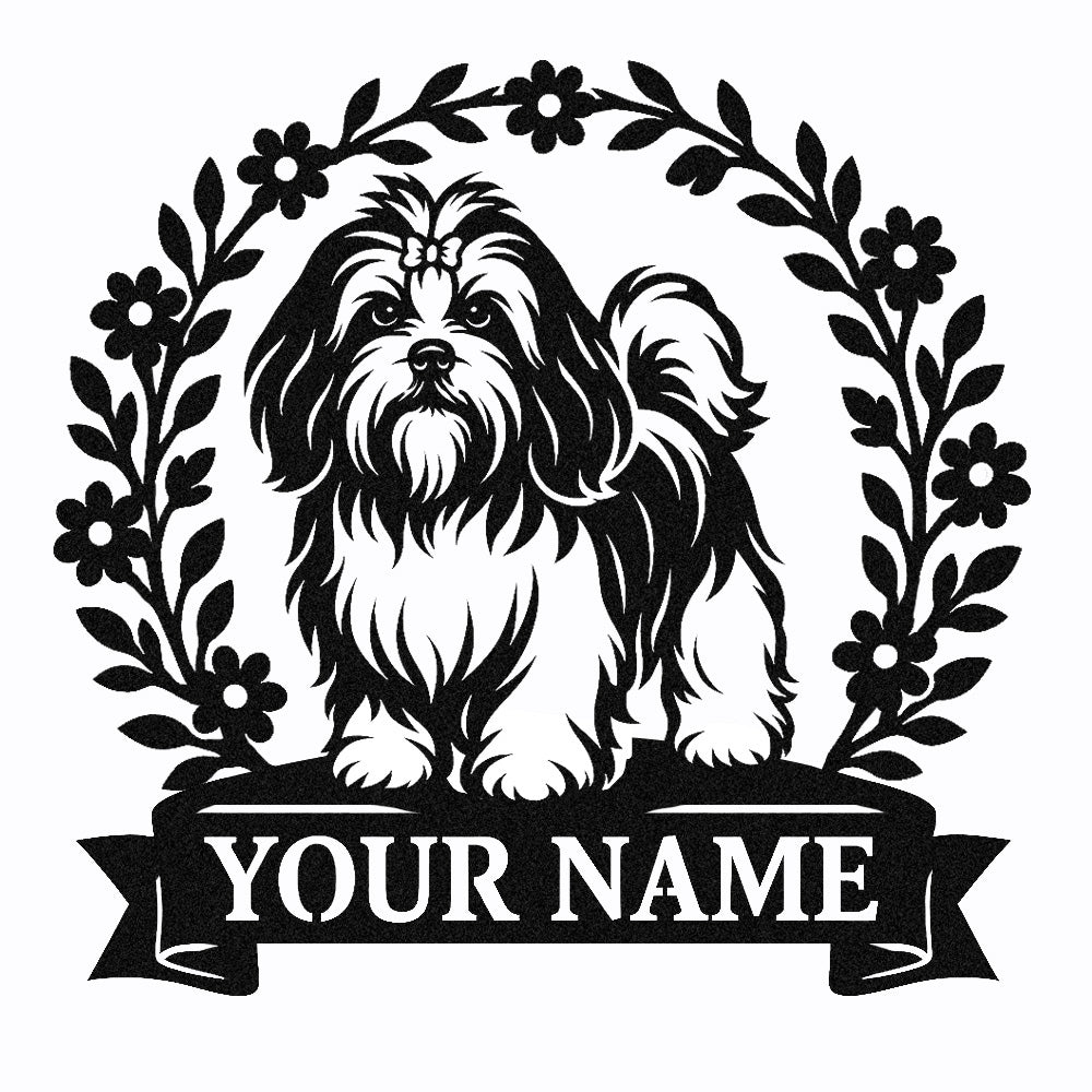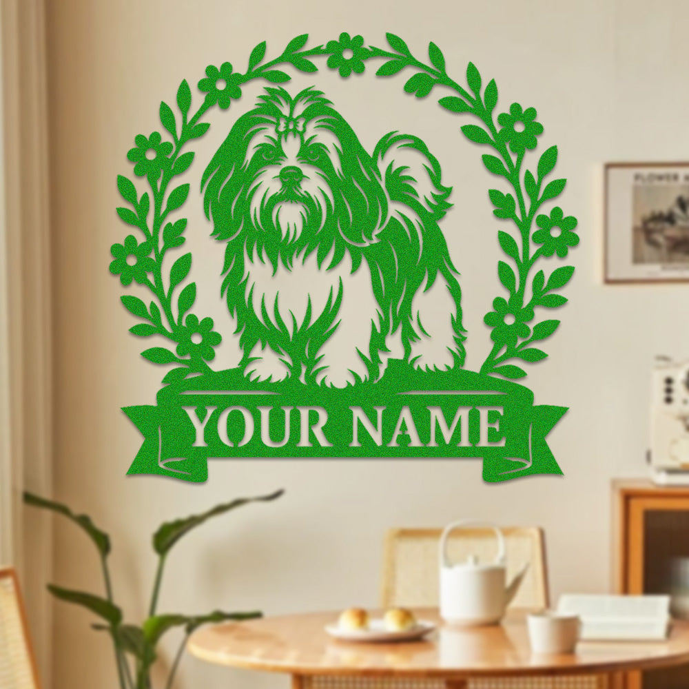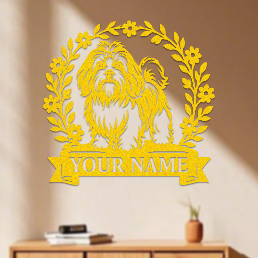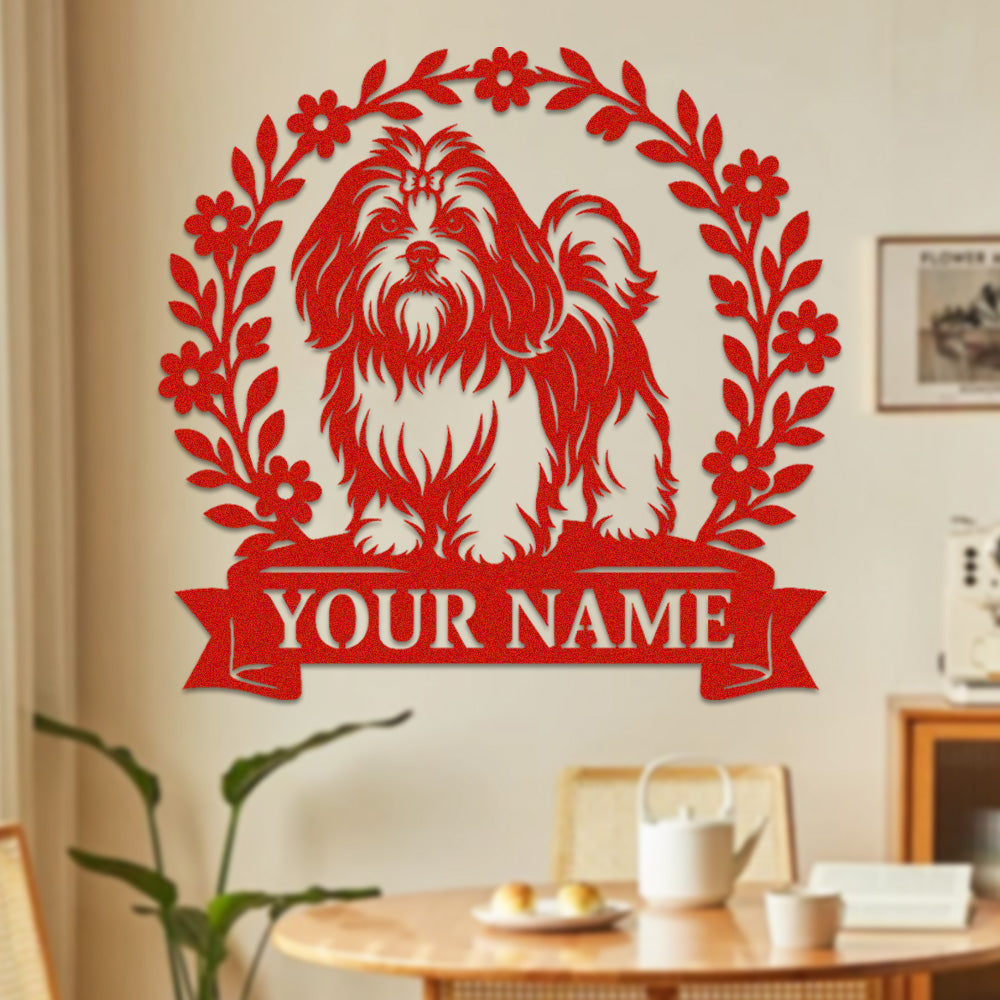 Shih Tzu Wreath Metal Wall Art Dog Lover Personalized Memorial Metal Sign