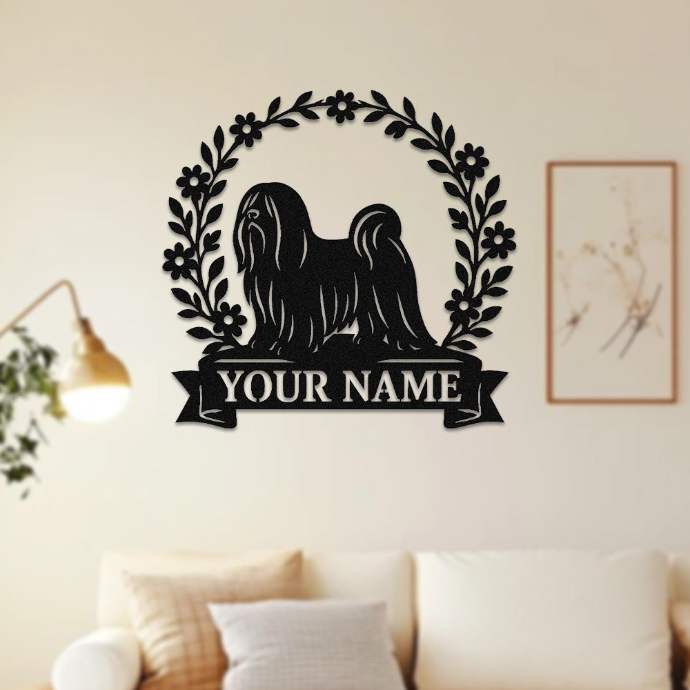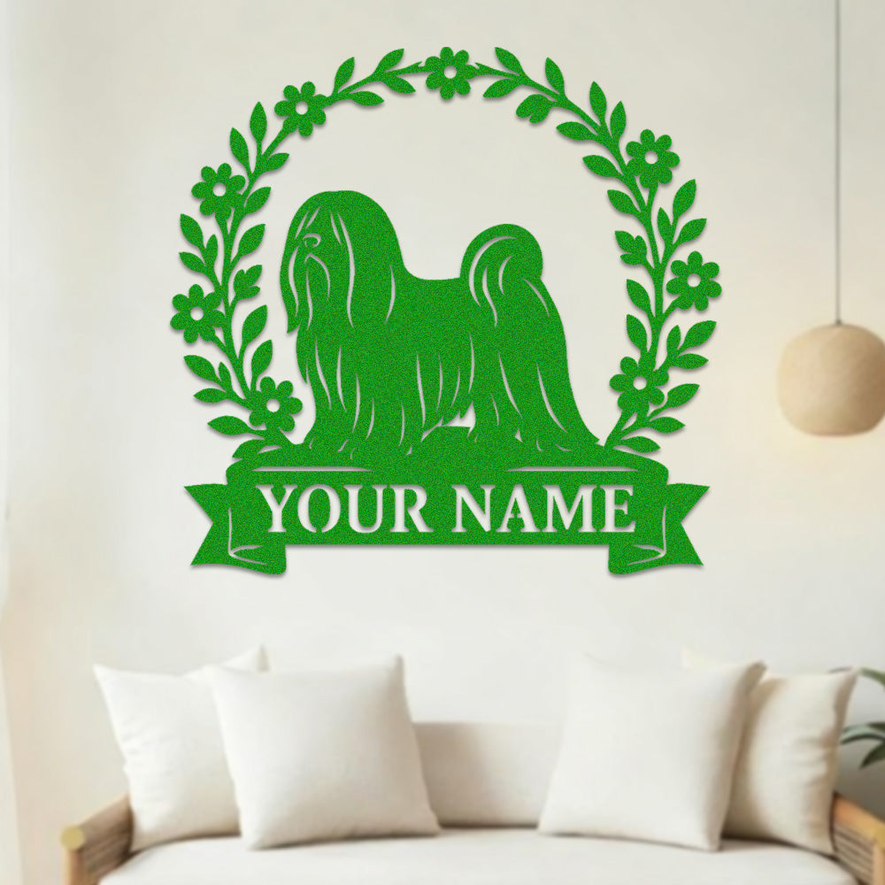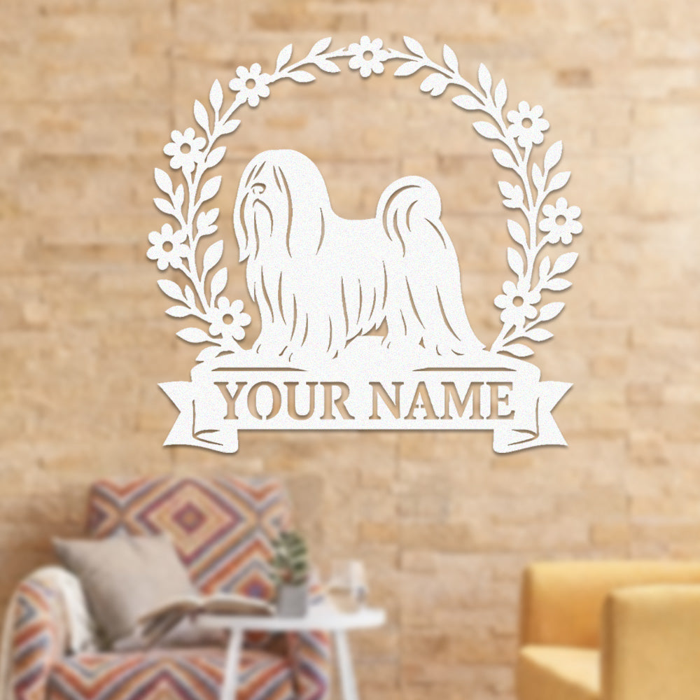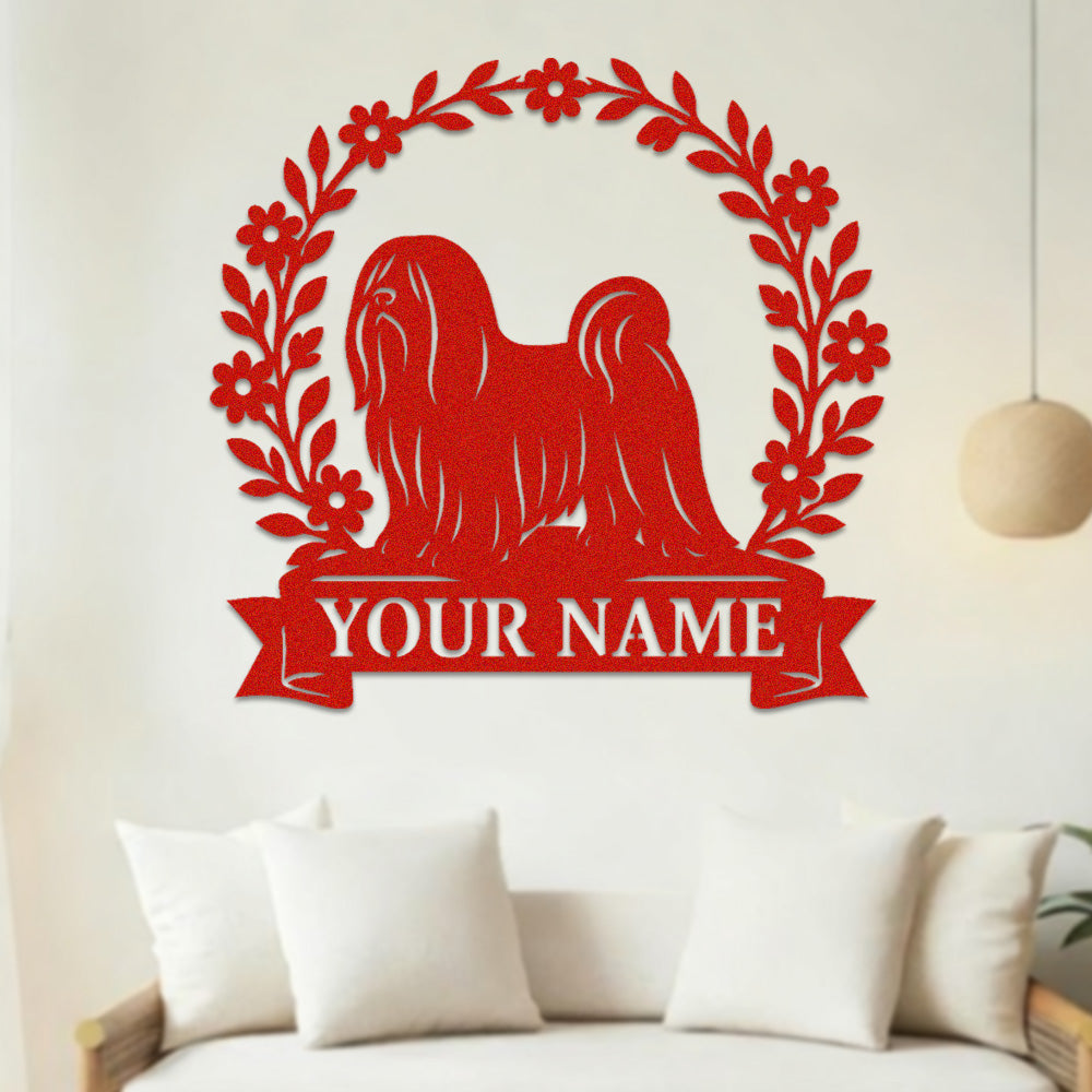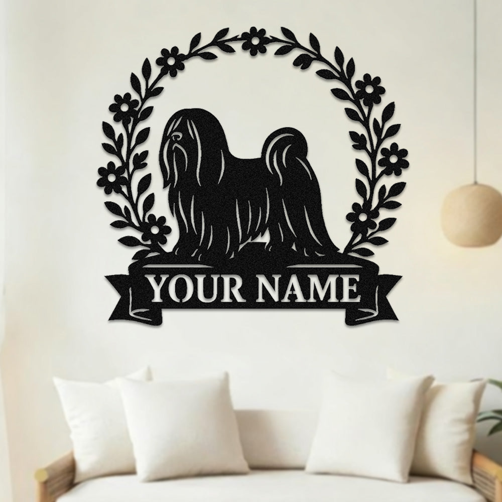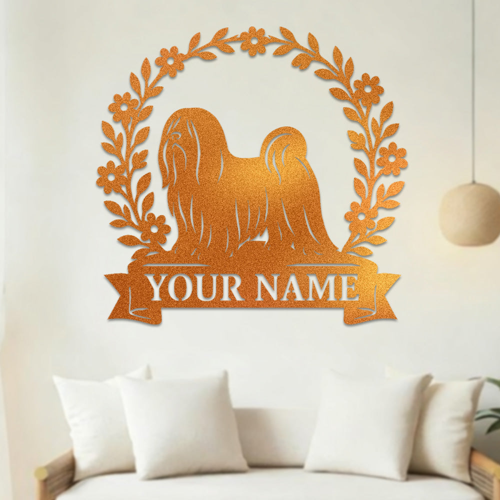 Lhasa Apso Wreath Metal Wall Art Dog Lover Personalized Memorial Metal Sign