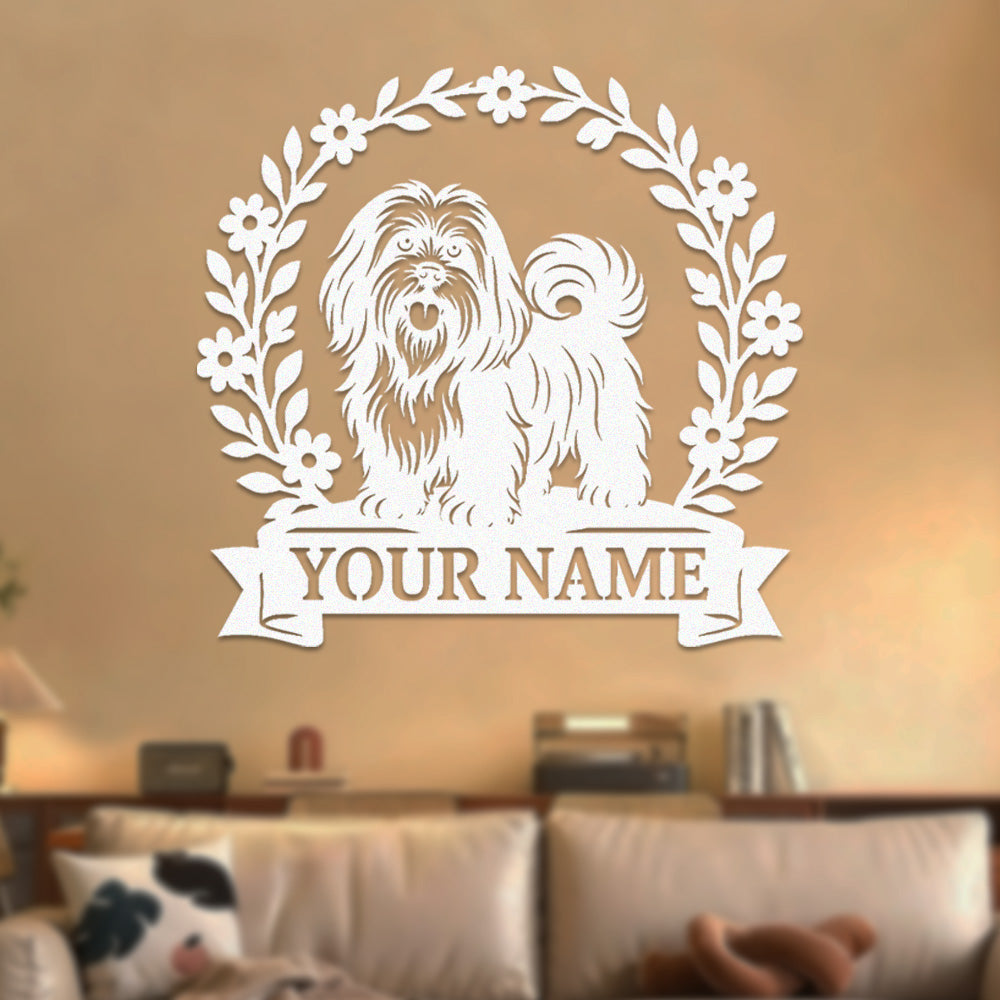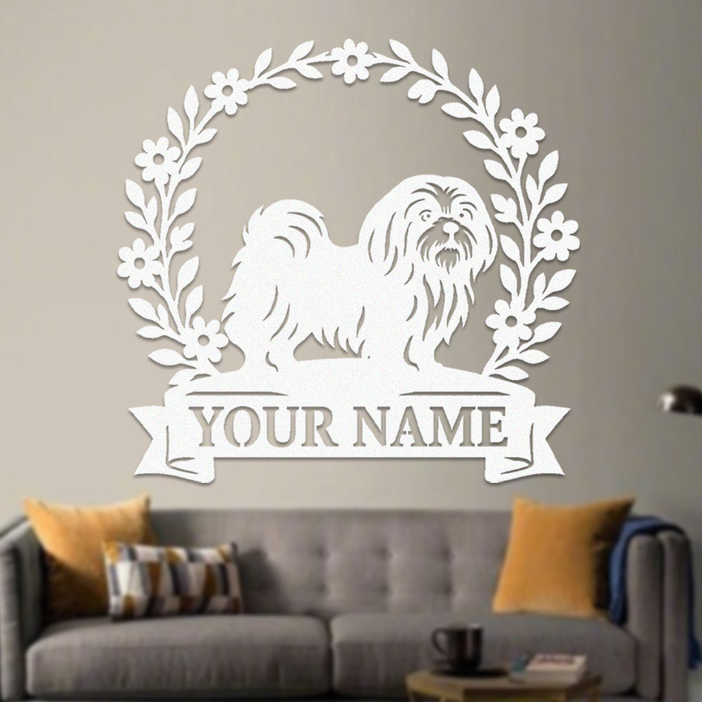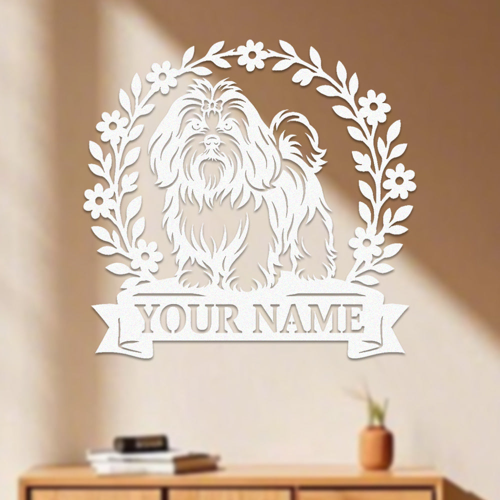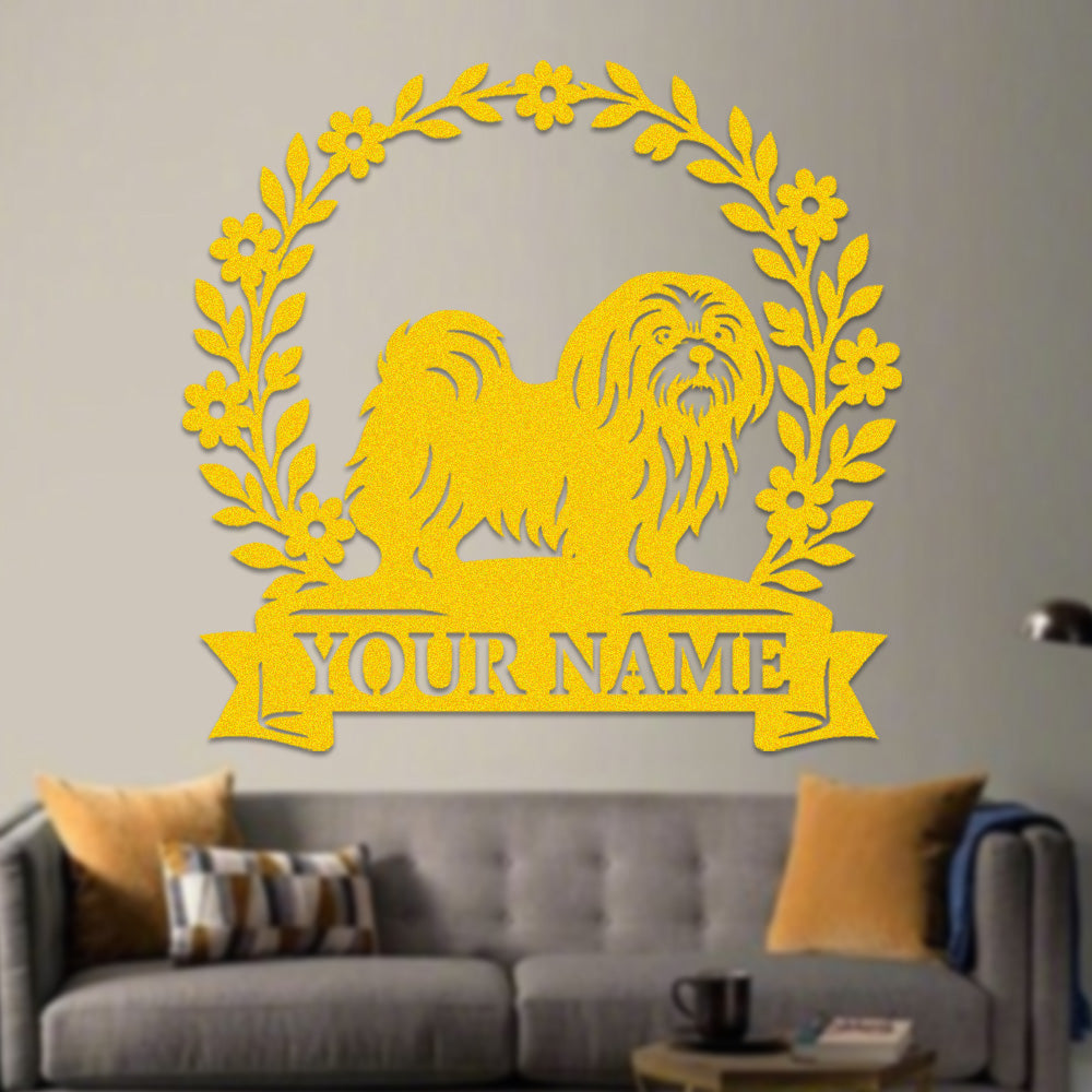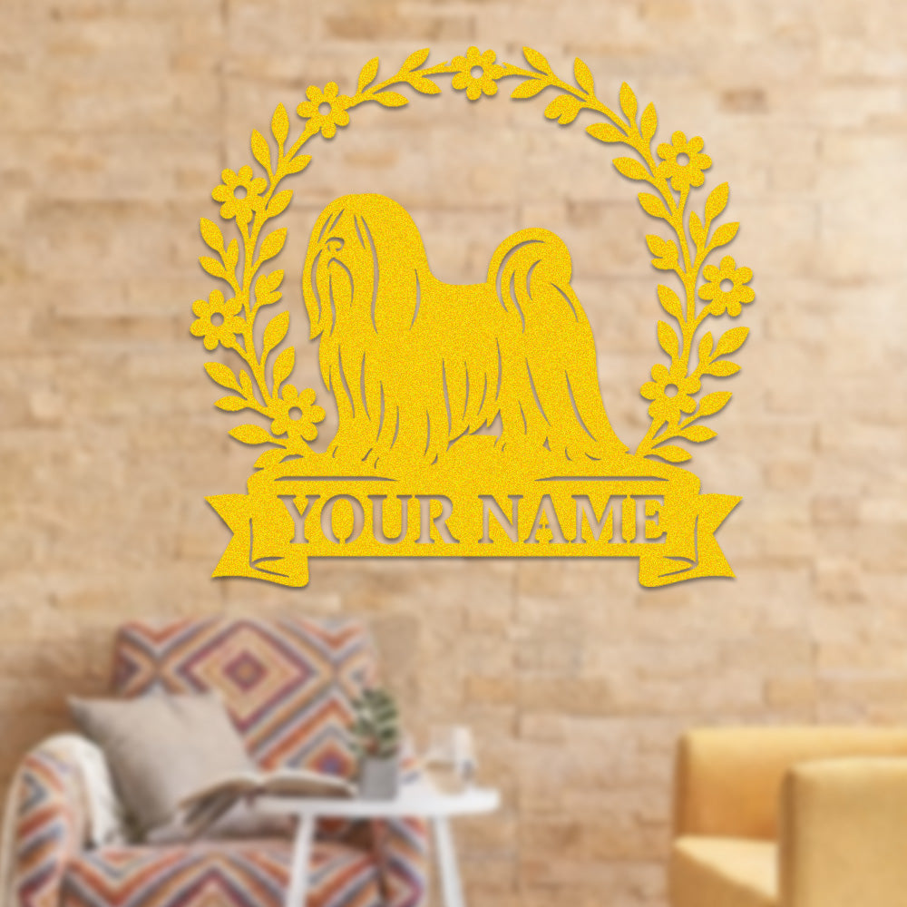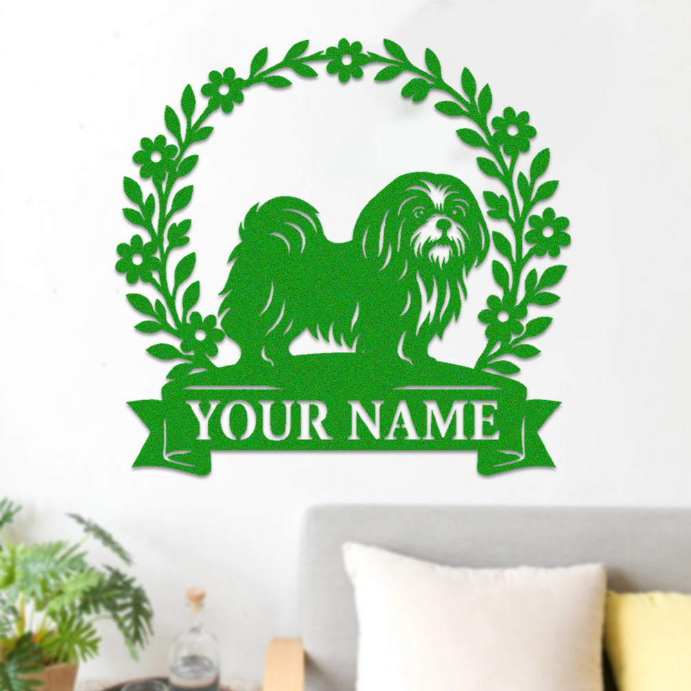 Lhasa Apso Wreath Metal Wall Art Dog Lover Personalized Memorial Metal Sign