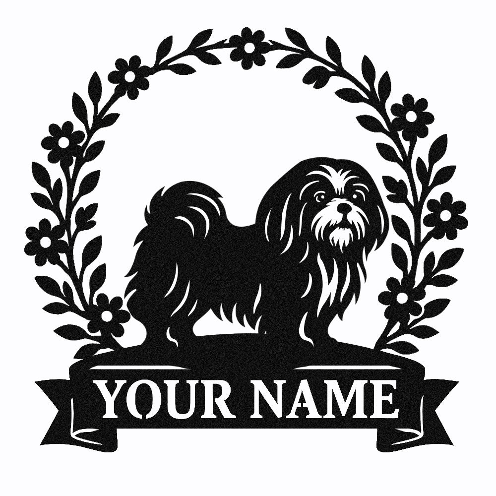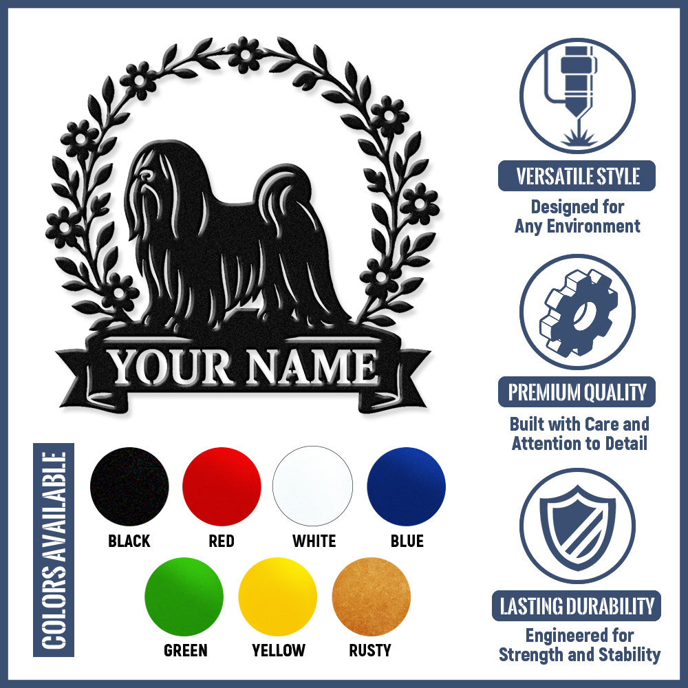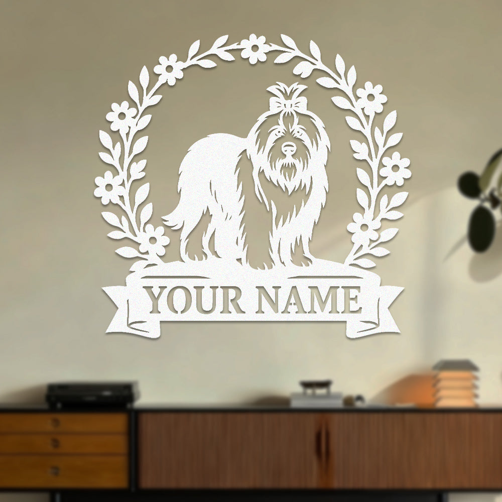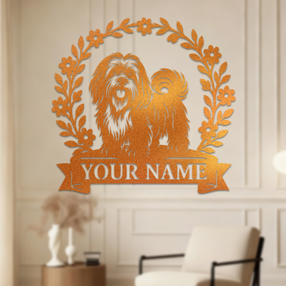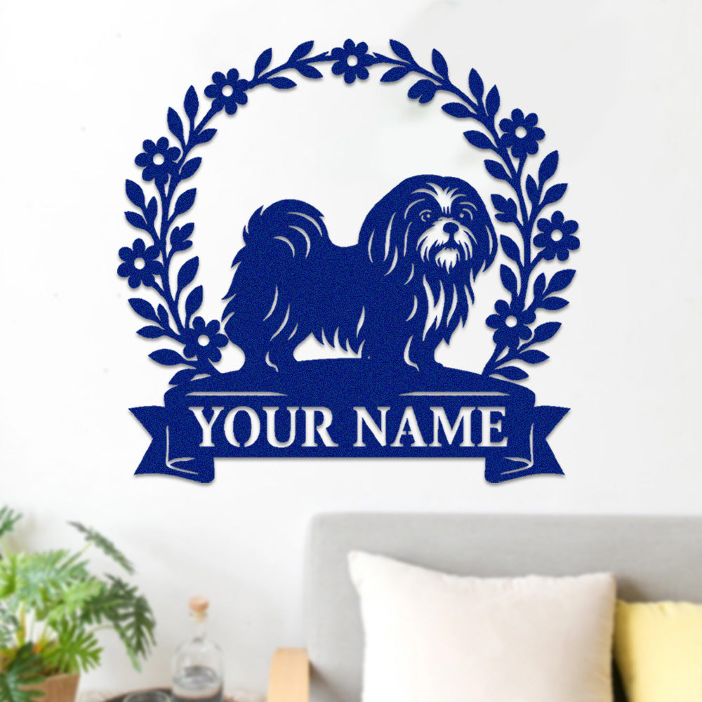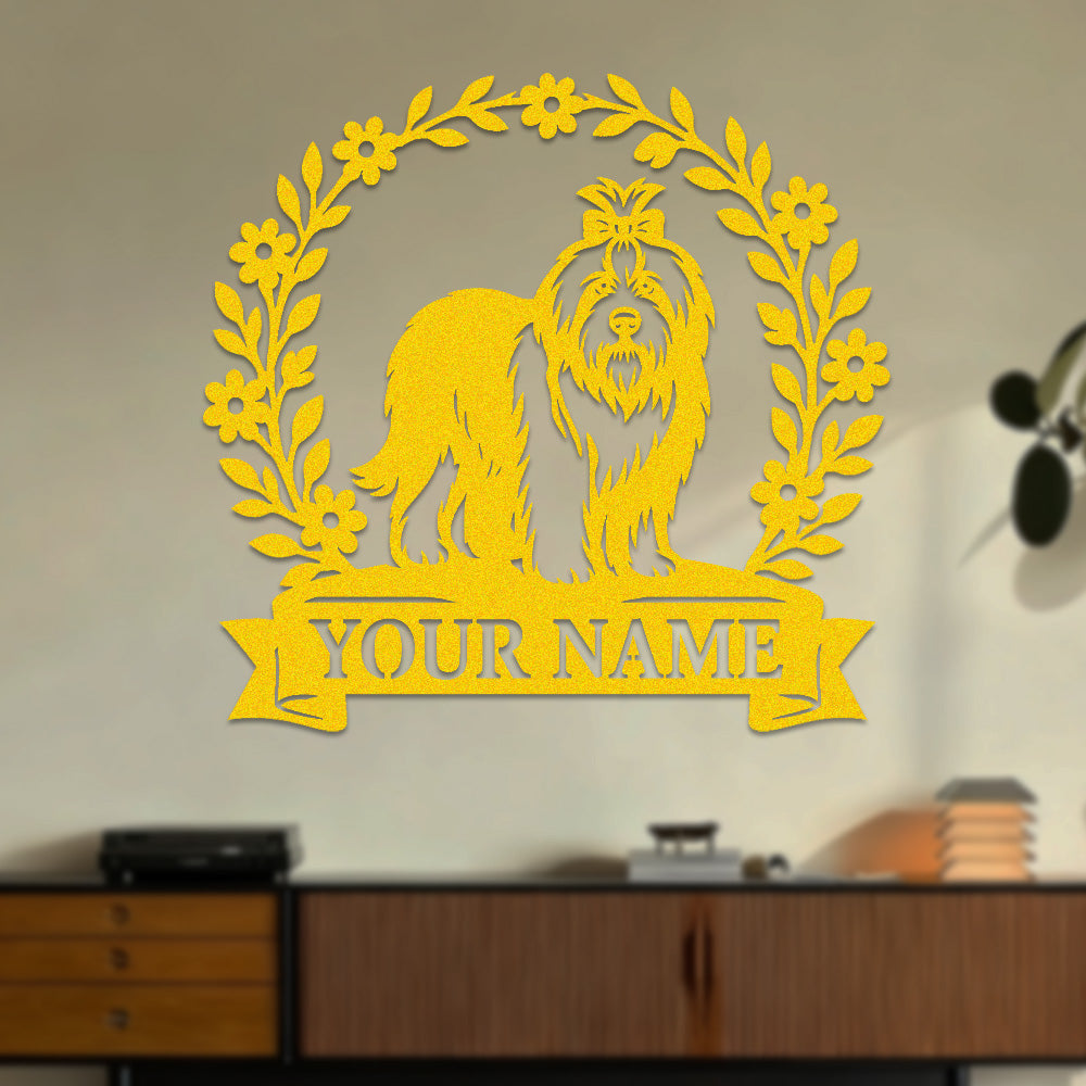 Lhasa Apso Wreath Metal Wall Art Dog Lover Personalized Memorial Metal Sign