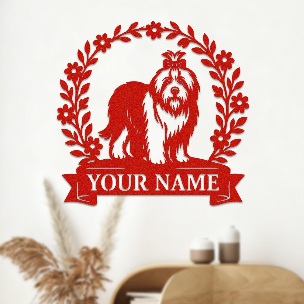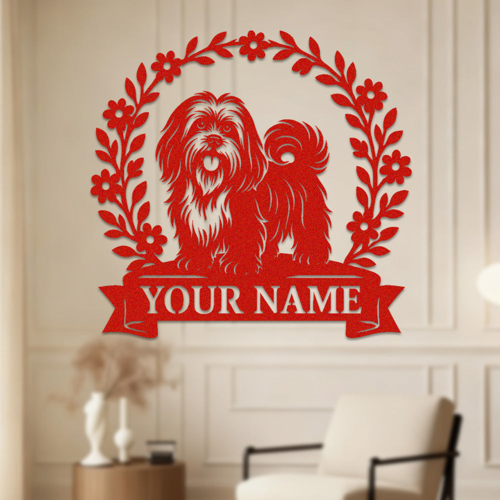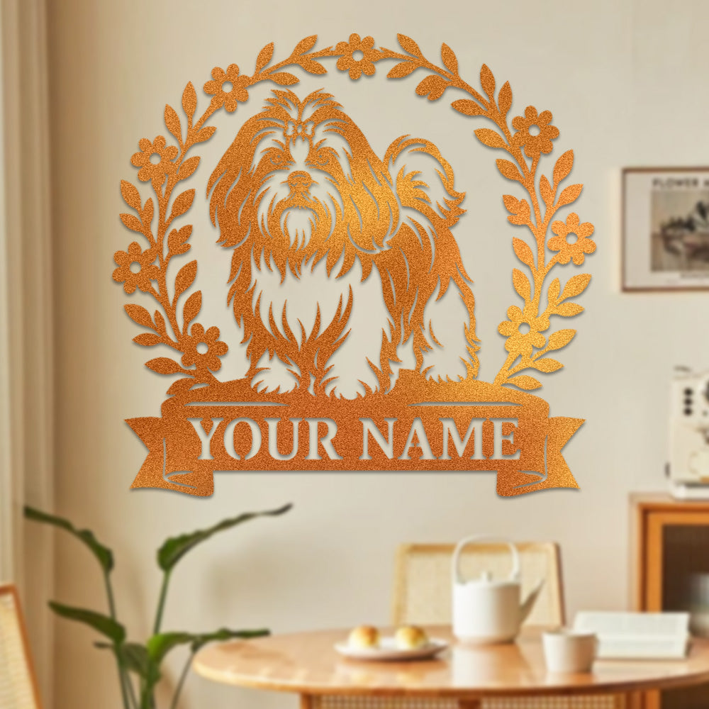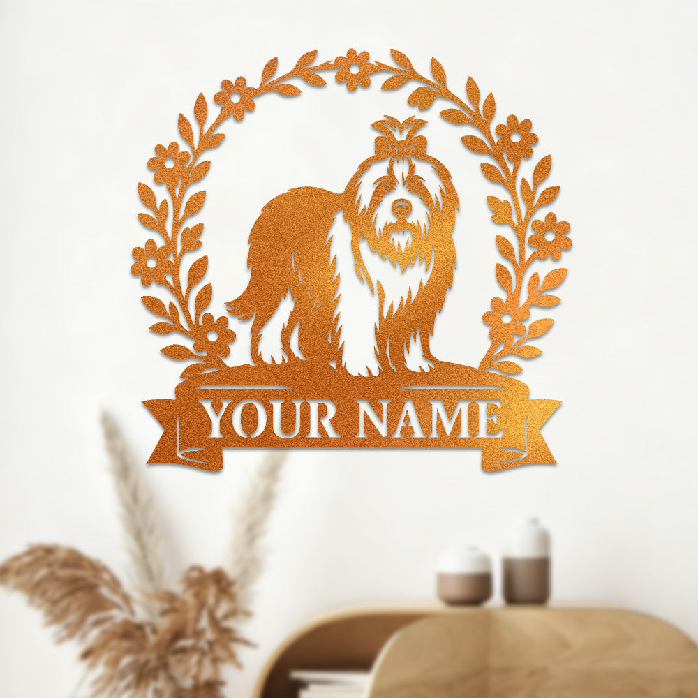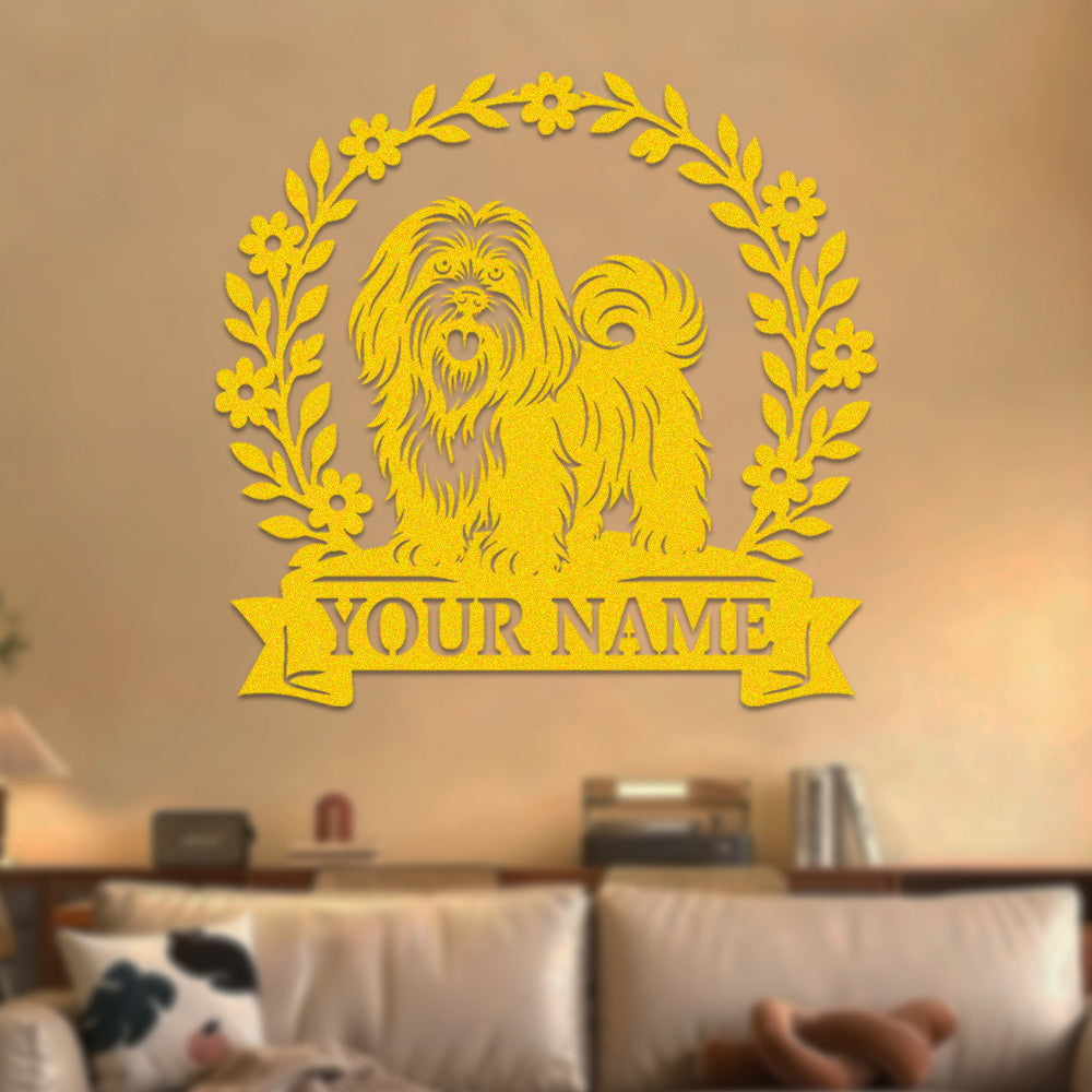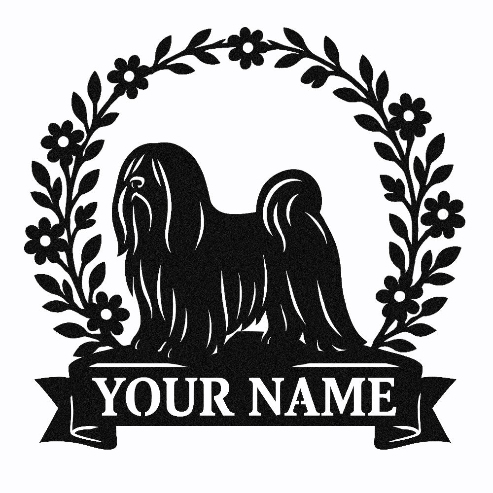 Lhasa Apso Wreath Metal Wall Art Dog Lover Personalized Memorial Metal Sign