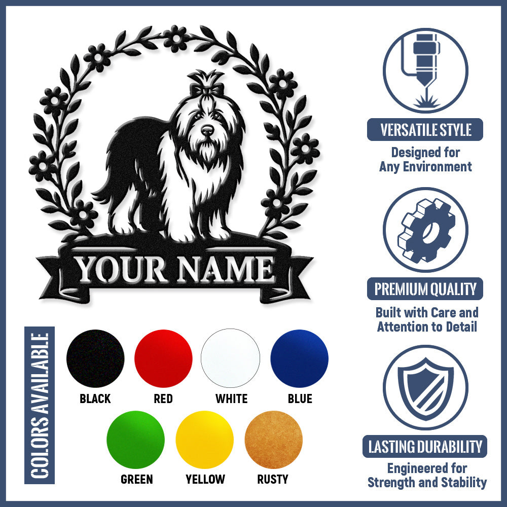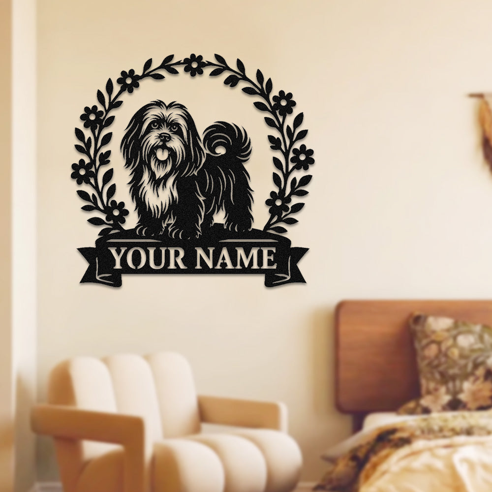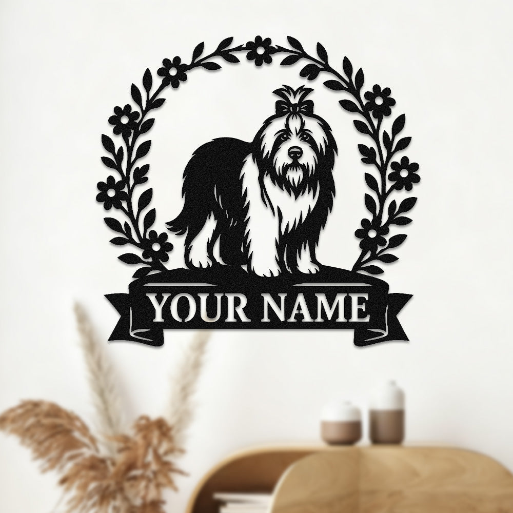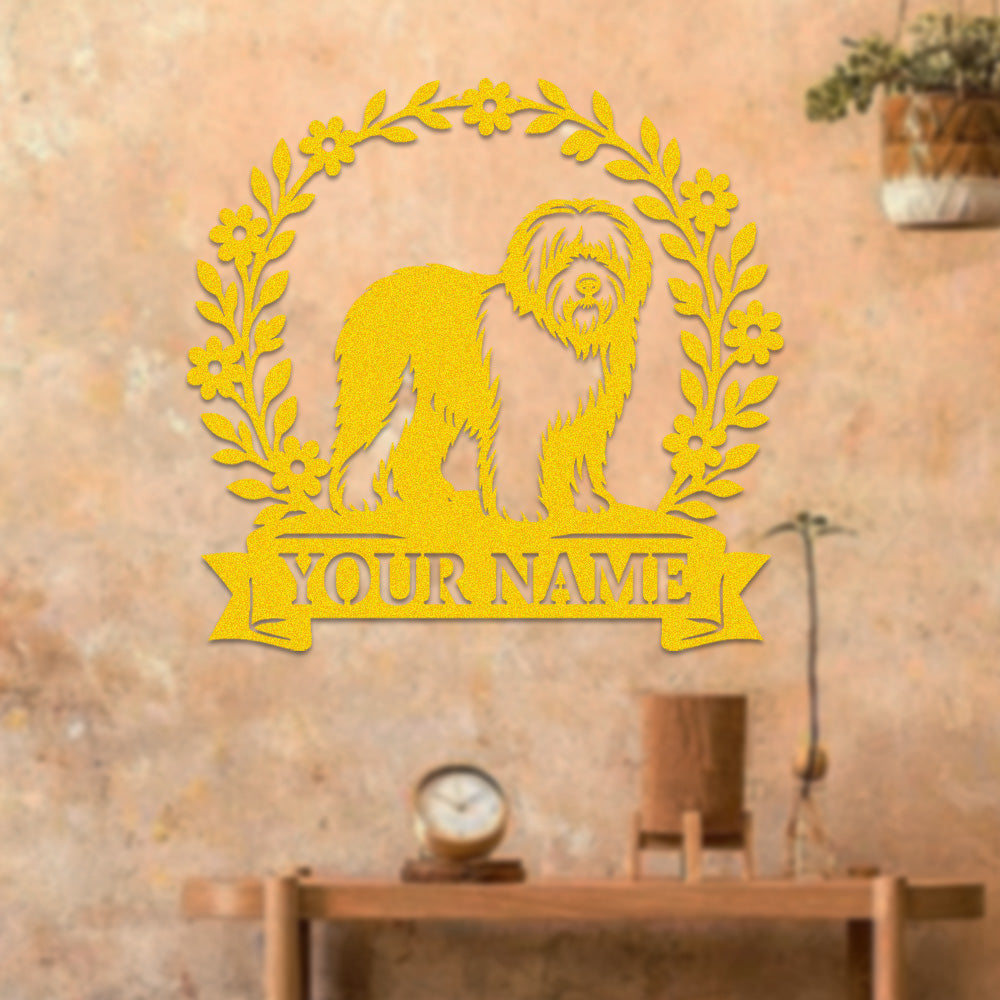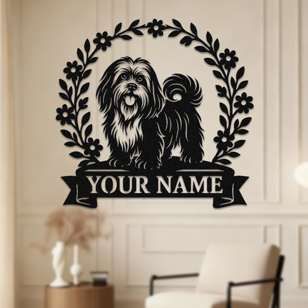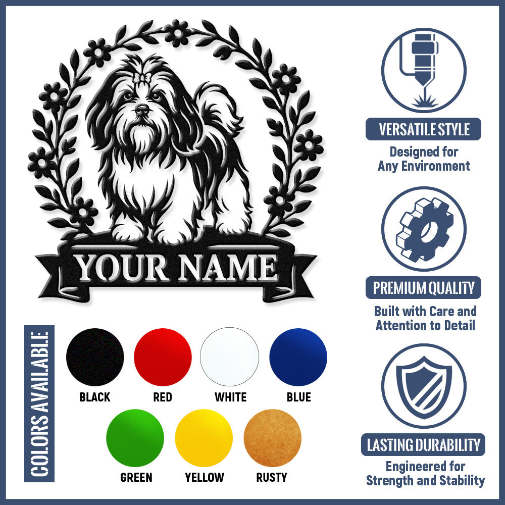 Lhasa Apso Wreath Metal Wall Art Dog Lover Personalized Memorial Metal Sign