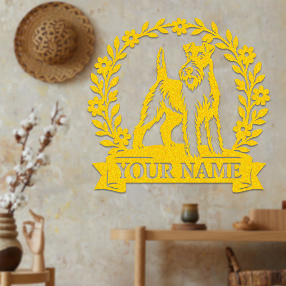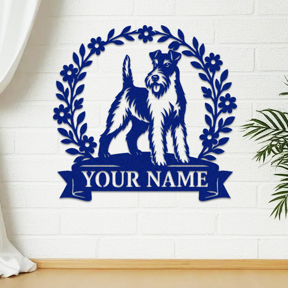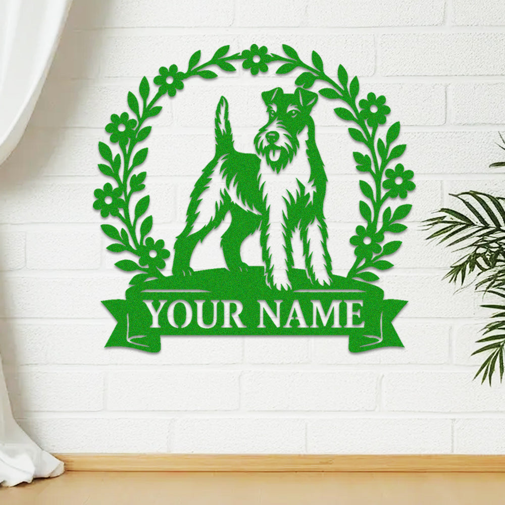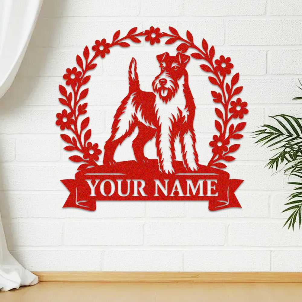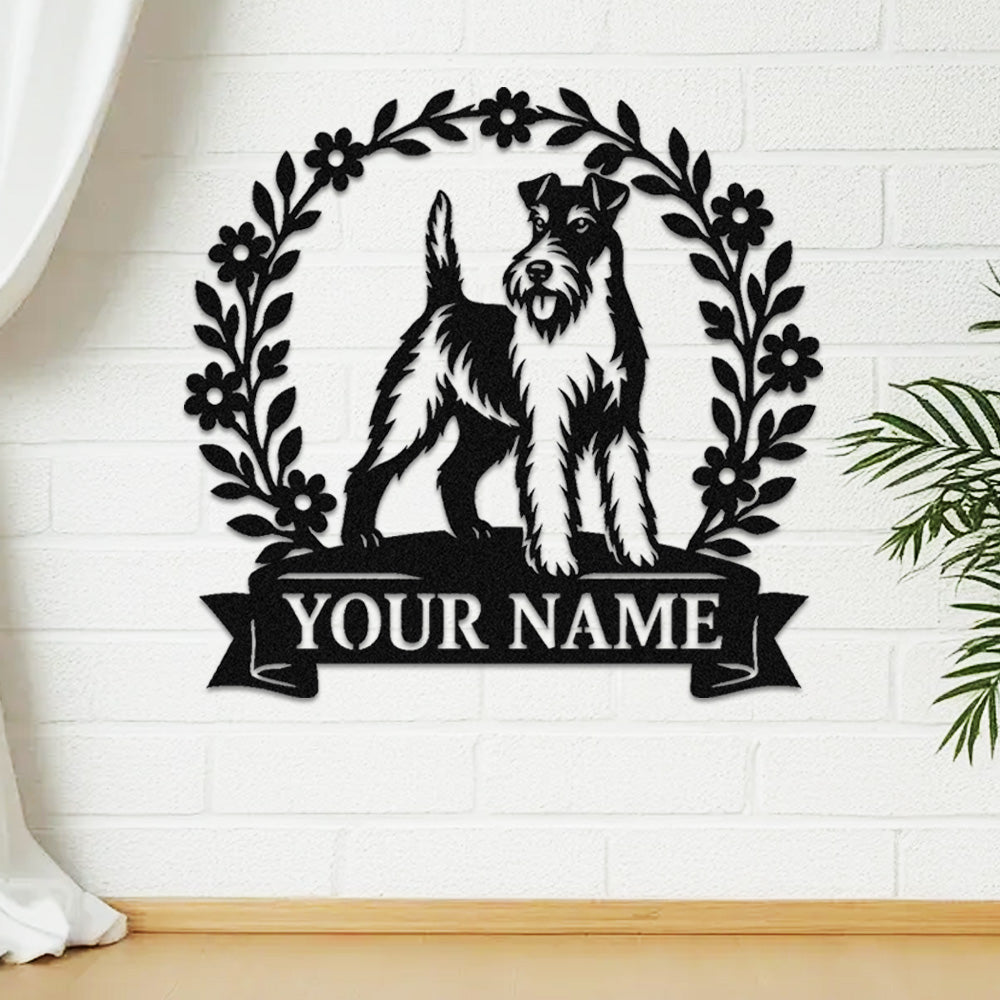 Wire Fox Terrier Wreath Metal Wall Art Dog Lover Personalized Memorial Metal Sign