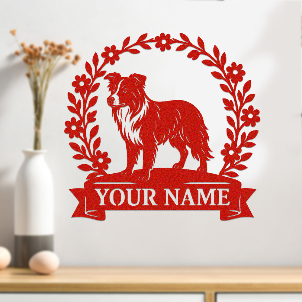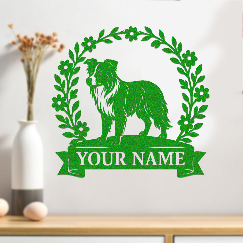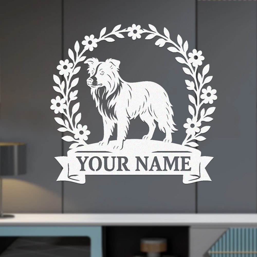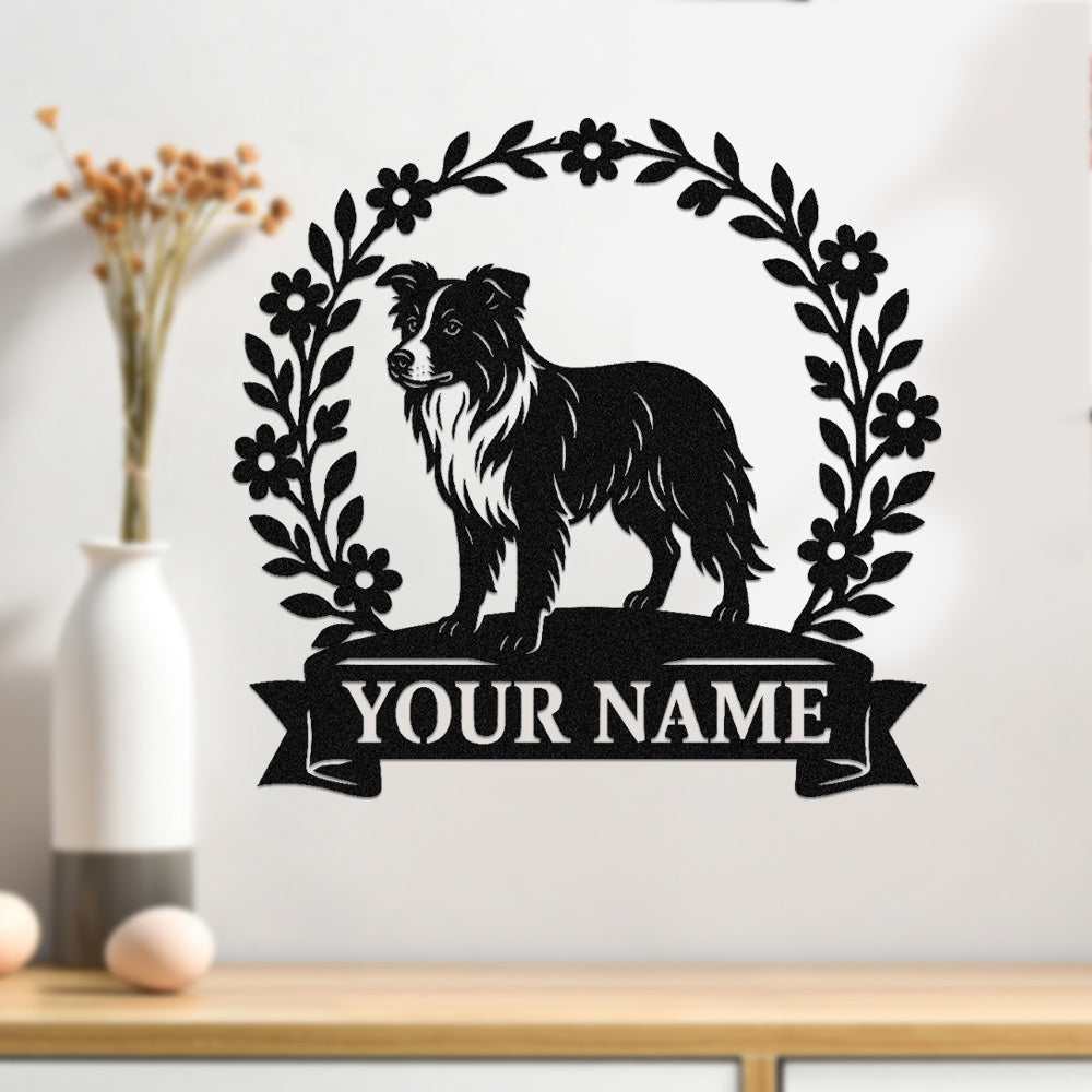 Border Collie Wreath Metal Wall Art Dog Lover Personalized Memorial Metal Sign