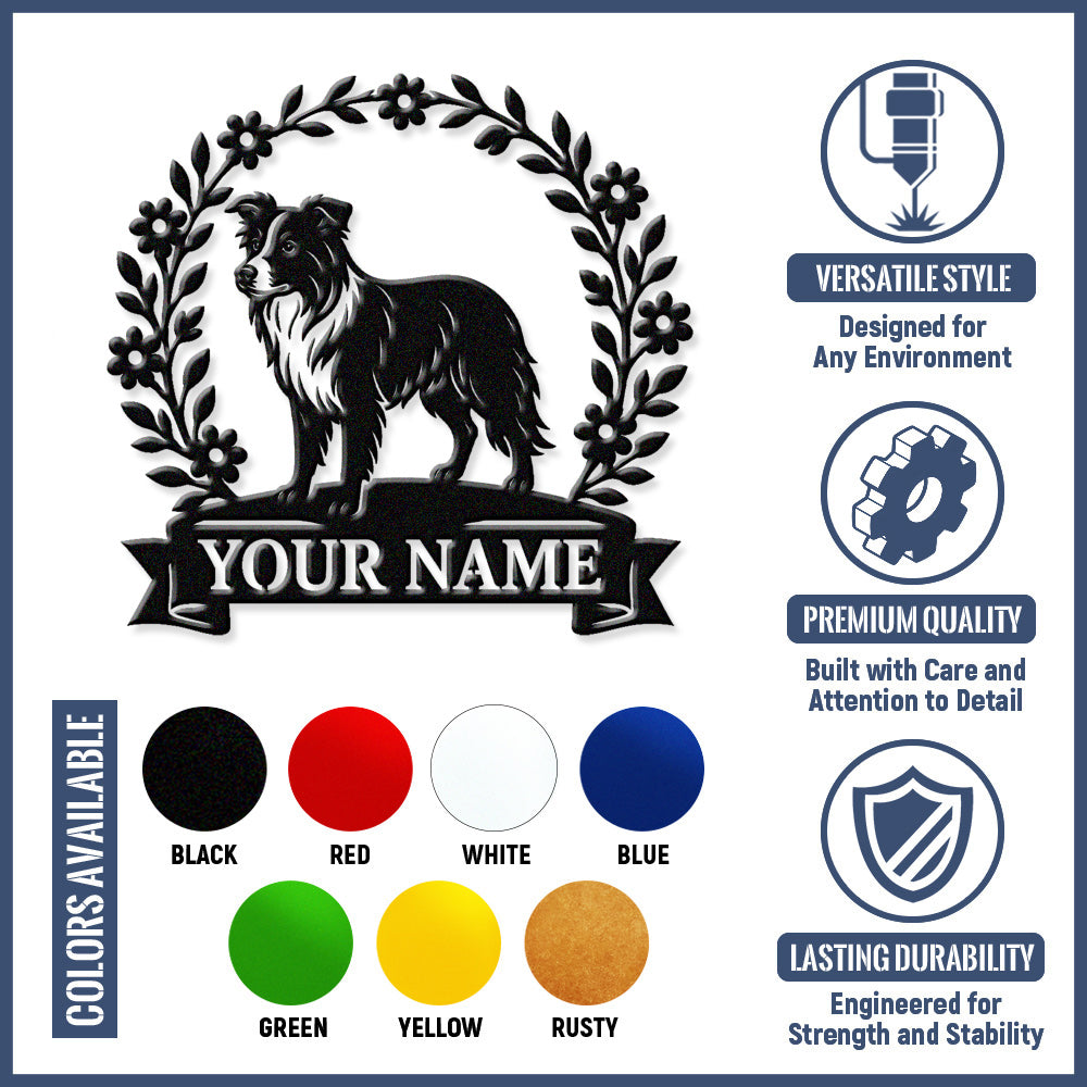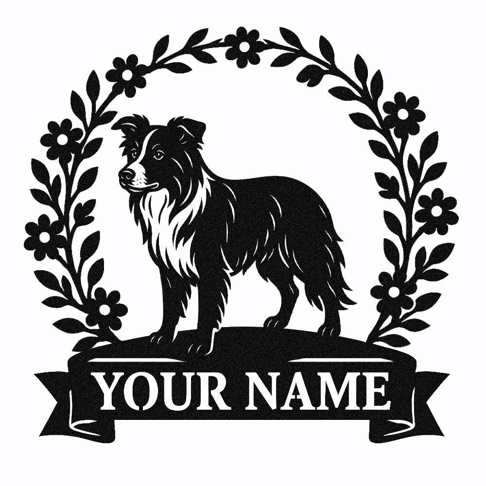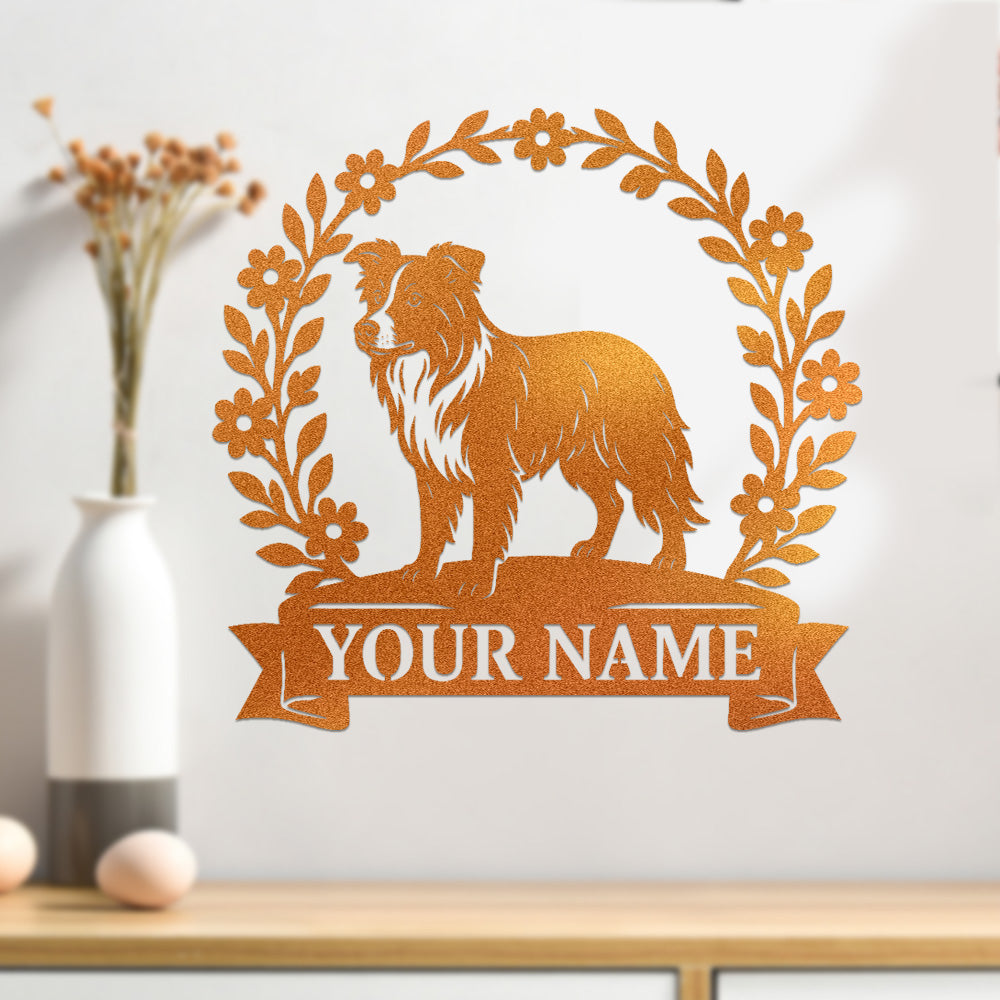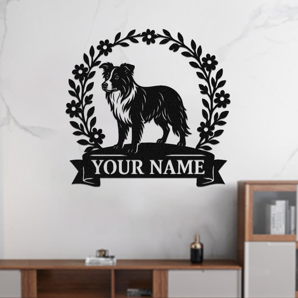 Border Collie Wreath Metal Wall Art Dog Lover Personalized Memorial Metal Sign