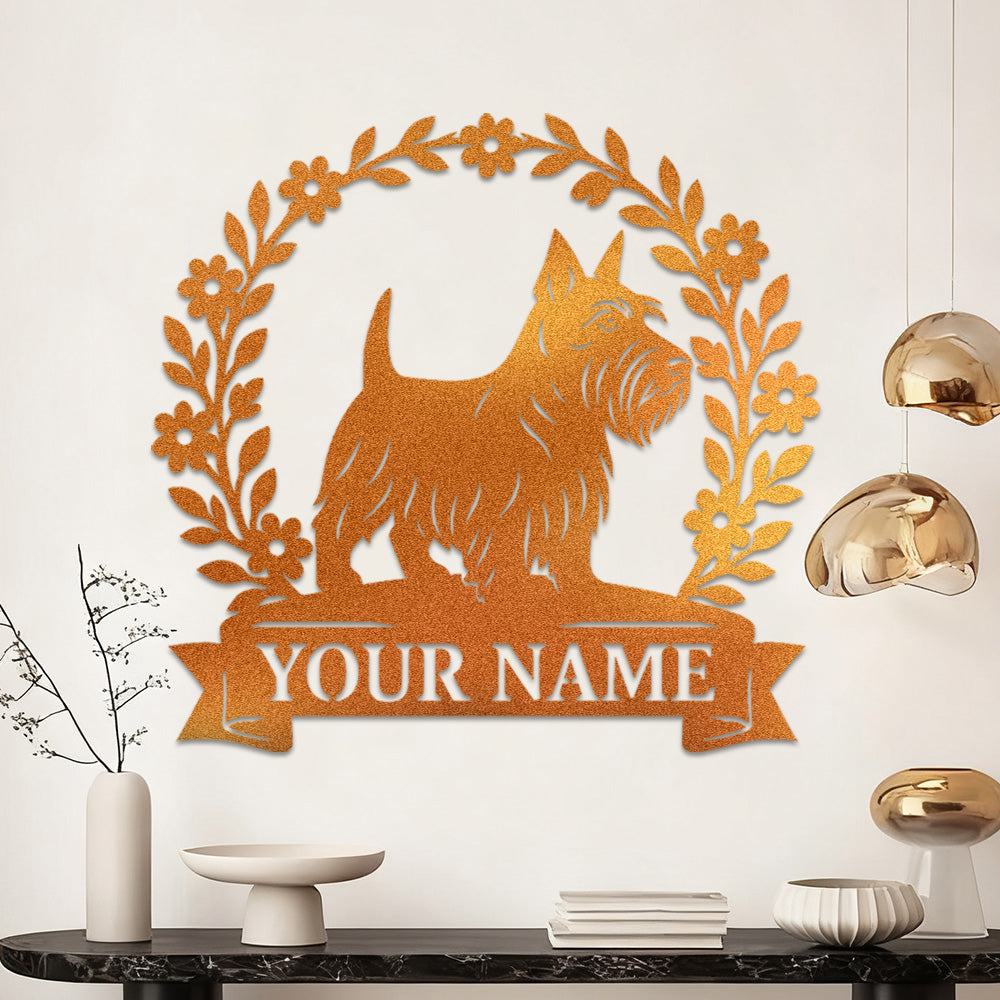 Scottish Terrier Wreath Metal Wall Art Dog Lover Personalized Memorial Metal Sign