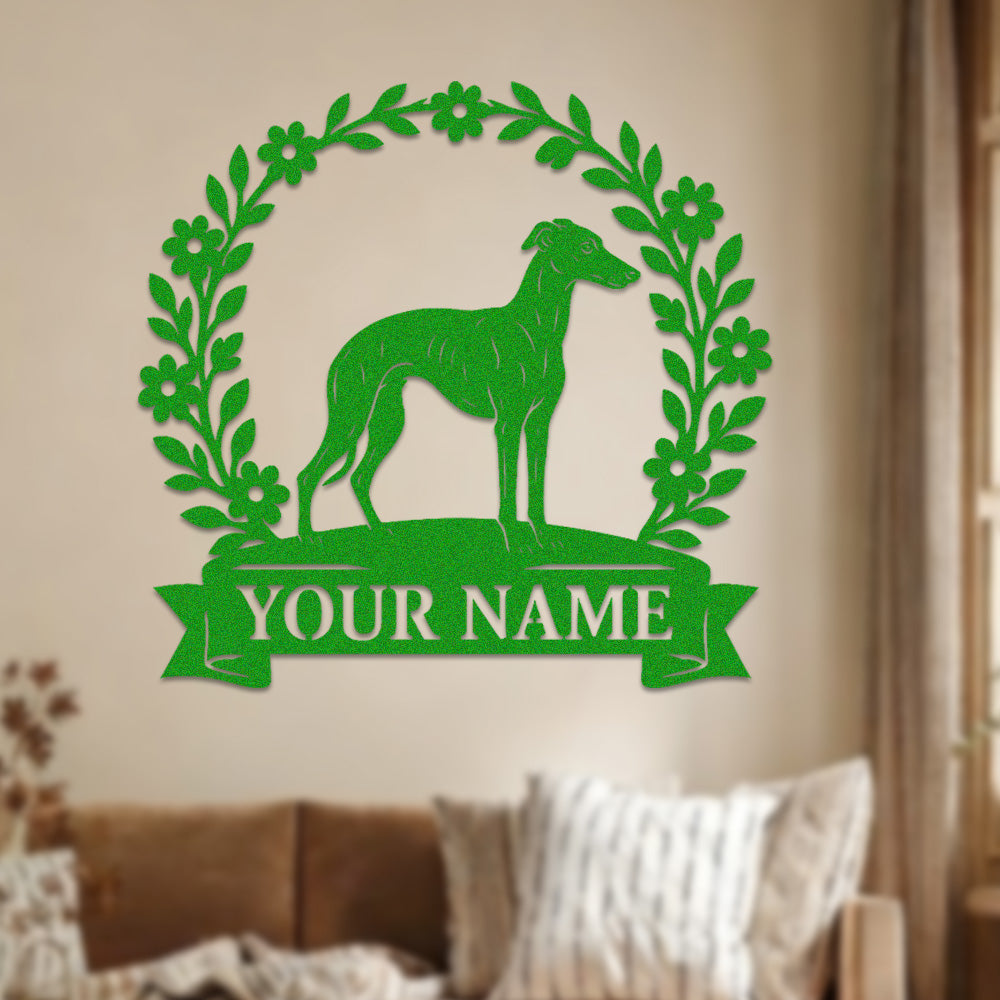 Whippet Wreath Metal Wall Art Dog Lover Personalized Memorial Metal Sign