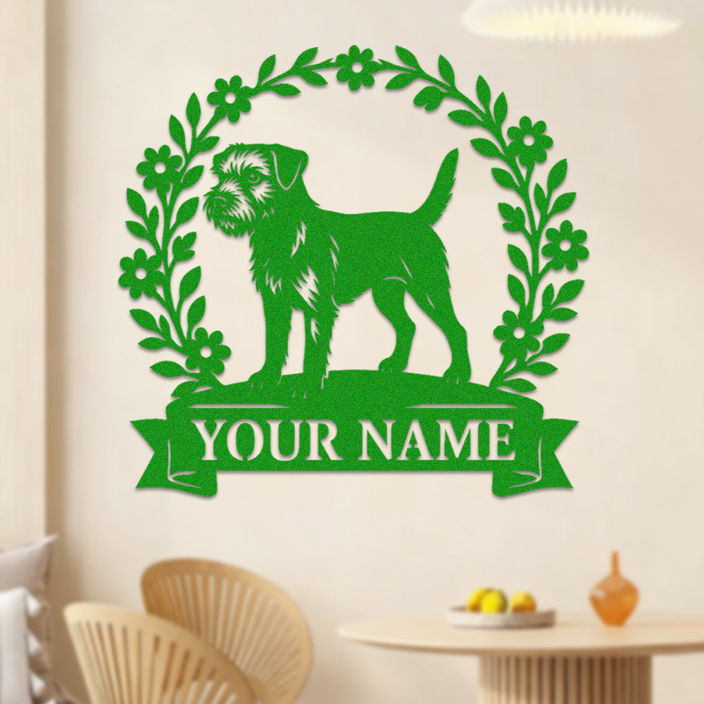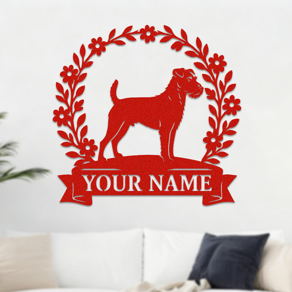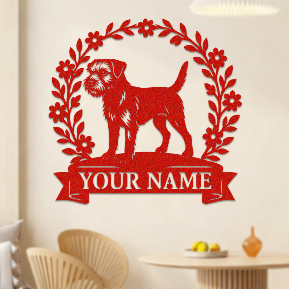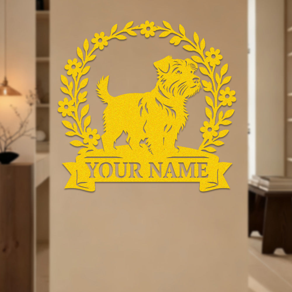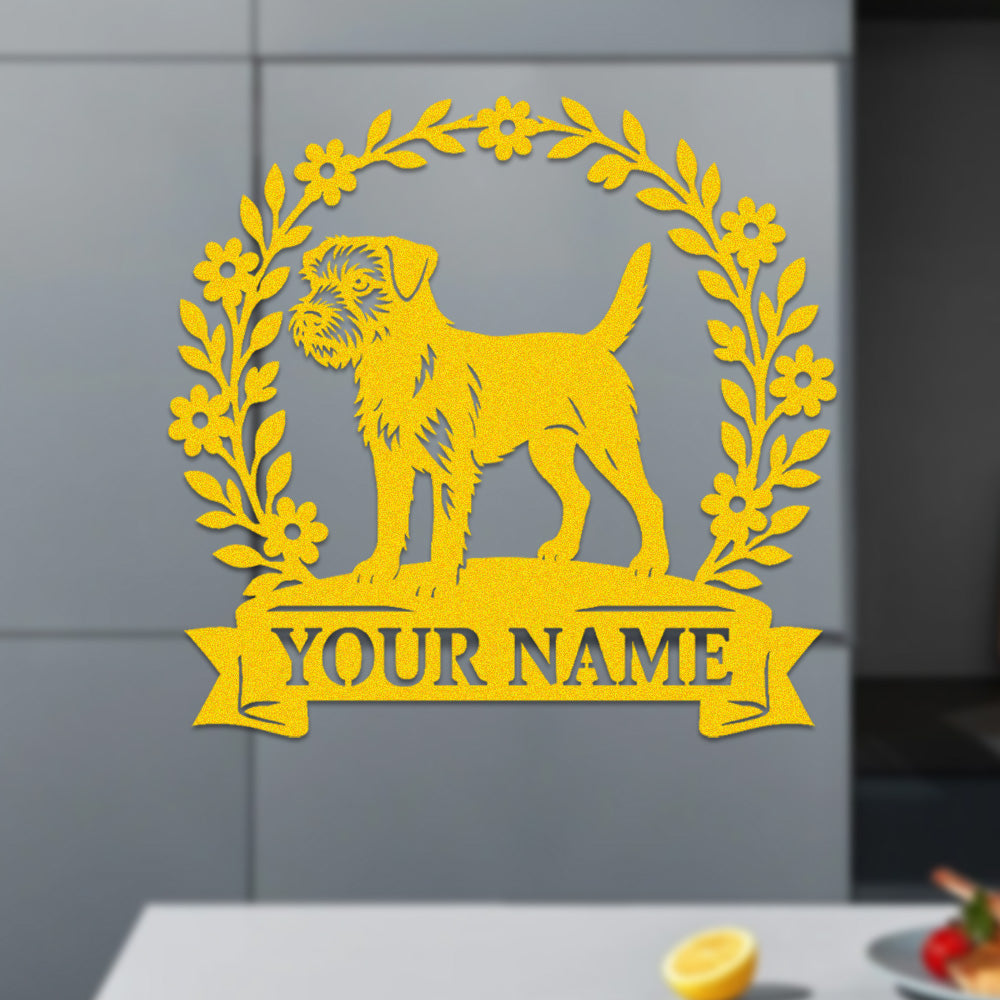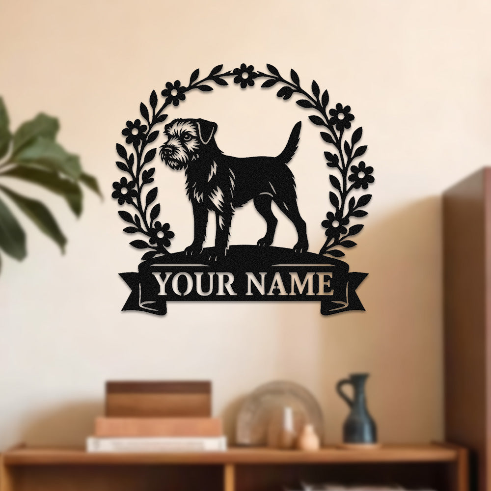 Border Terrier Wreath Metal Wall Art Dog Lover Personalized Memorial Metal Sign