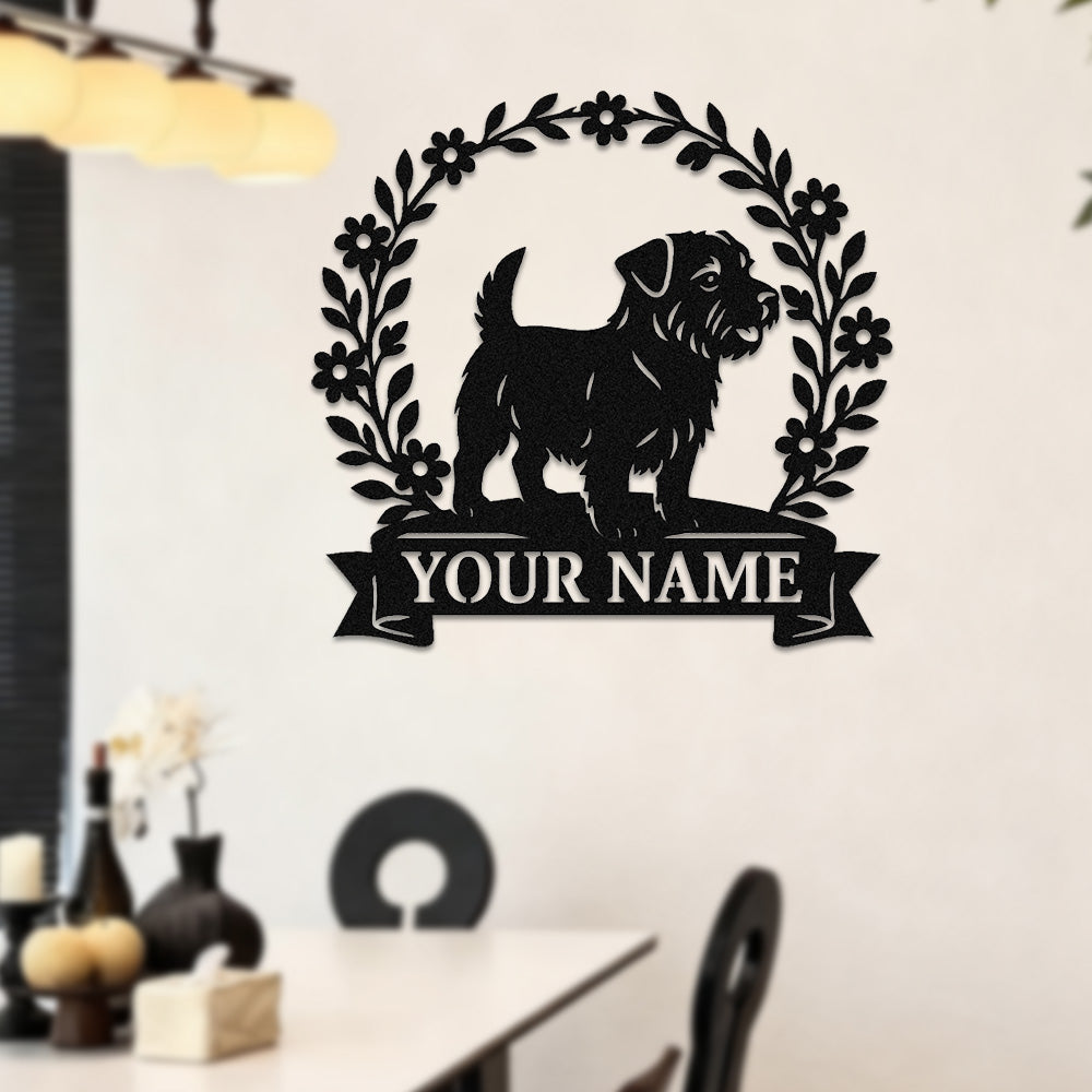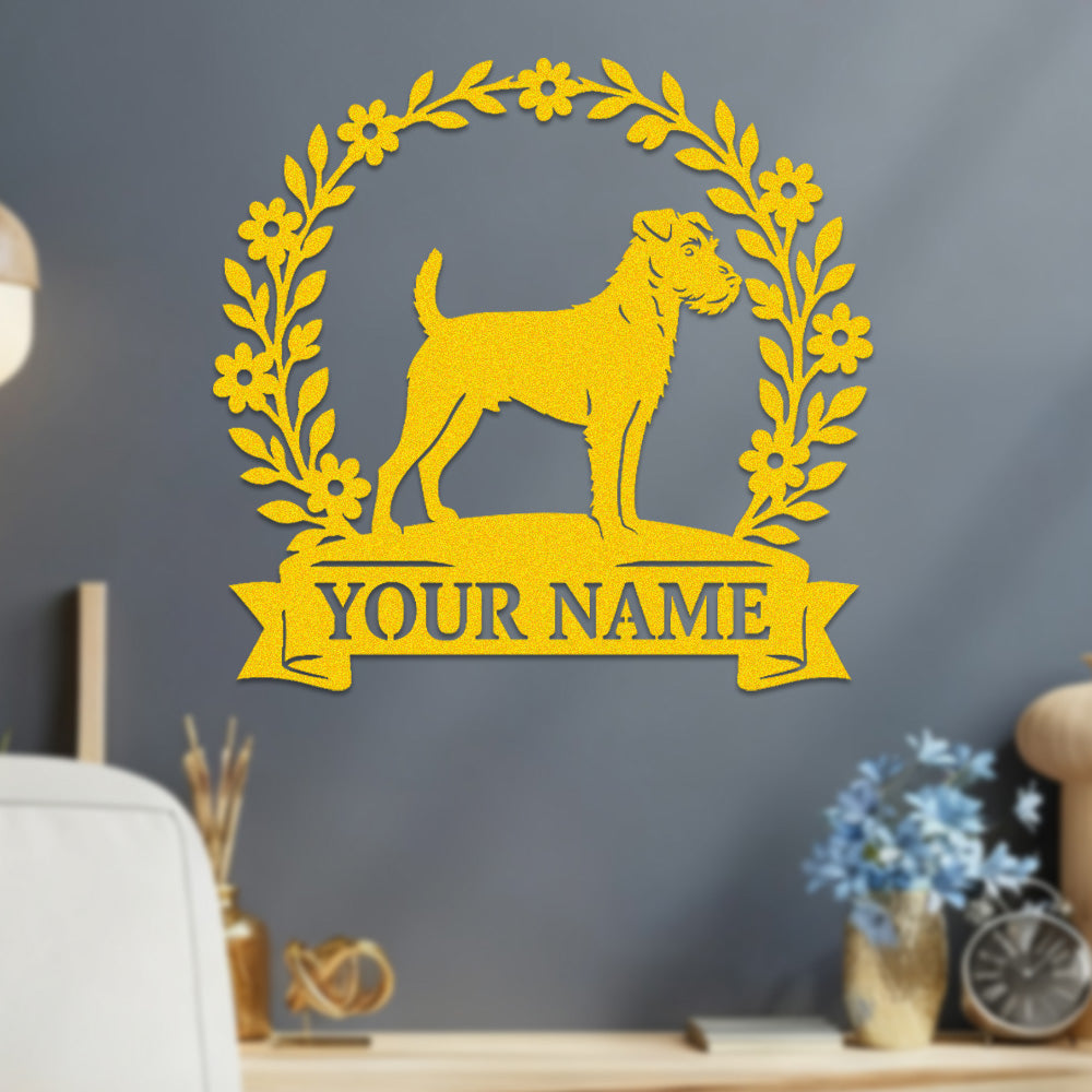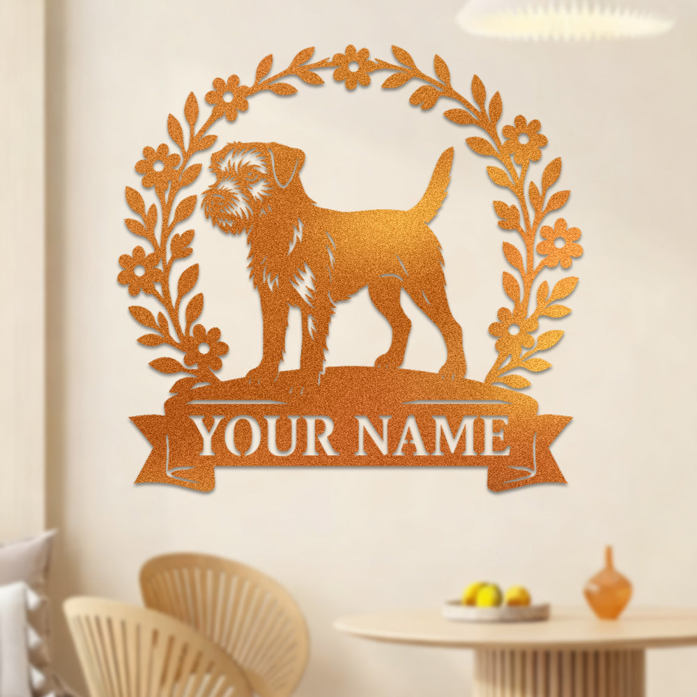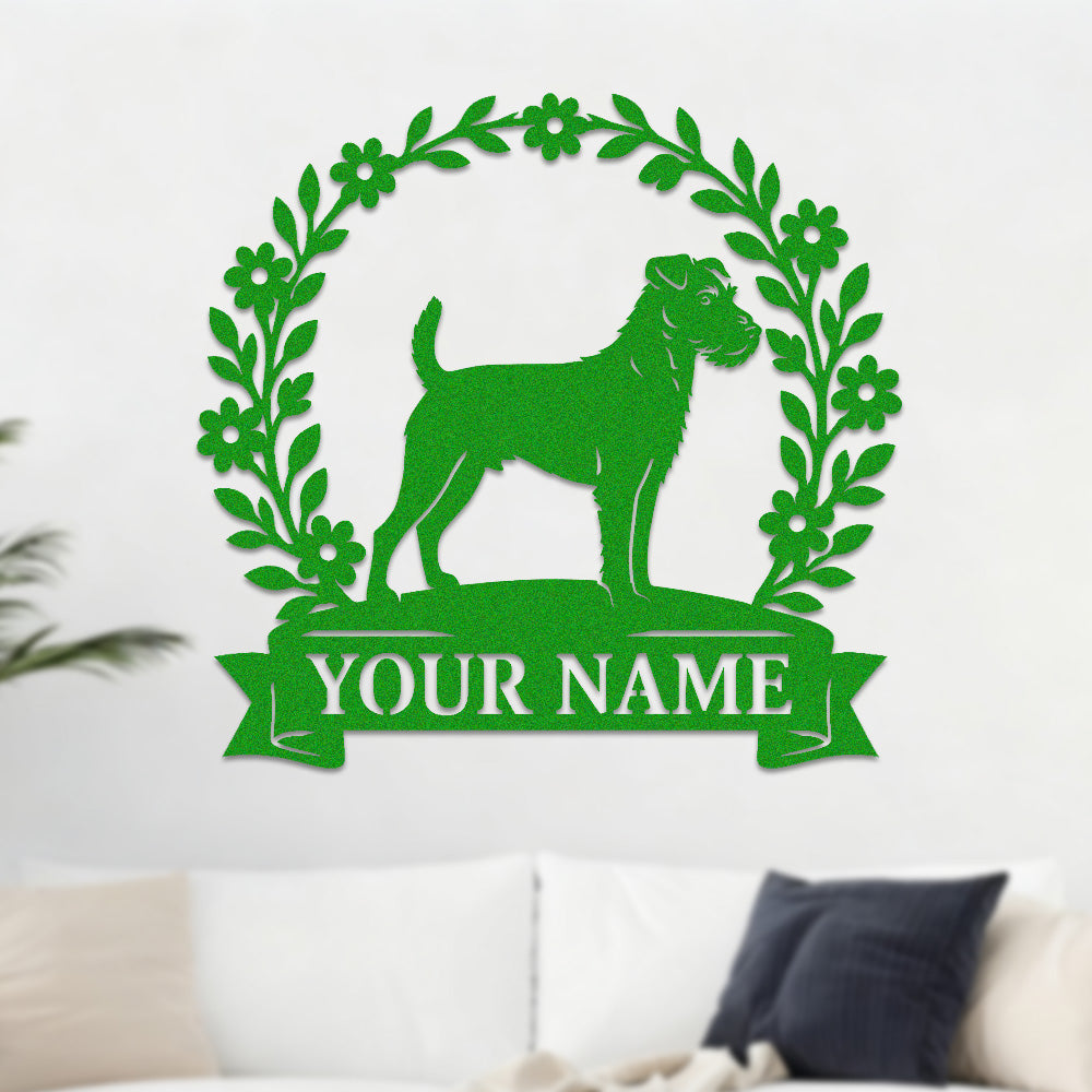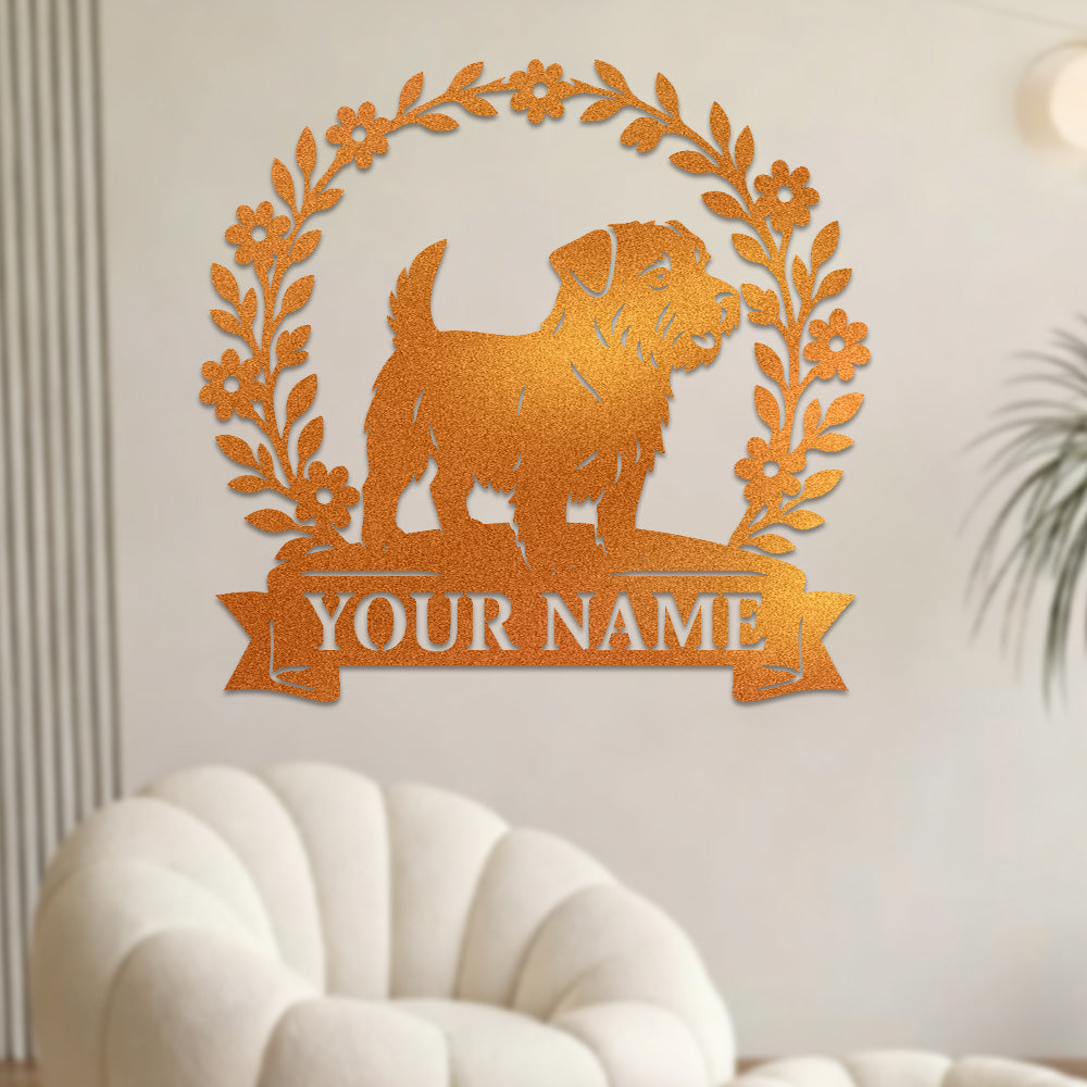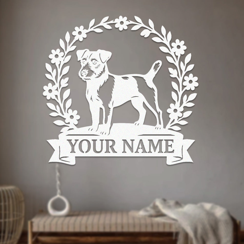 Border Terrier Wreath Metal Wall Art Dog Lover Personalized Memorial Metal Sign