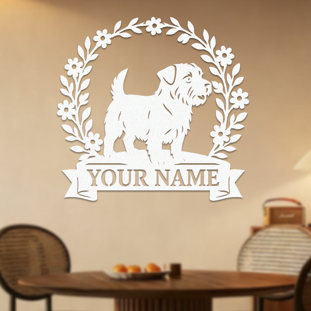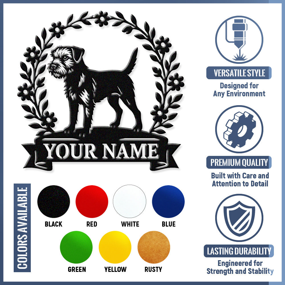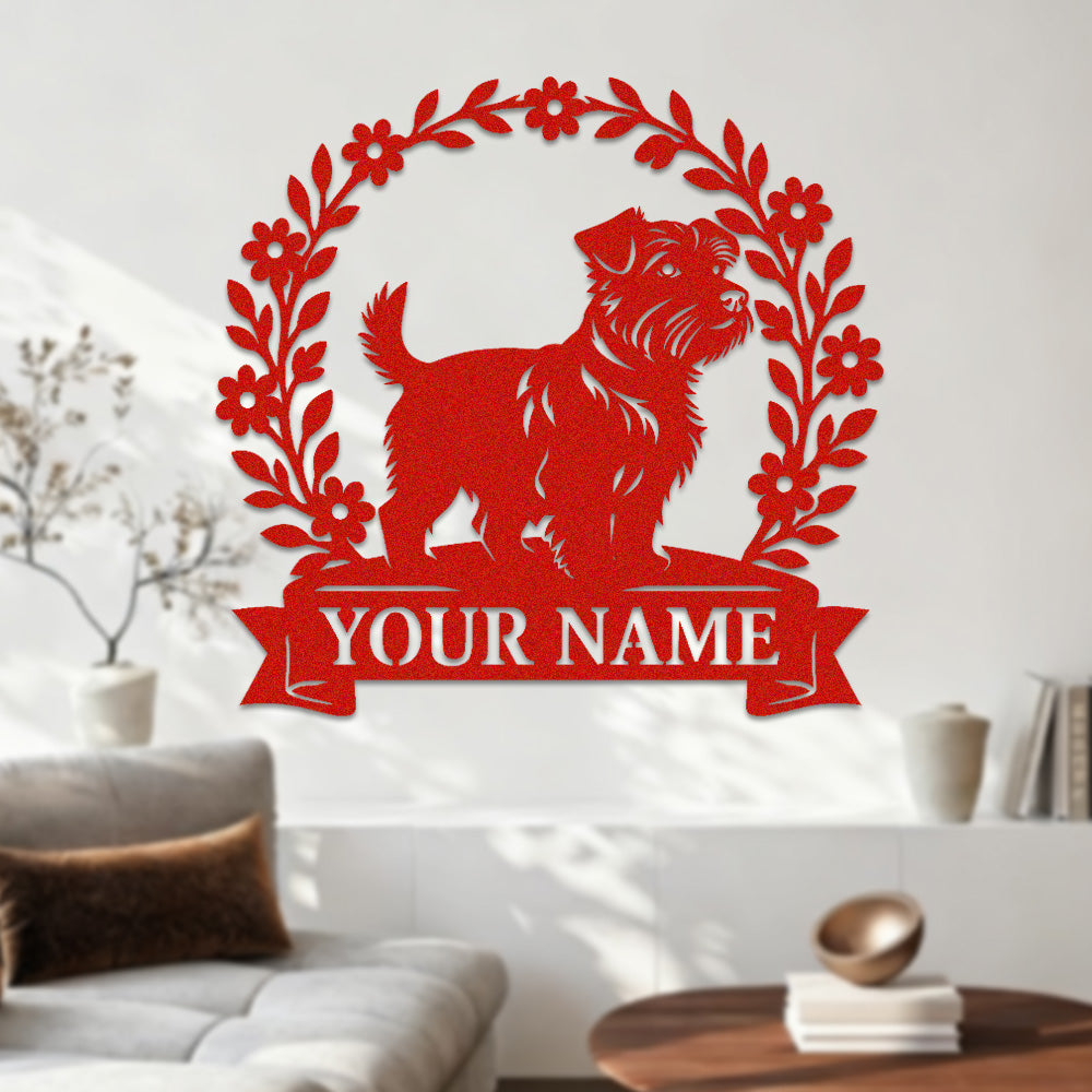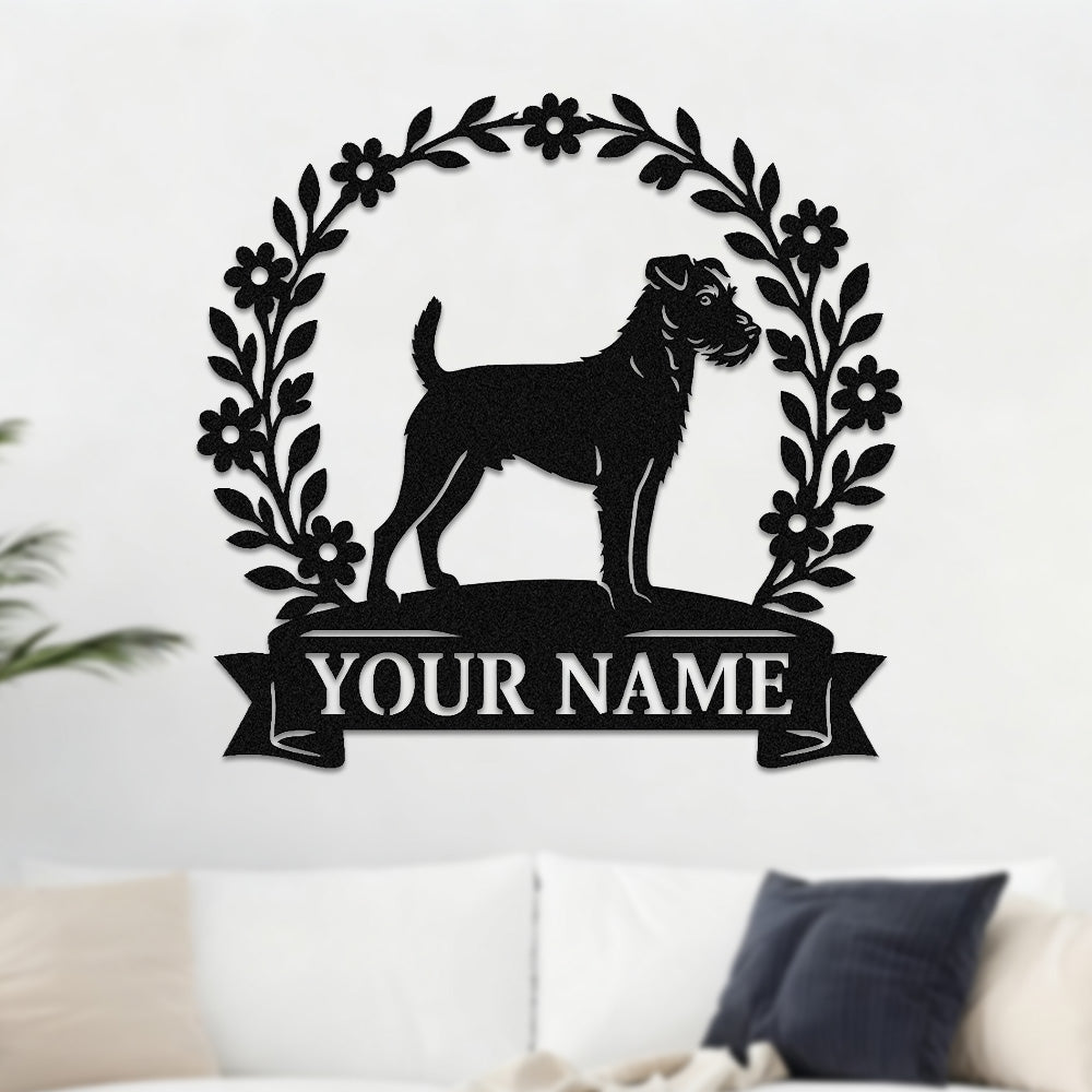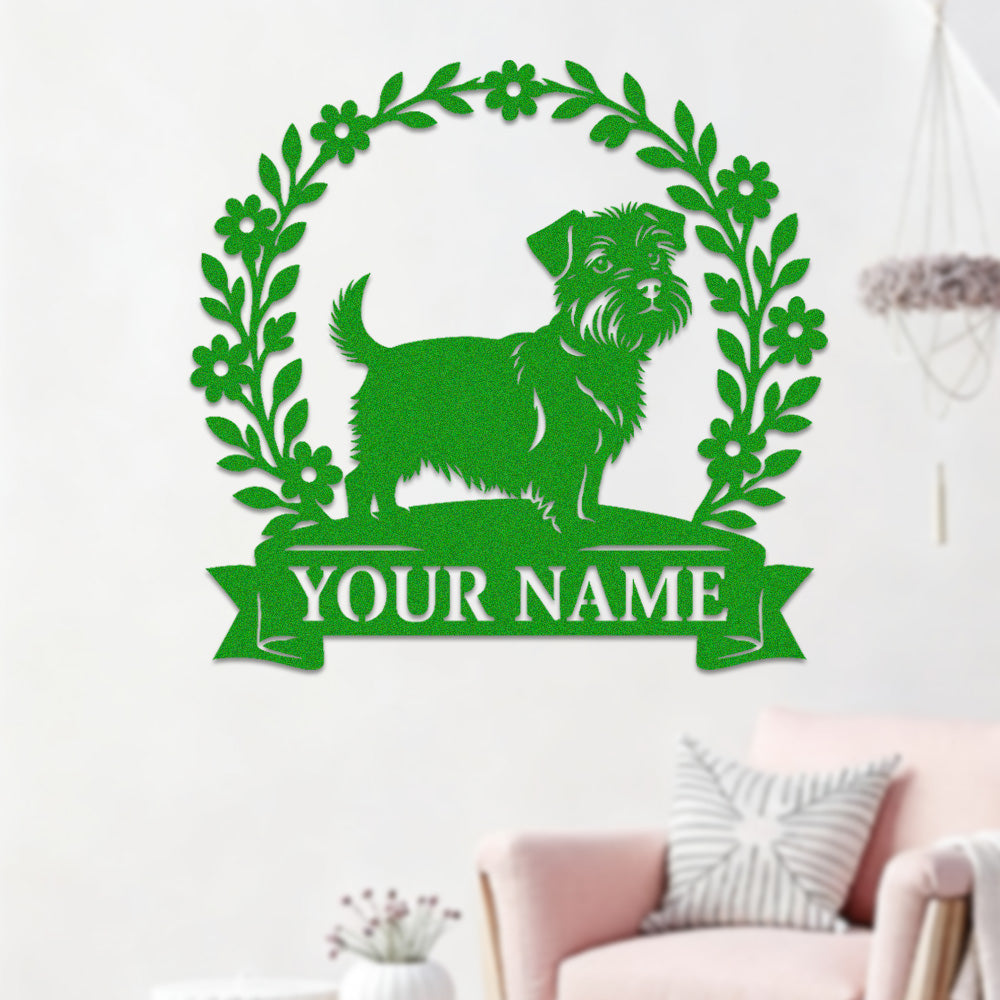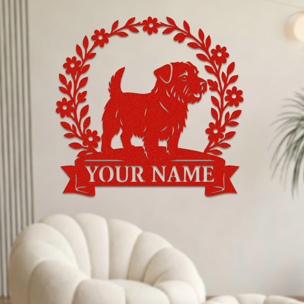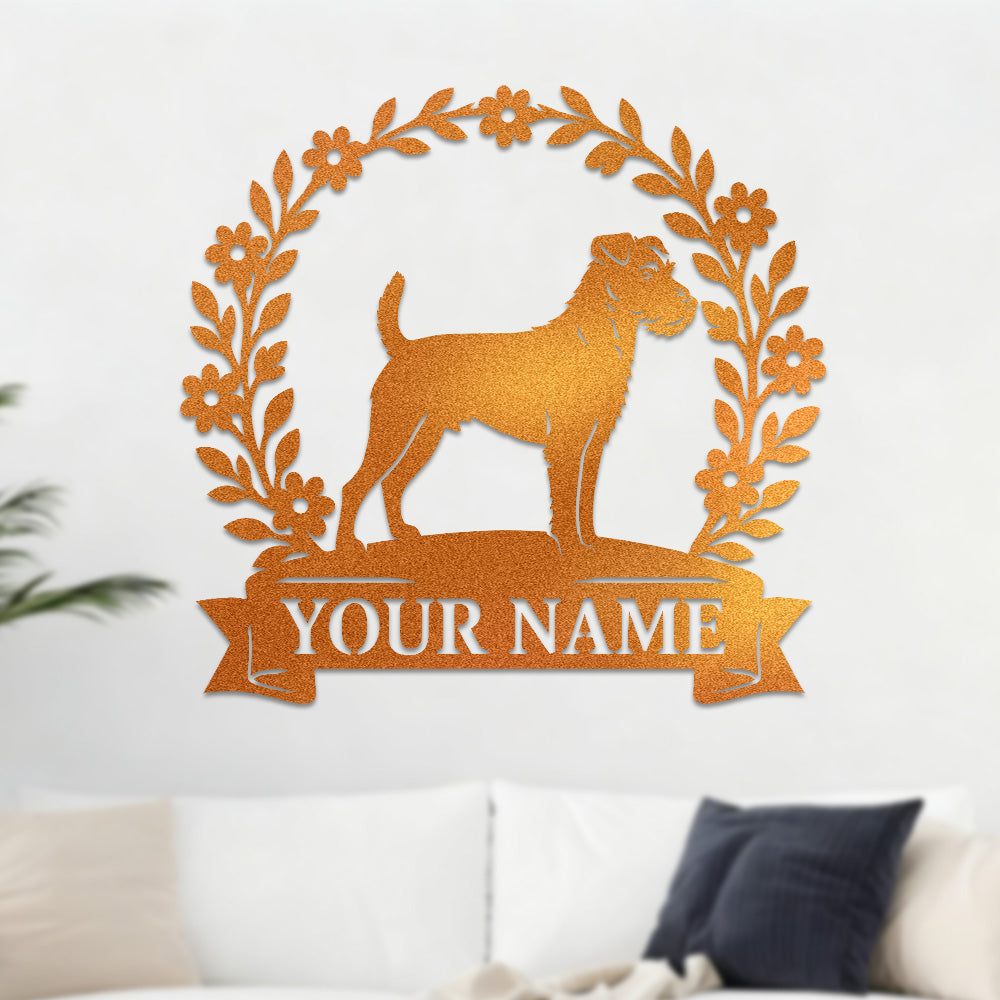 Border Terrier Wreath Metal Wall Art Dog Lover Personalized Memorial Metal Sign
