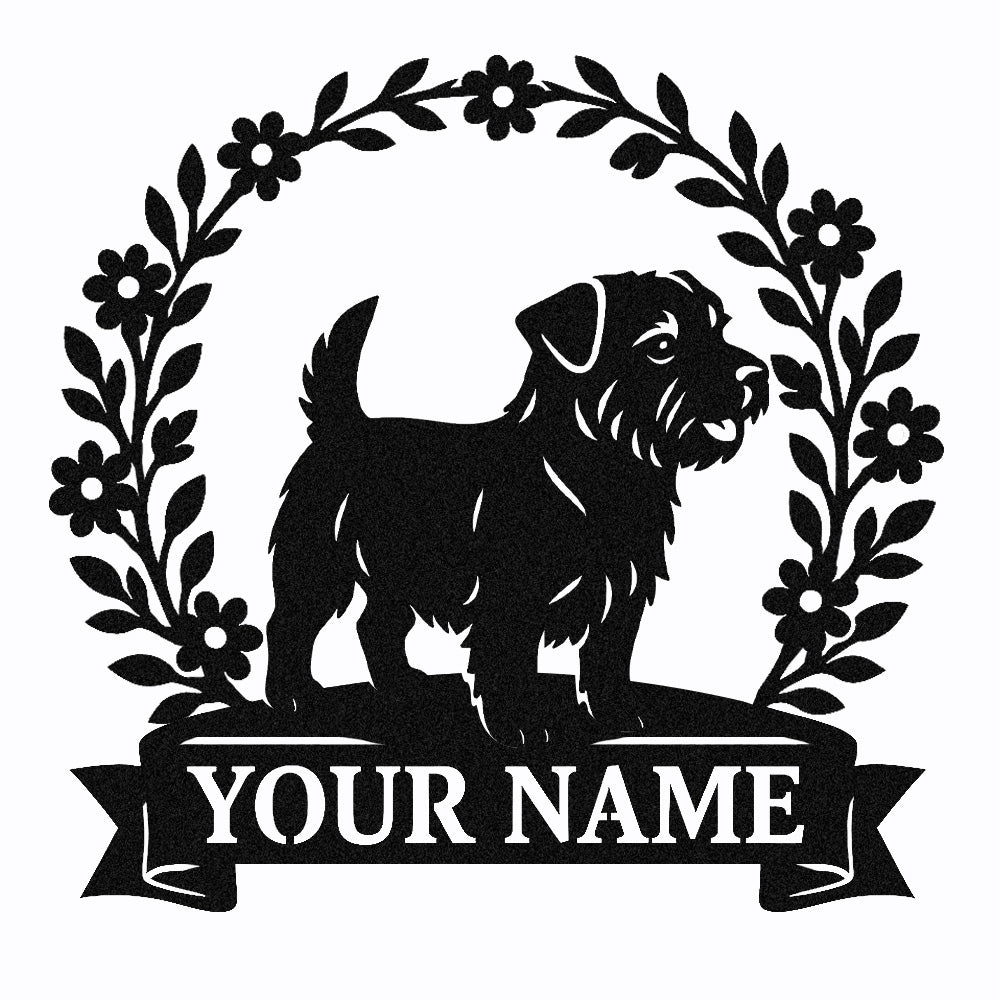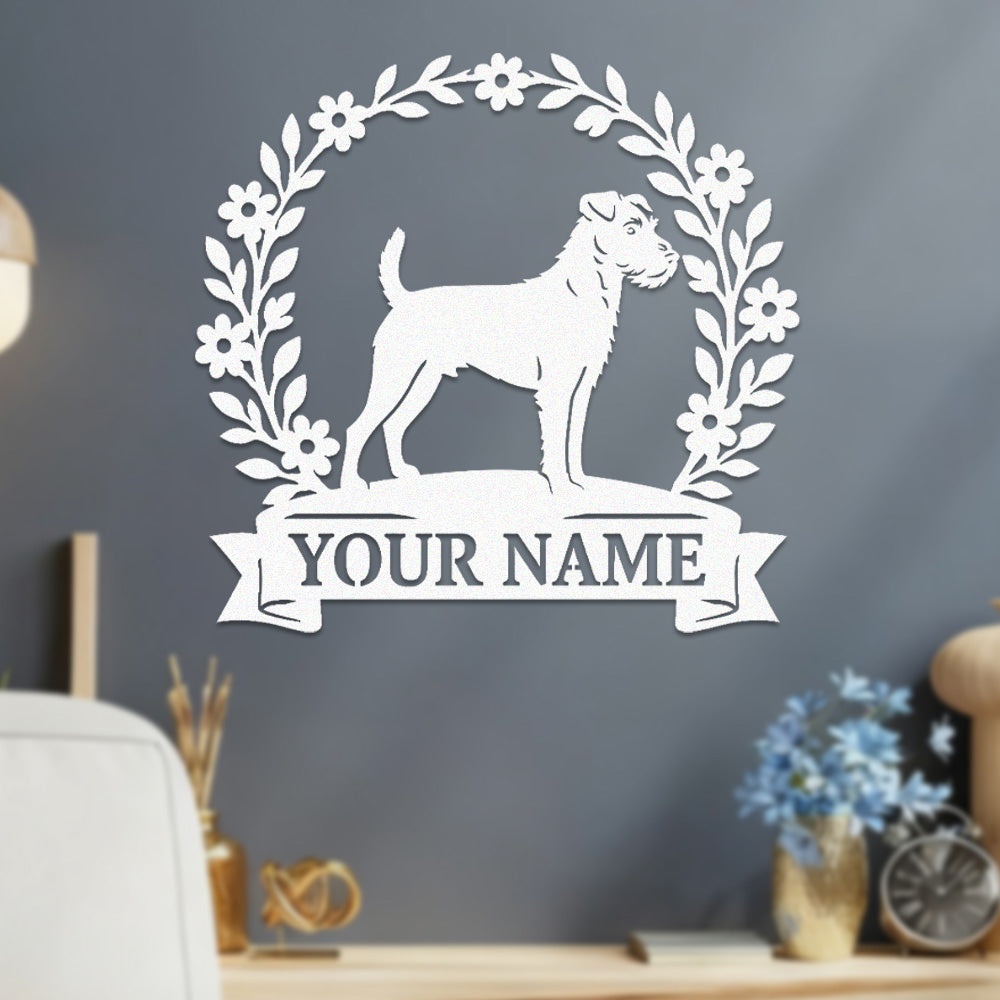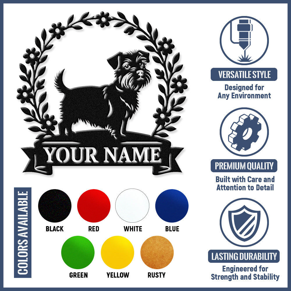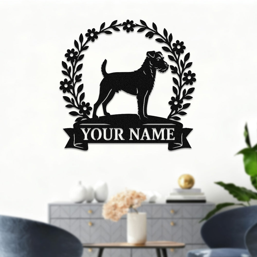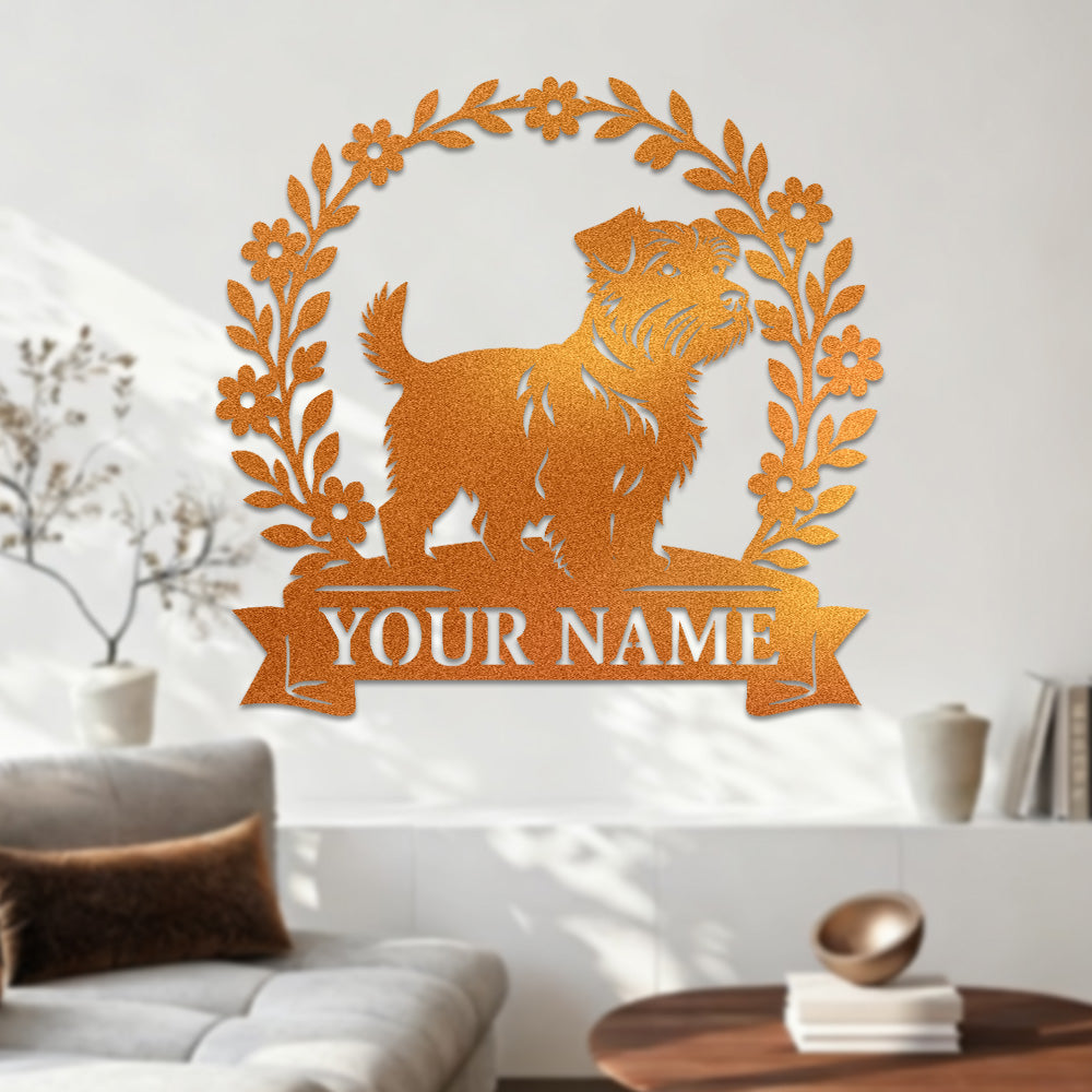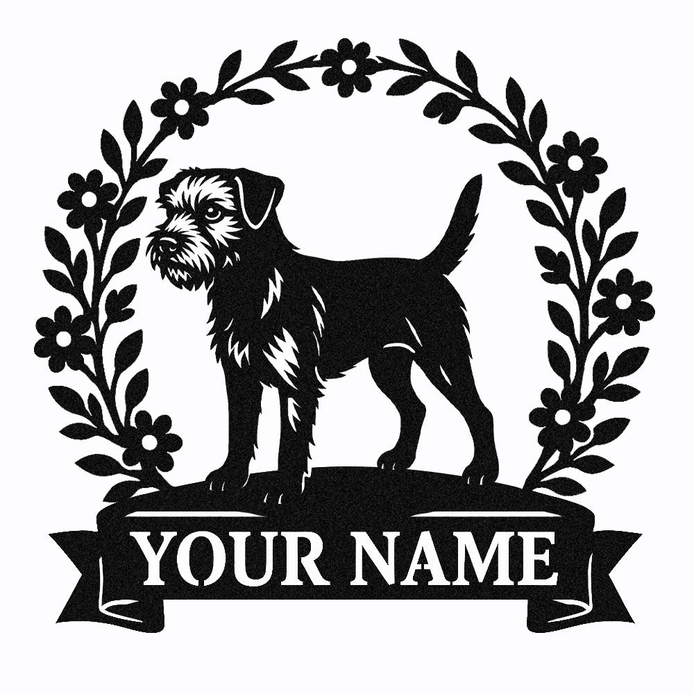 Border Terrier Wreath Metal Wall Art Dog Lover Personalized Memorial Metal Sign