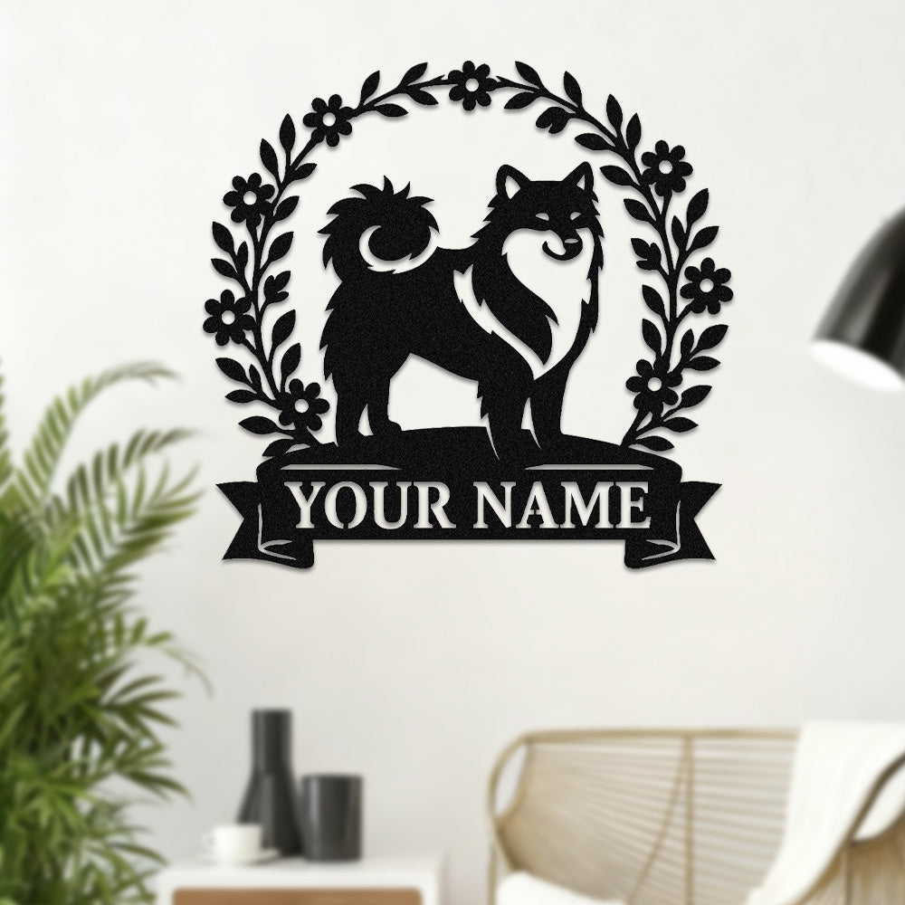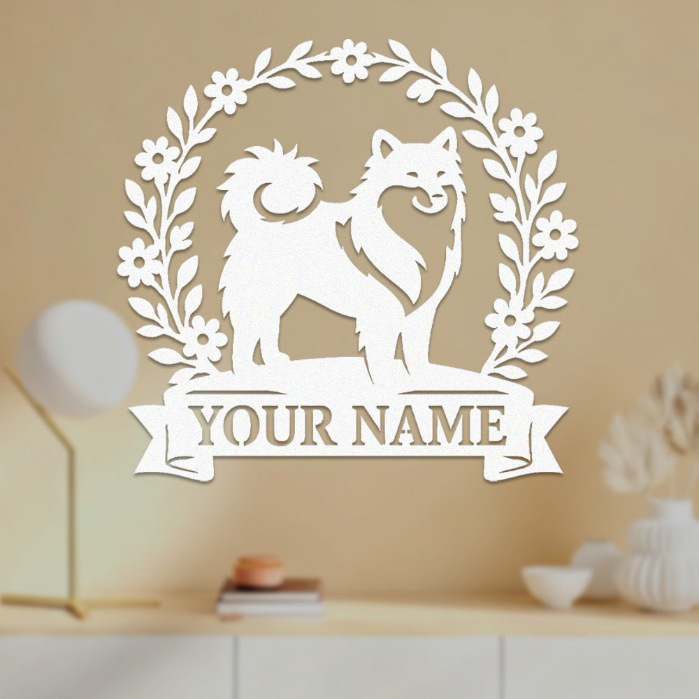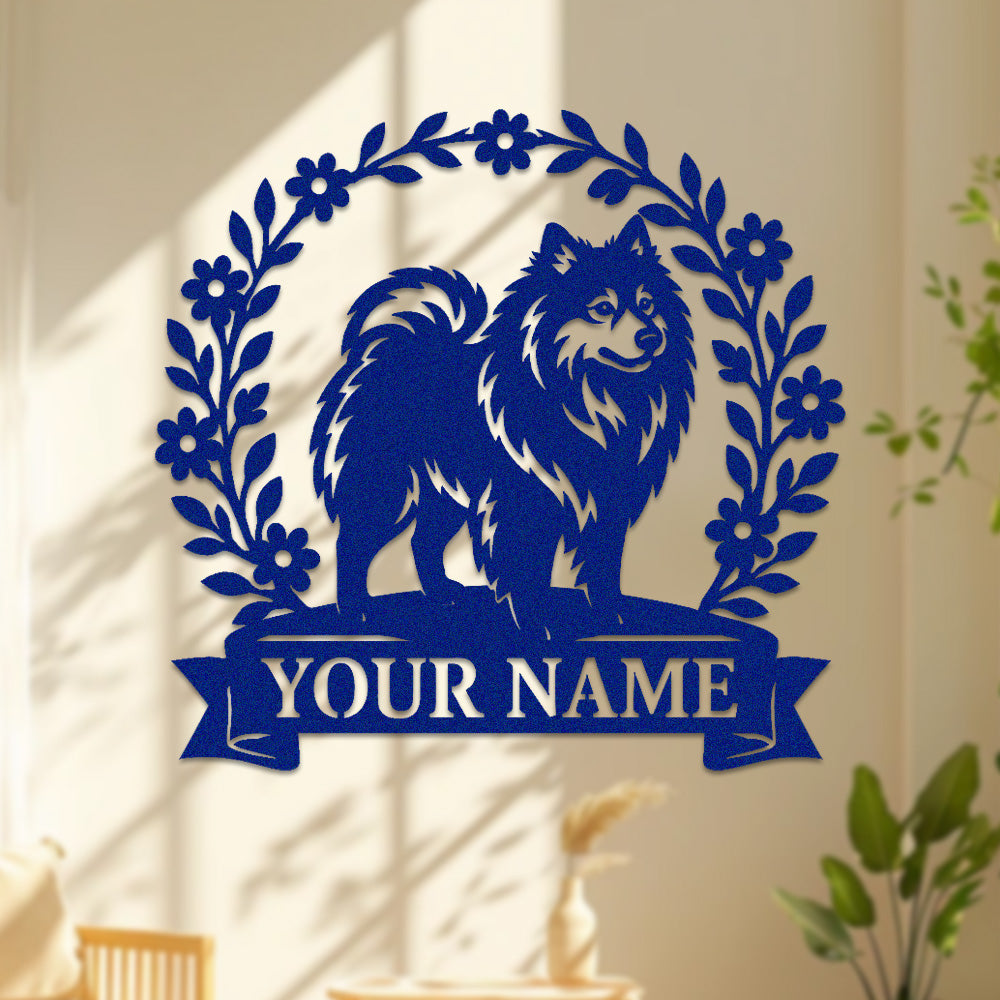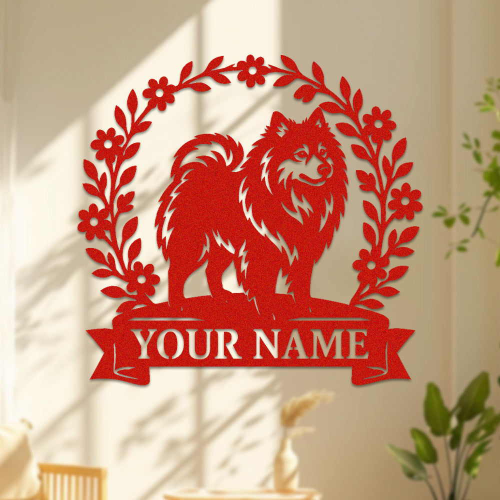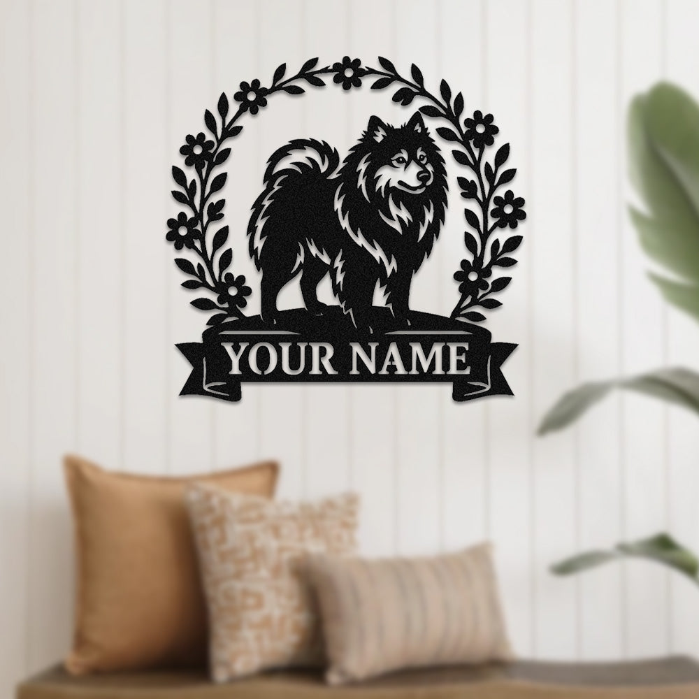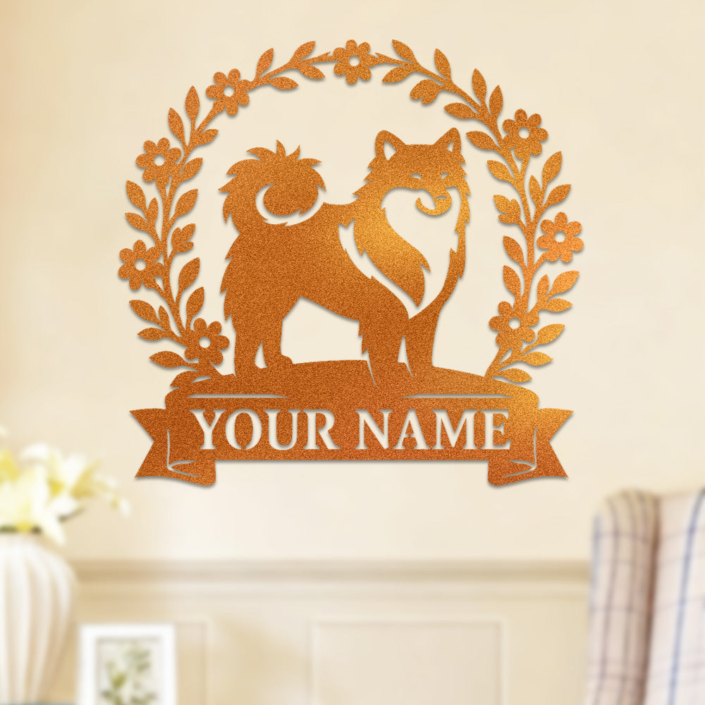 Keeshond Wreath Metal Wall Art Dog Lover Personalized Memorial Metal Sign