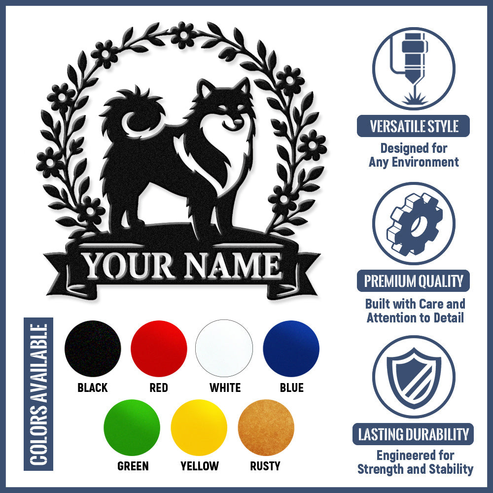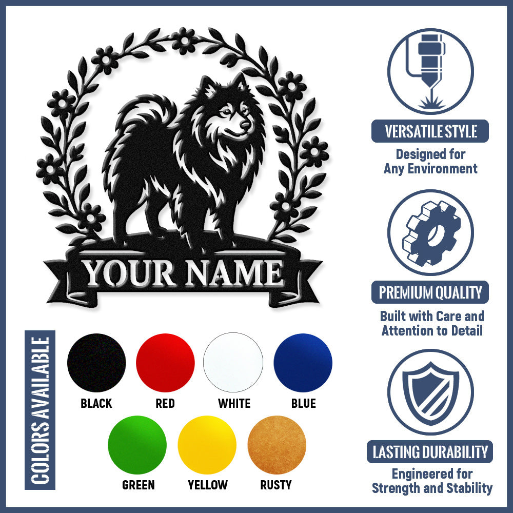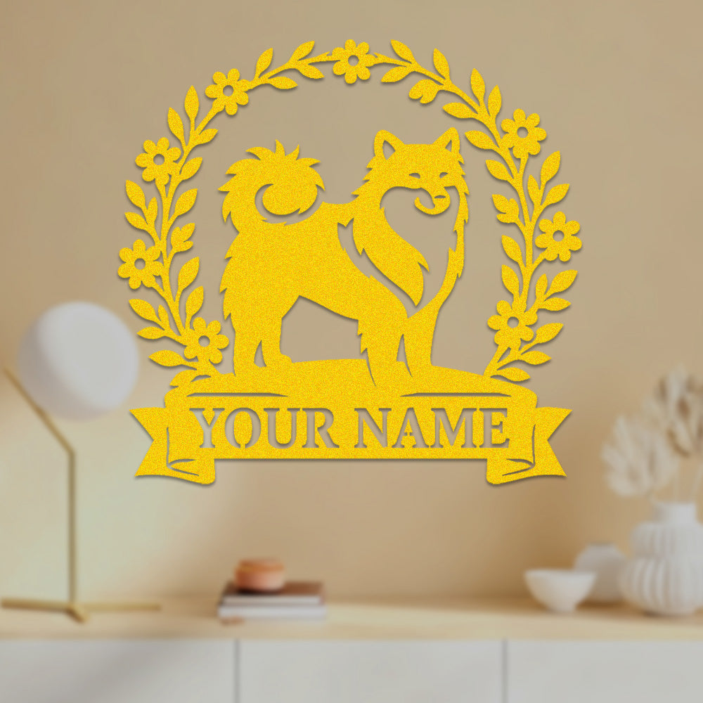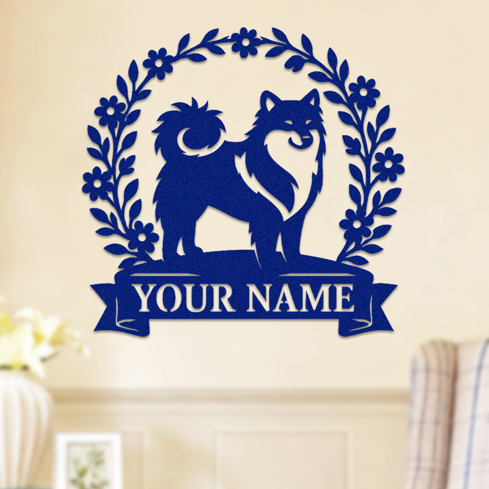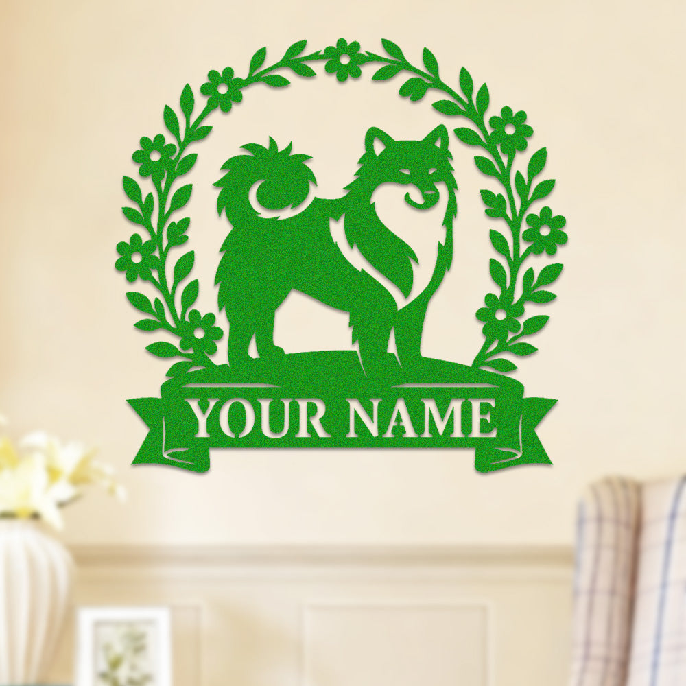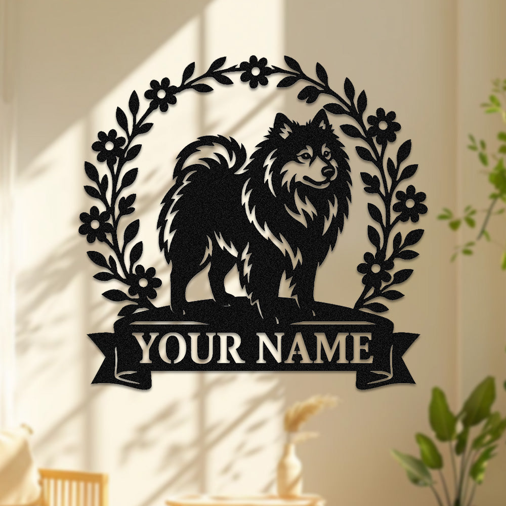 Keeshond Wreath Metal Wall Art Dog Lover Personalized Memorial Metal Sign