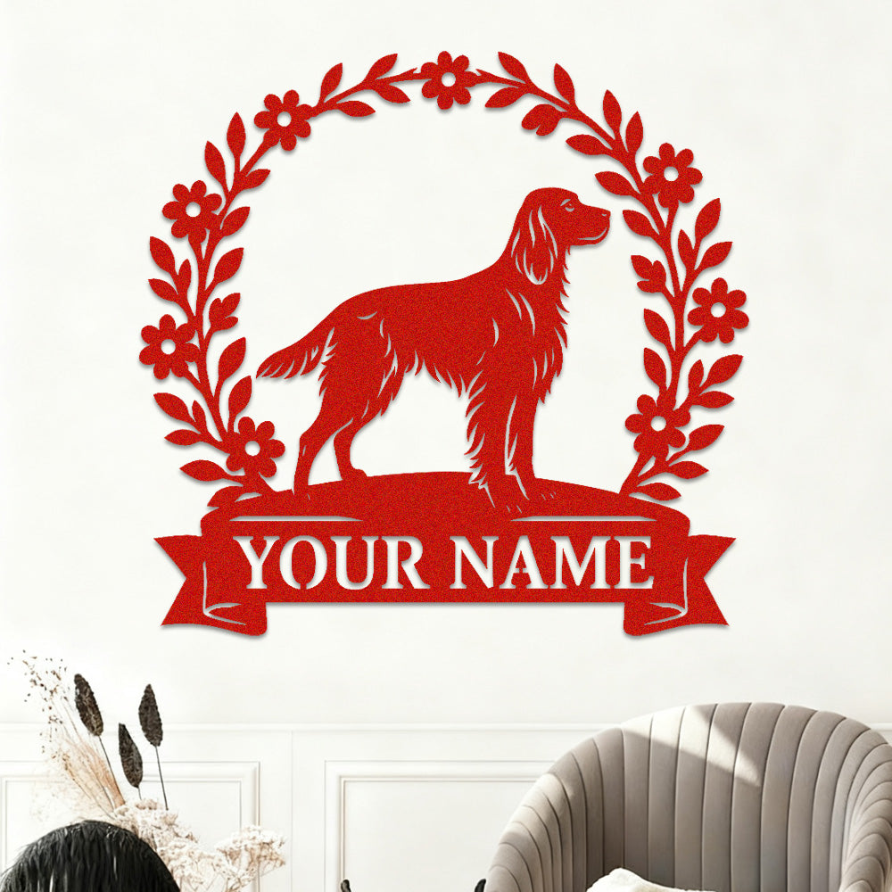 Irish Setter Wreath Metal Wall Art Dog Lover Personalized Memorial Metal Sign