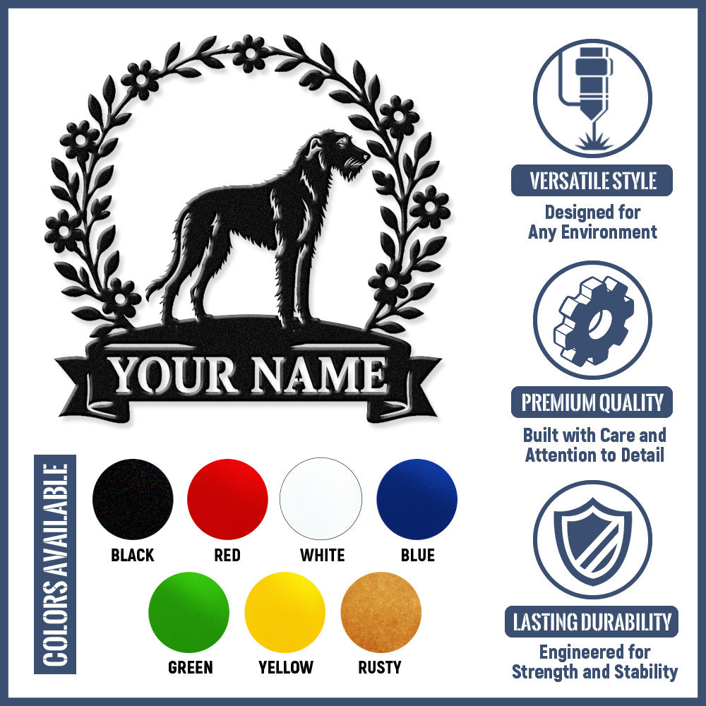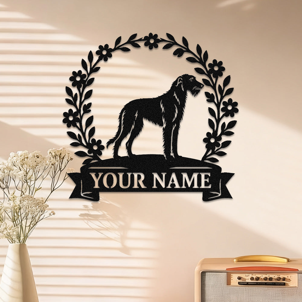 Irish Wolfhound Wreath Metal Wall Art Dog Lover Personalized Memorial Metal Sign