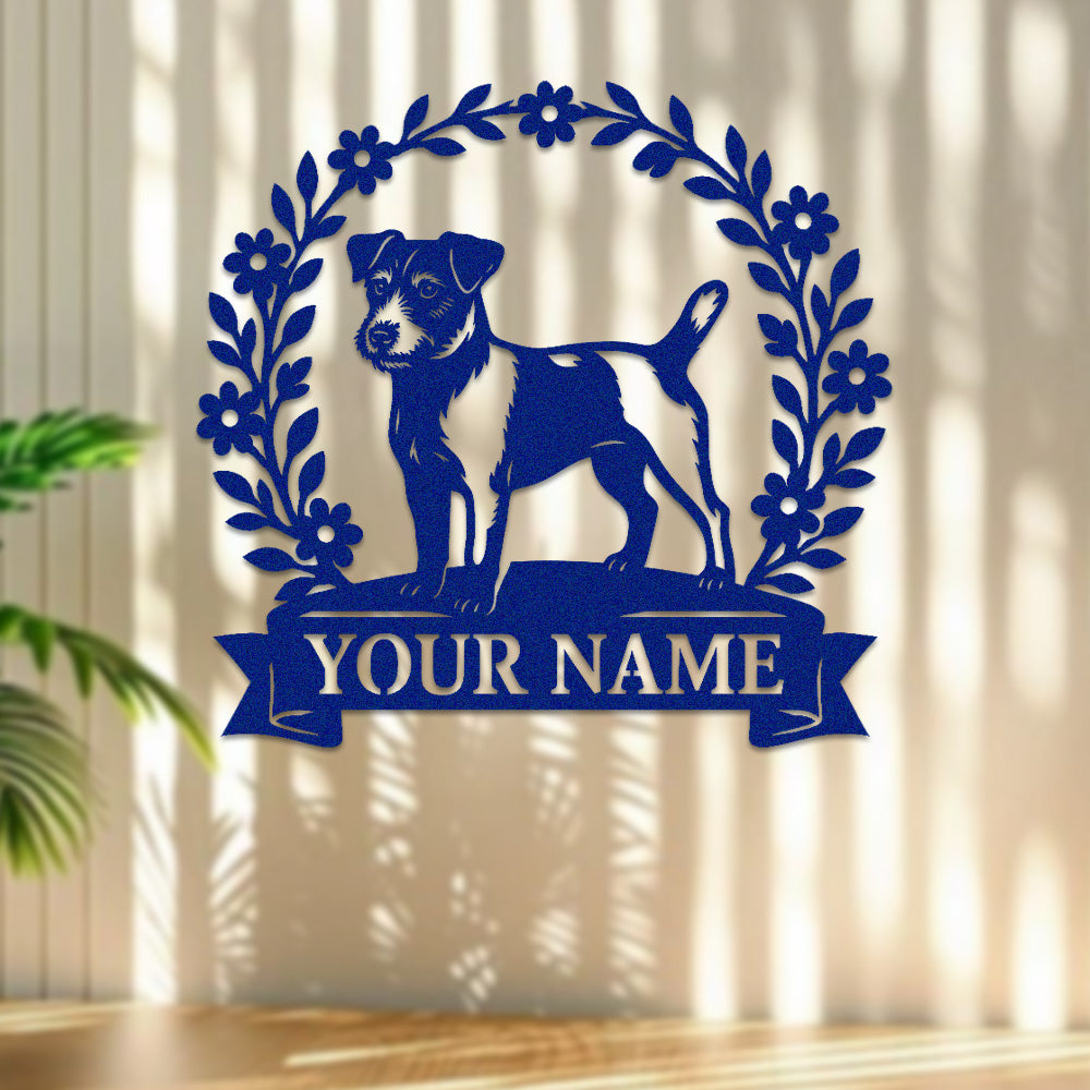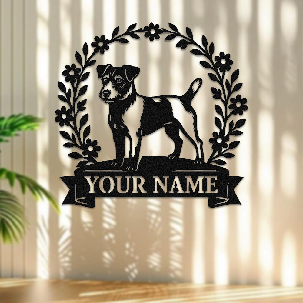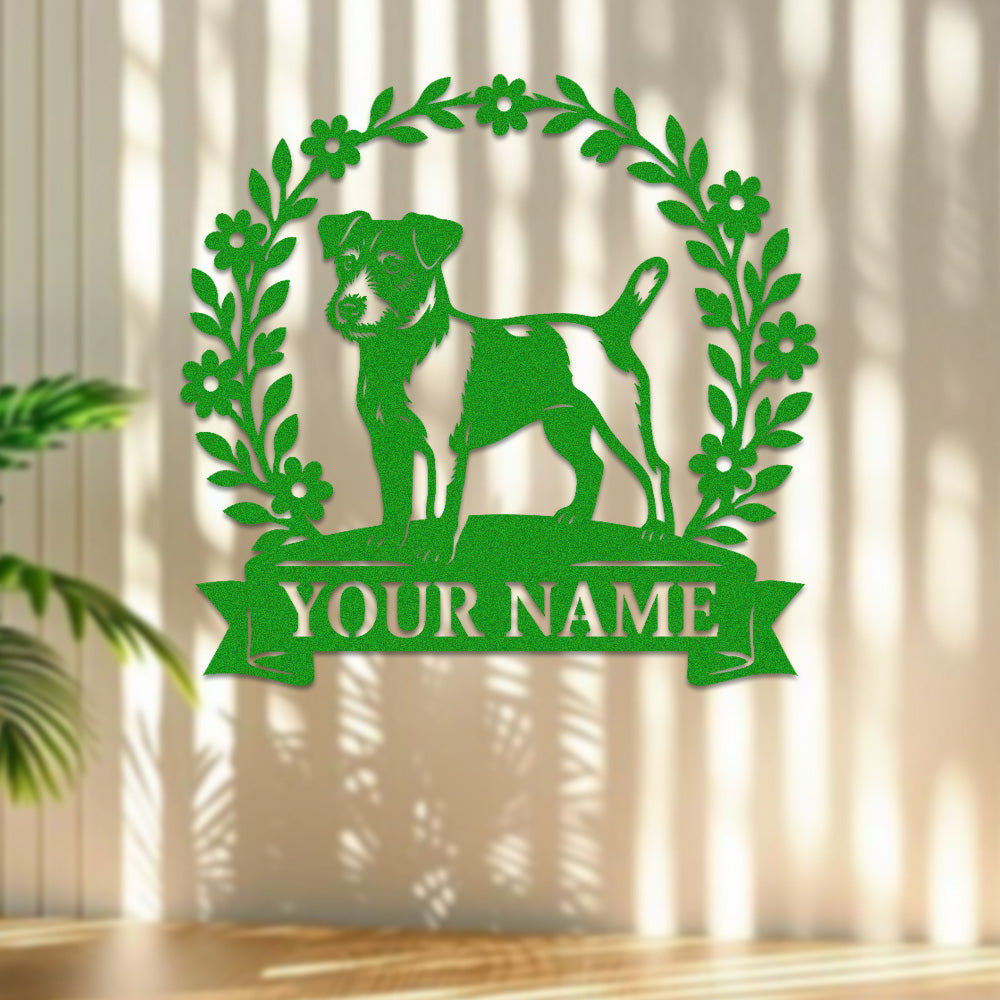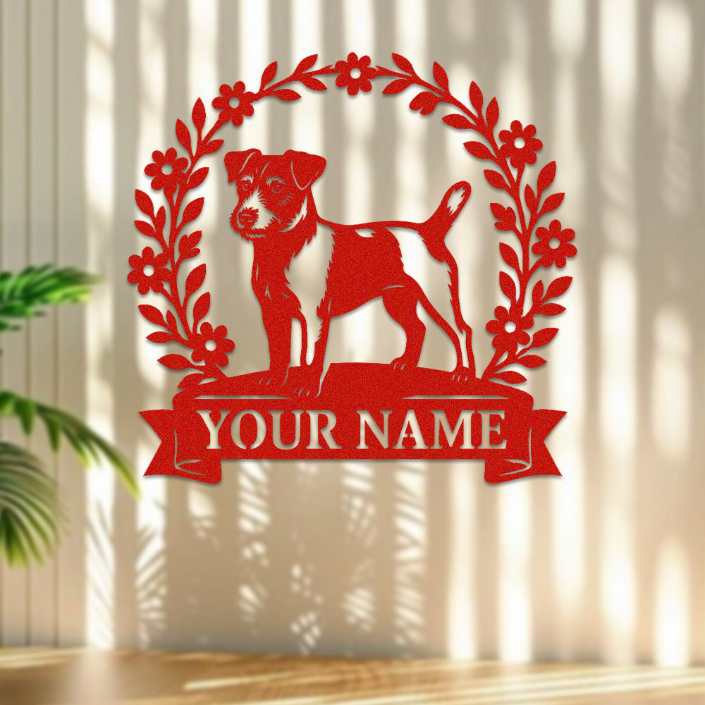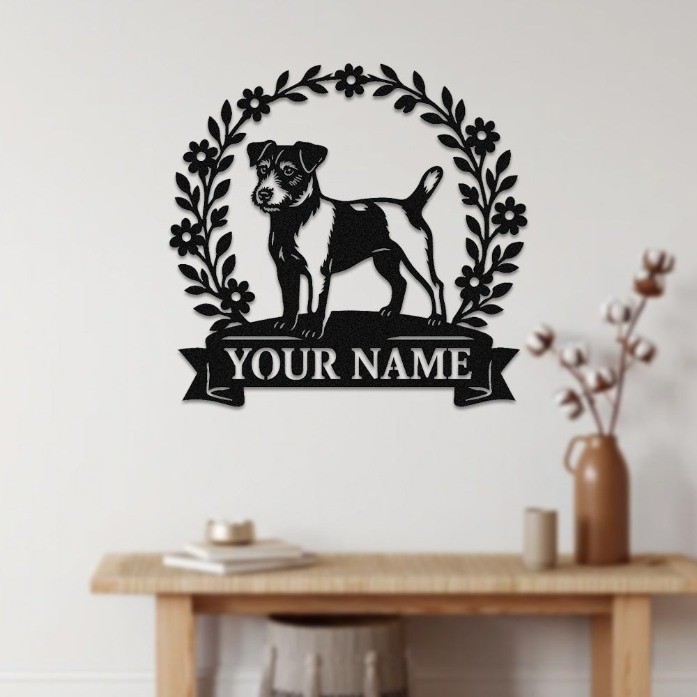 Parson Russell Terrier Wreath Metal Wall Art Dog Lover Personalized Memorial Metal Sign