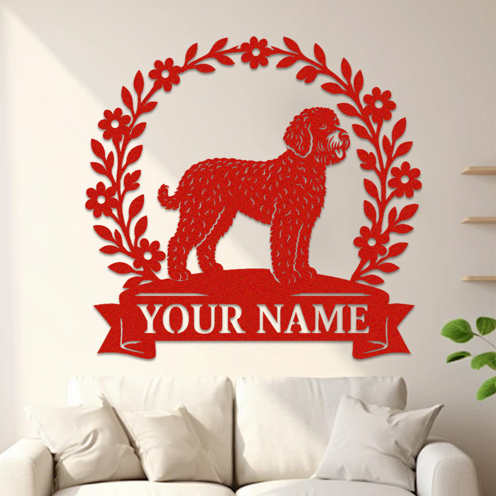 Lagotto Romagnolo Wreath Metal Wall Art Dog Lover Personalized Memorial Metal Sign