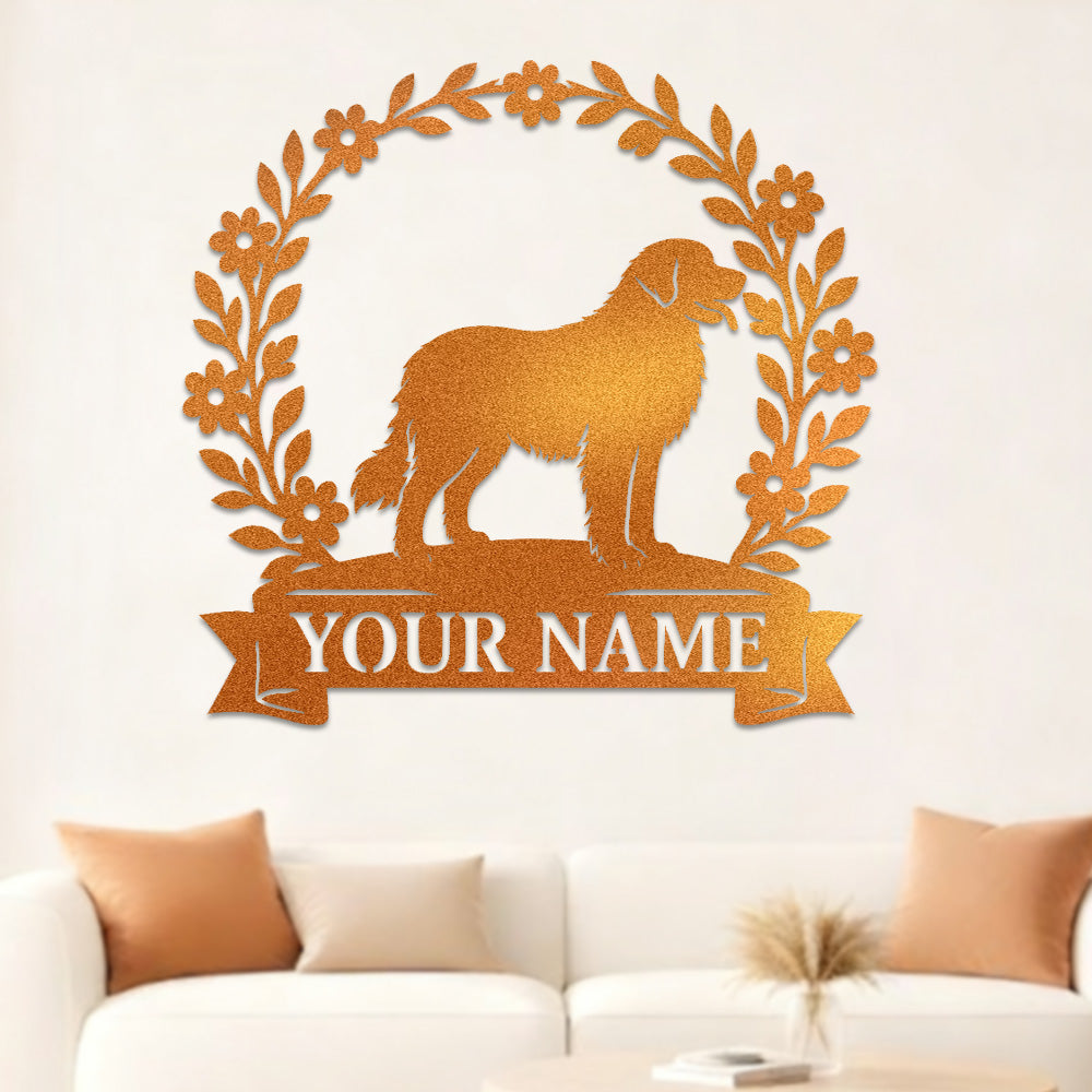 Leonberger Wreath Metal Wall Art Dog Lover Personalized Memorial Metal Sign