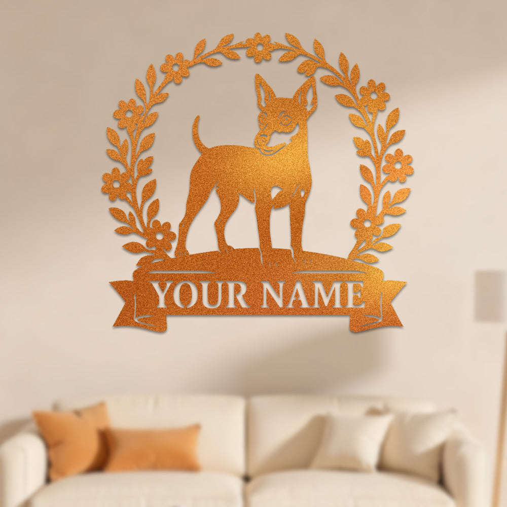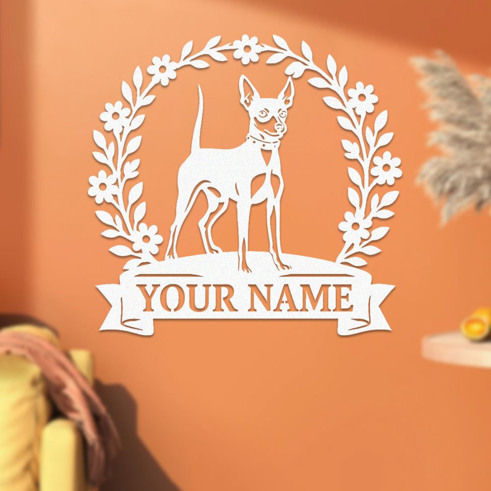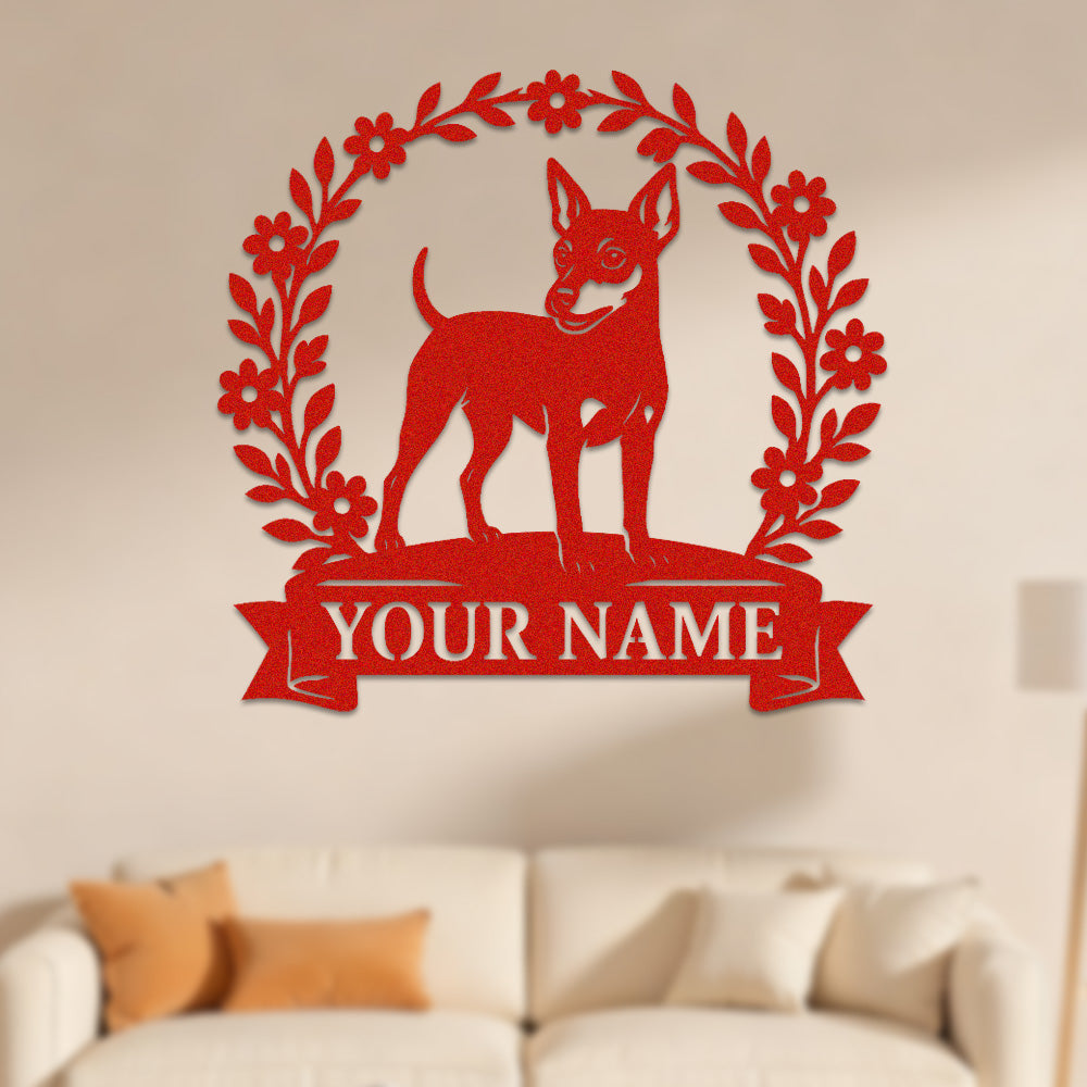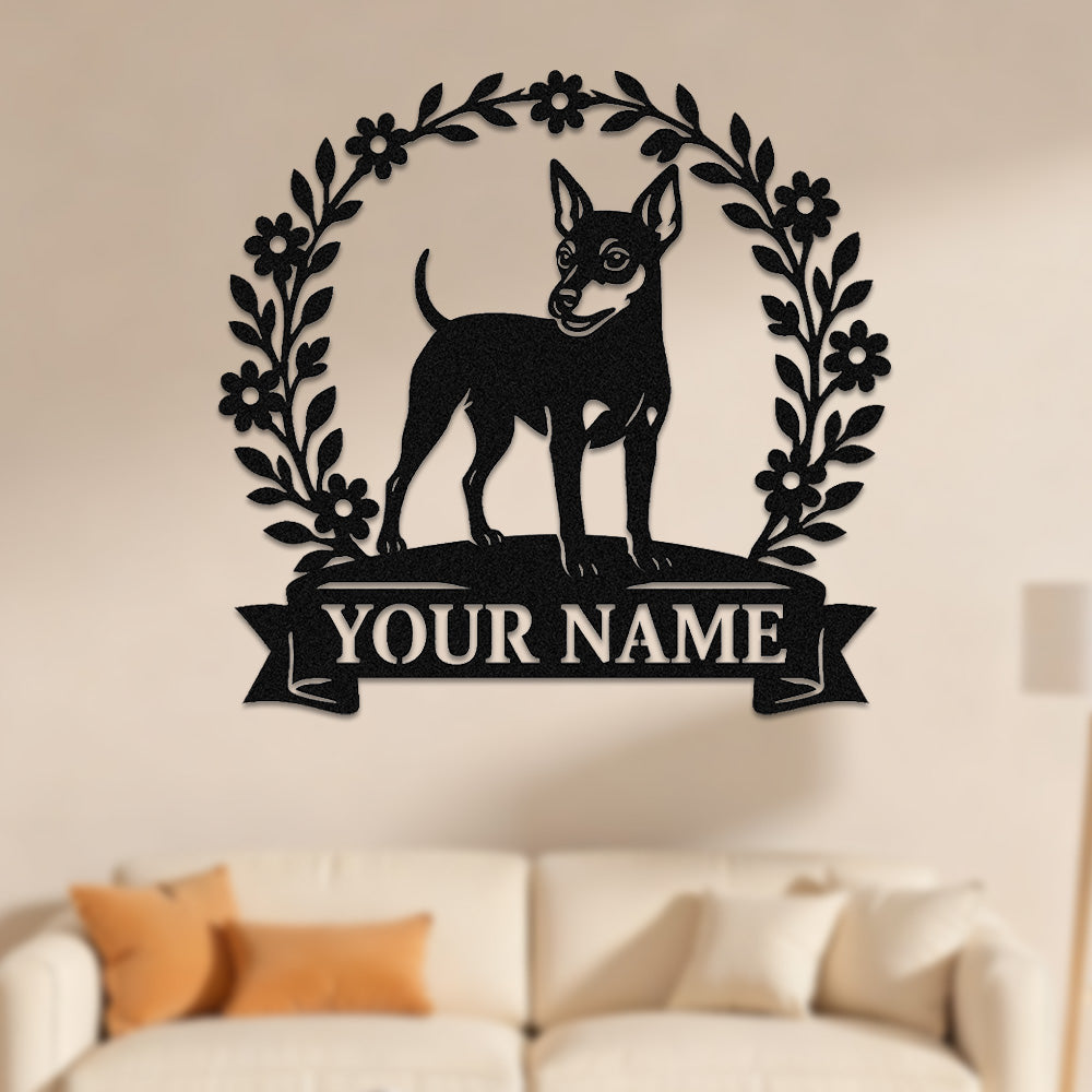 Miniature Pinscher Wreath Metal Wall Art Dog Lover Personalized Memorial Metal Sign