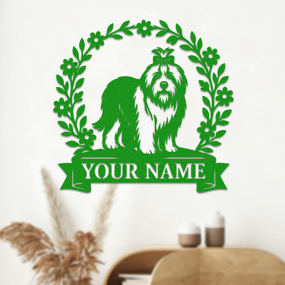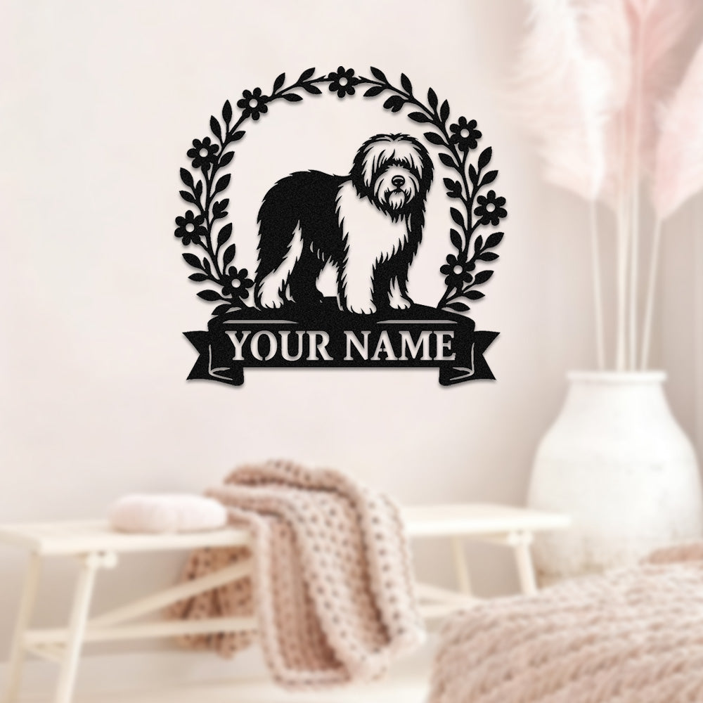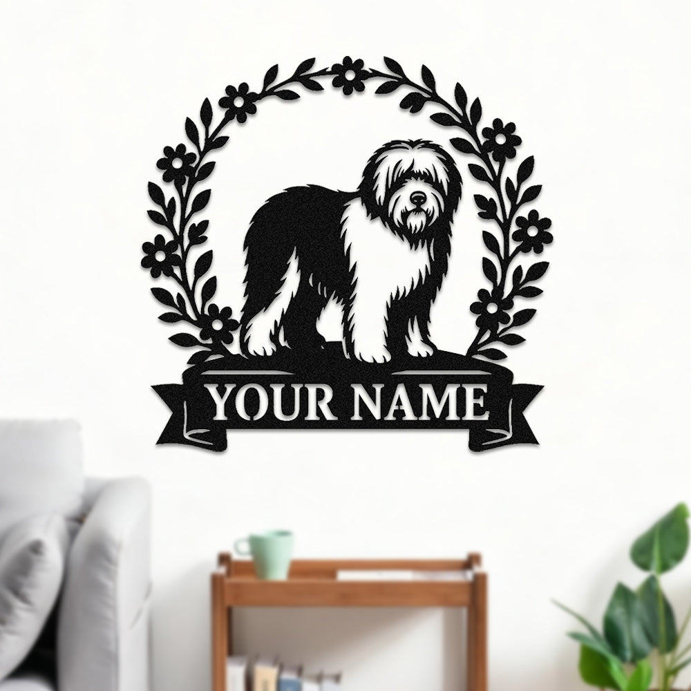 Old English Sheepdog Wreath Metal Wall Art Dog Lover Personalized Memorial Metal Sign
