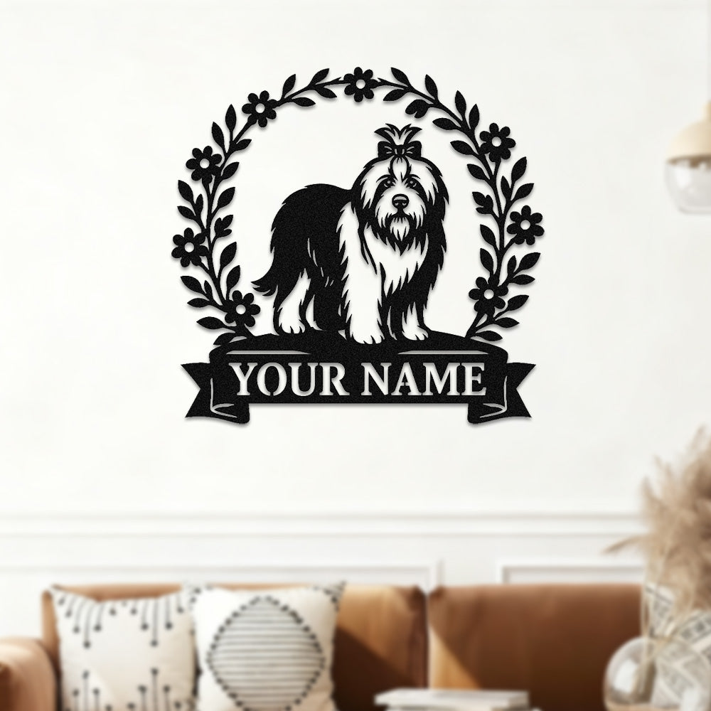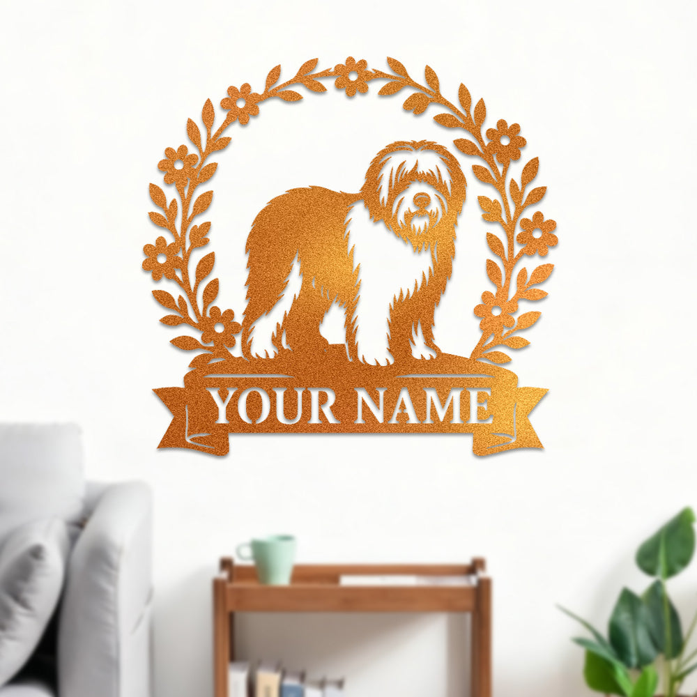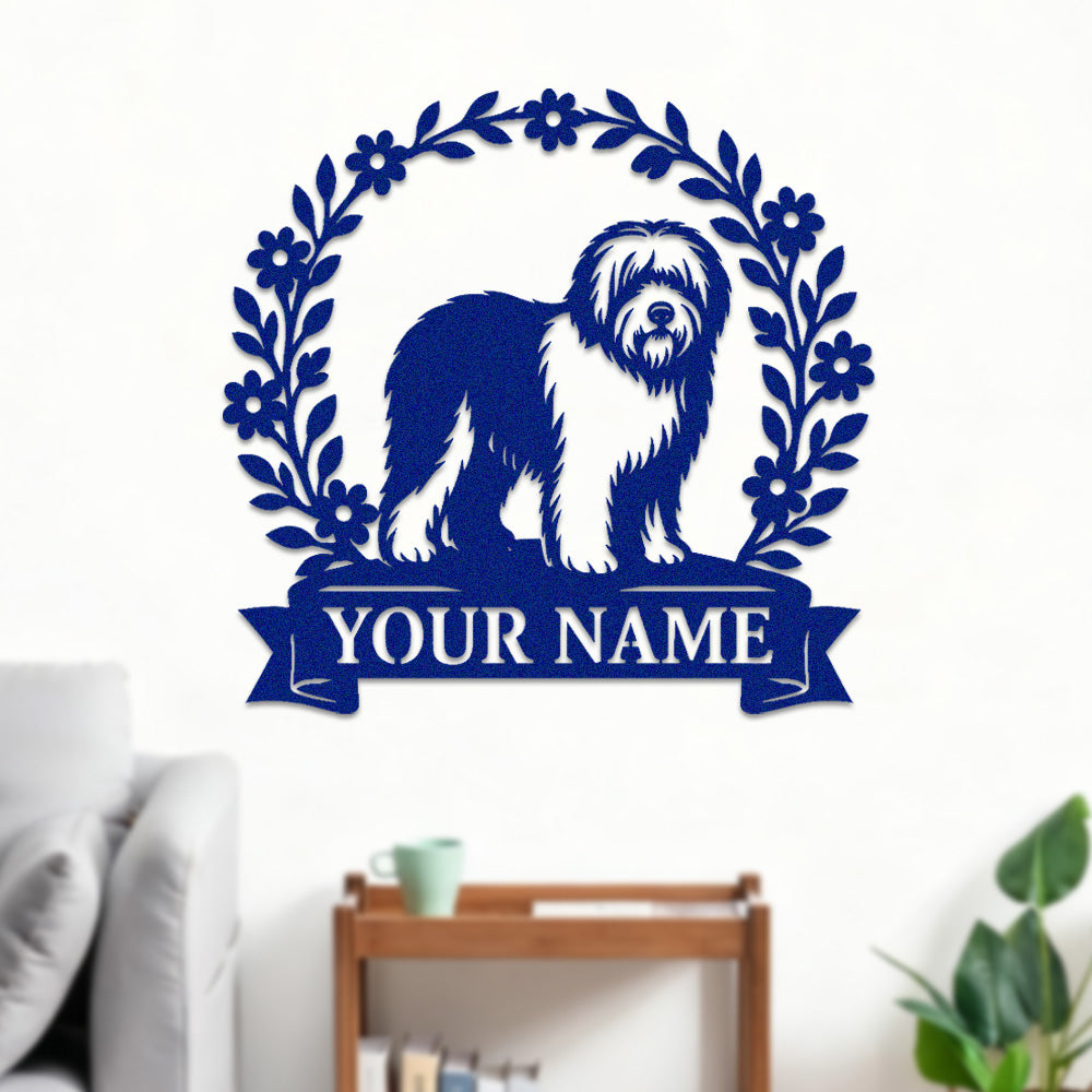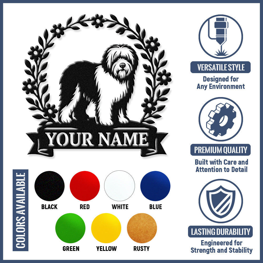 Old English Sheepdog Wreath Metal Wall Art Dog Lover Personalized Memorial Metal Sign