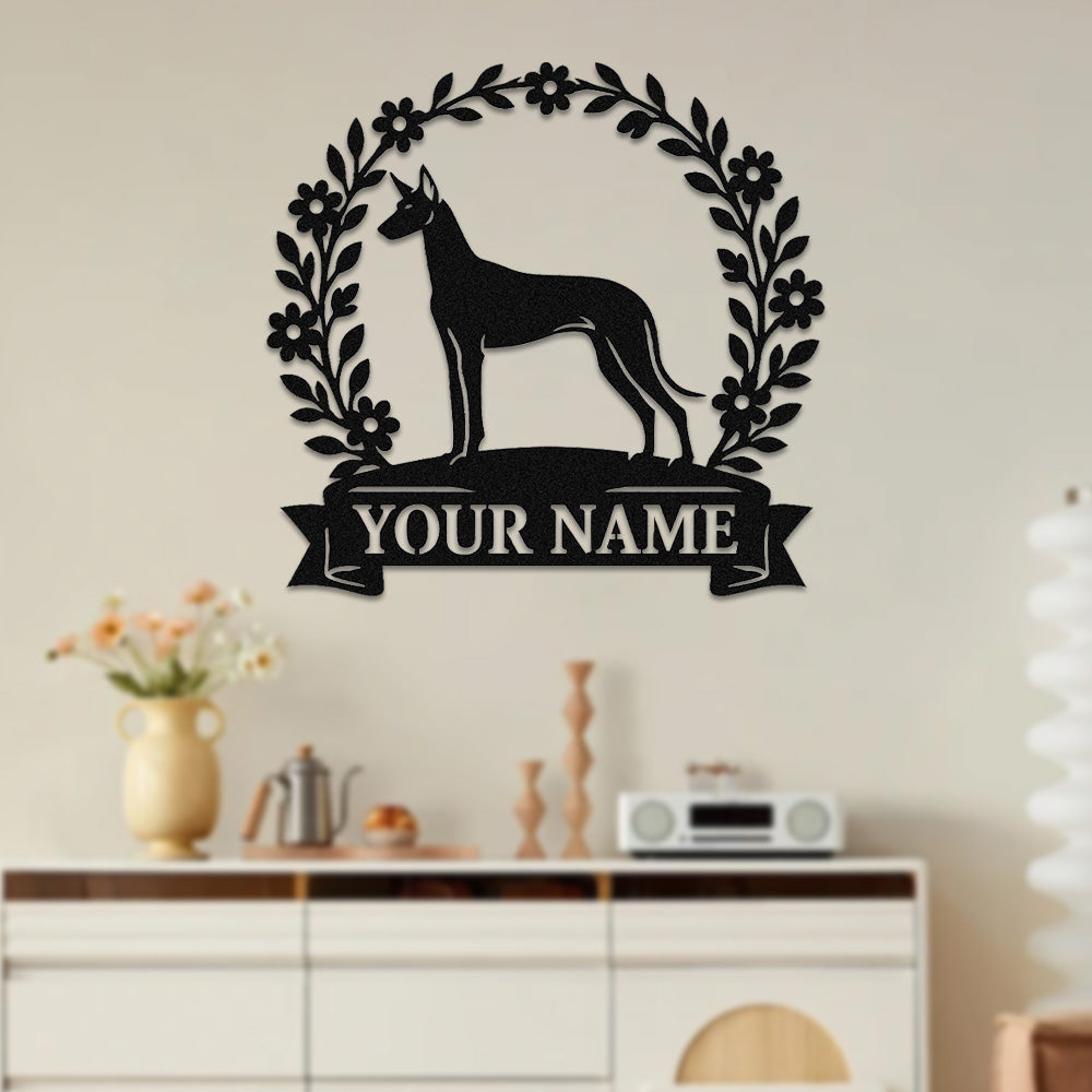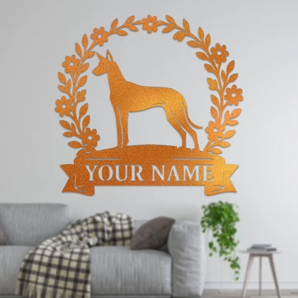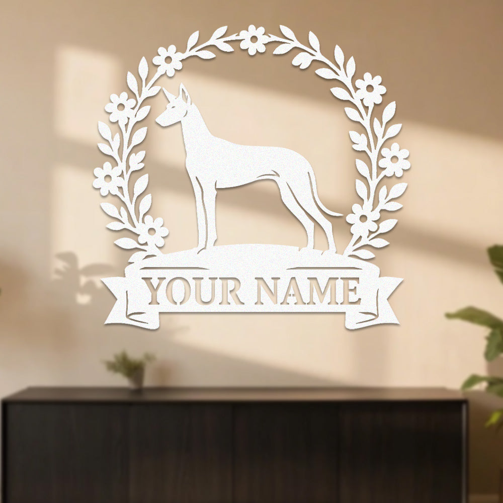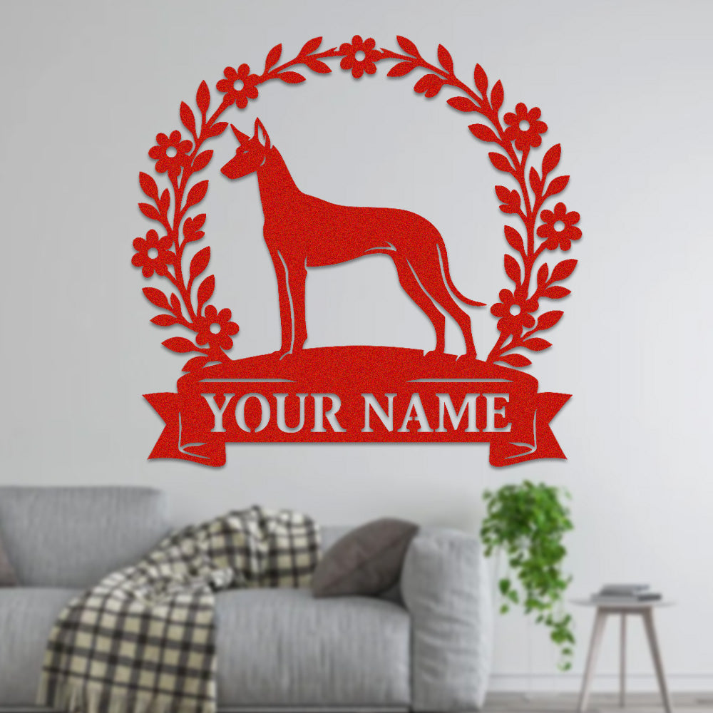 Pharaoh Hound Wreath Metal Wall Art Dog Lover Personalized Memorial Metal Sign