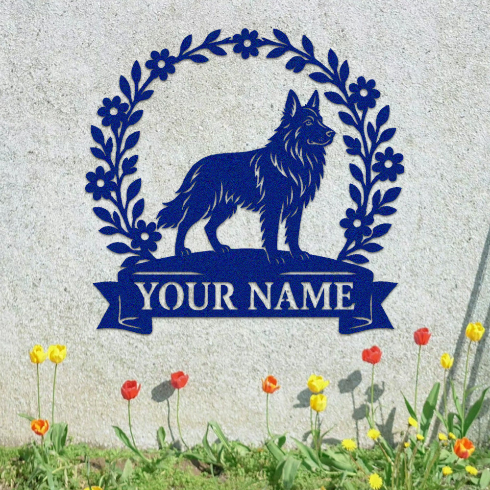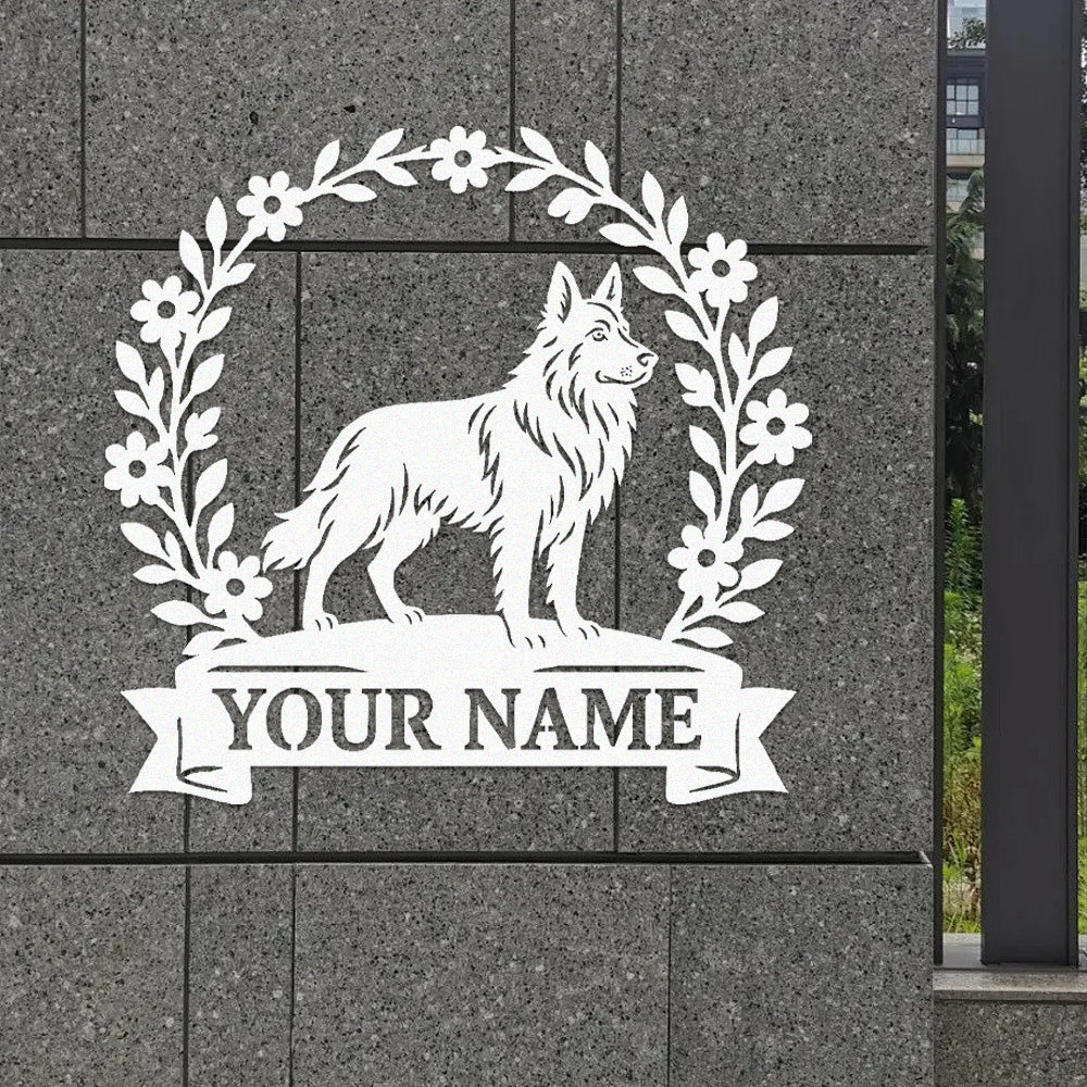 German Shepherd Wreath Metal Wall Art Dog Lover Personalized Memorial Metal Sign