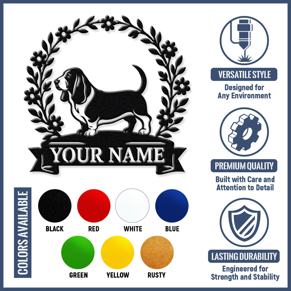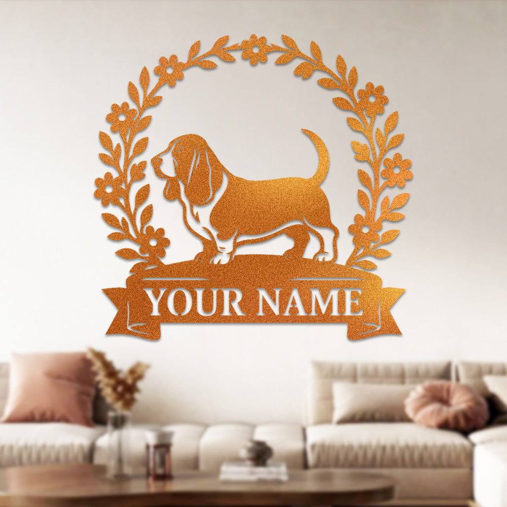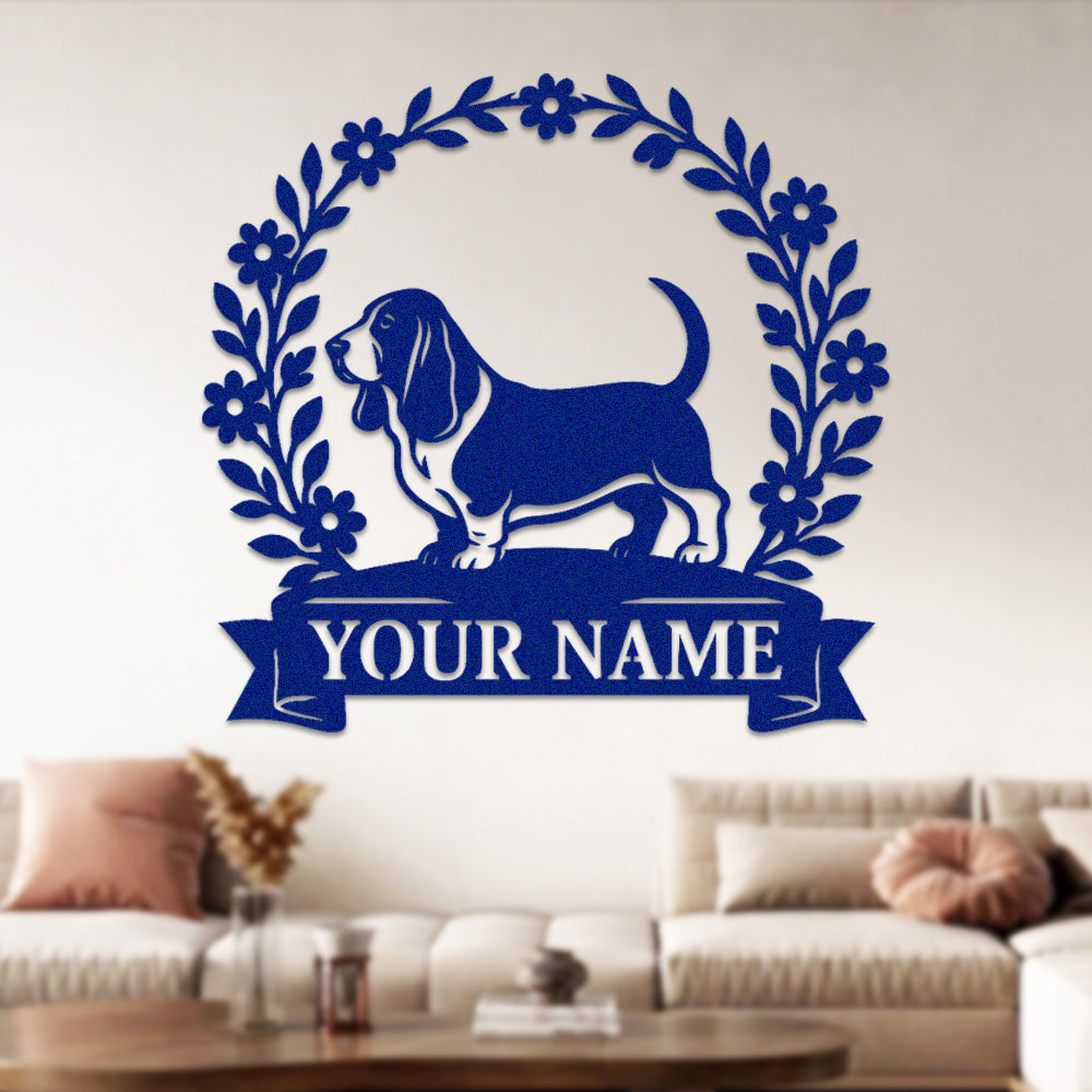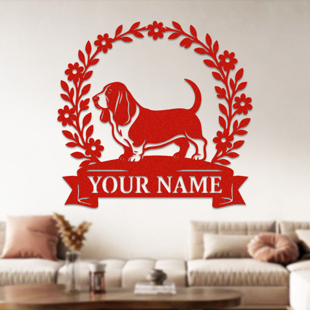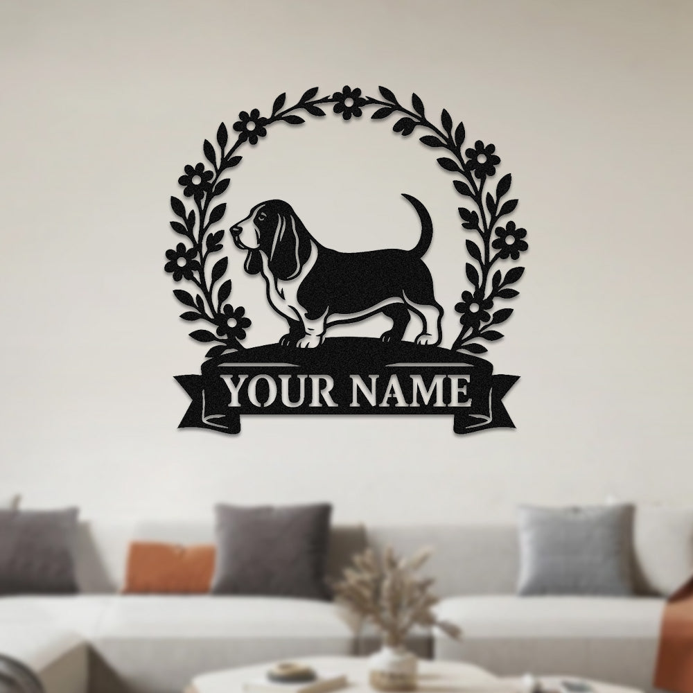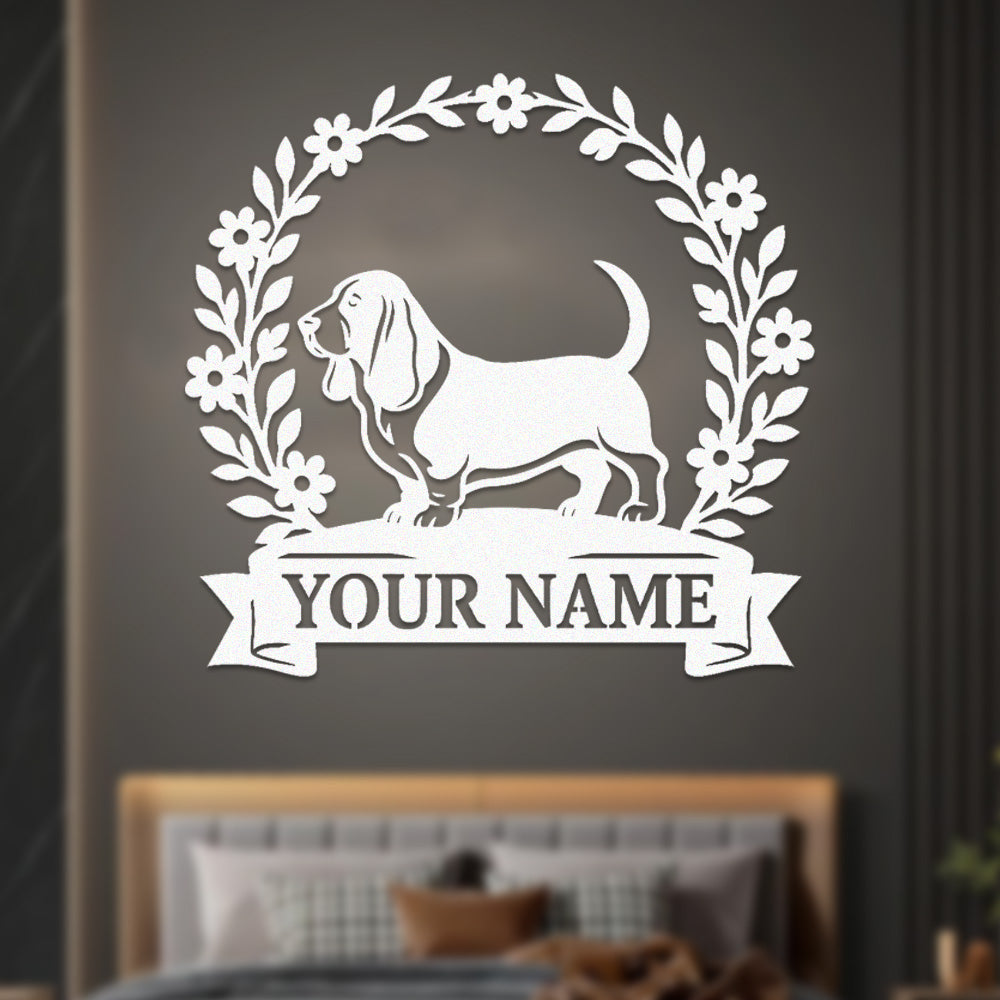 Basset Hound Wreath Metal Wall Art Dog Lover Personalized Memorial Metal Sign