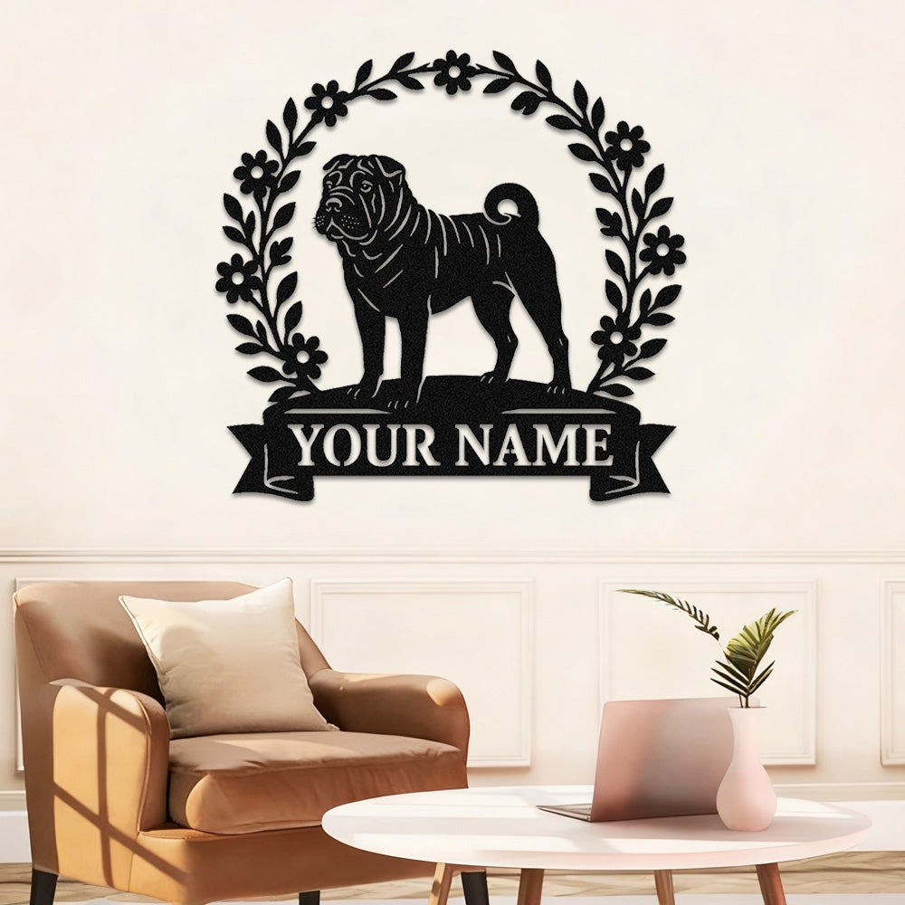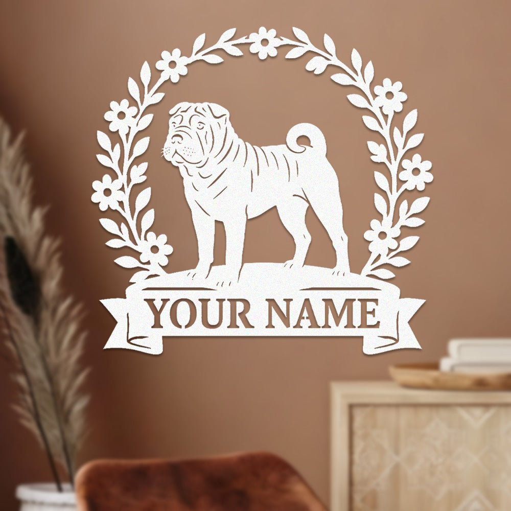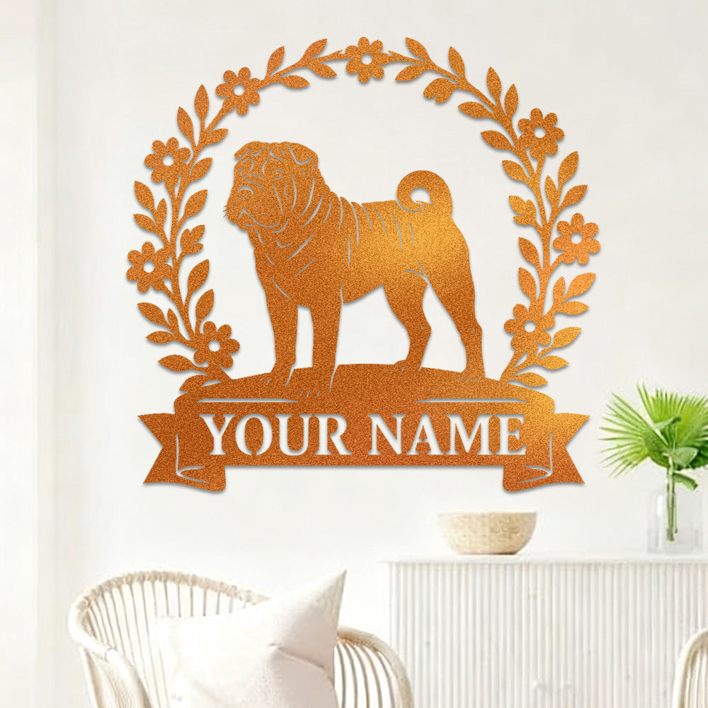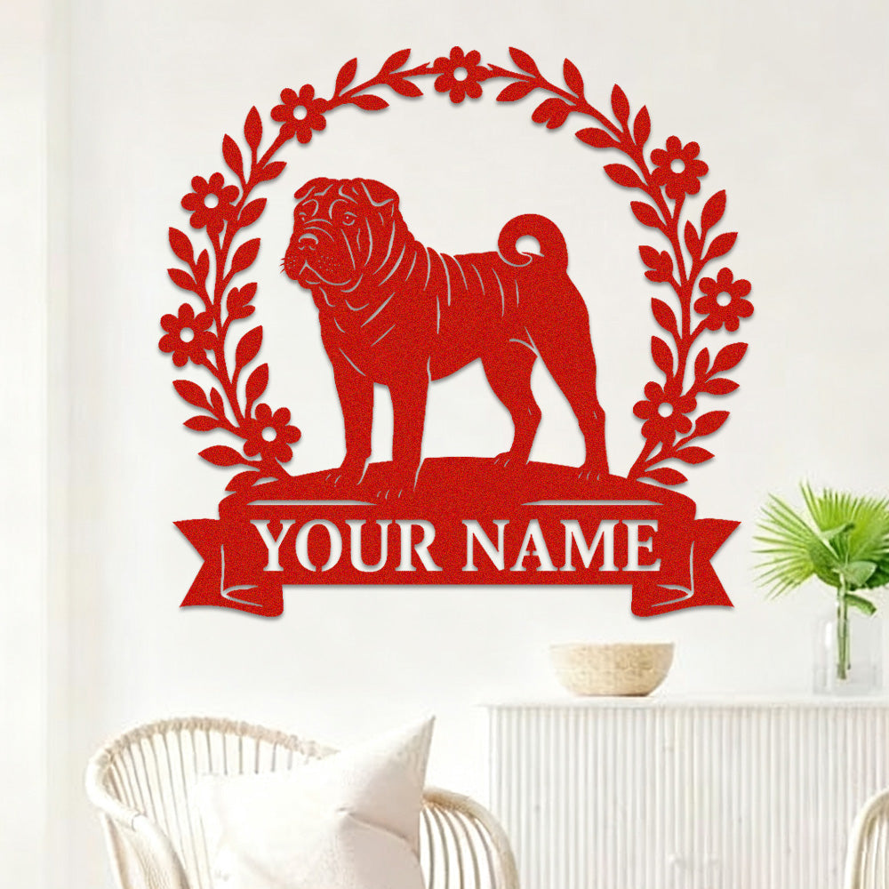 Chinese Shar-Pei Wreath Metal Wall Art Dog Lover Personalized Memorial Metal Sign