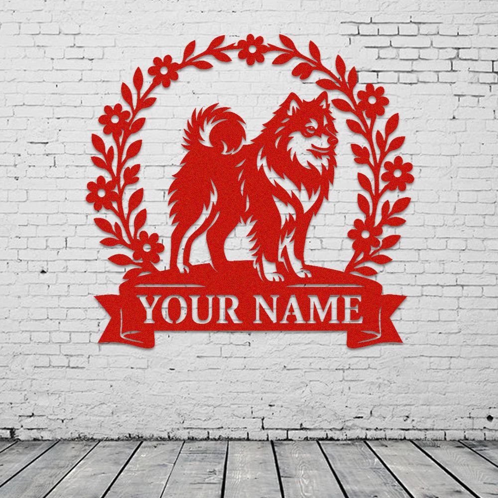 Finnish Lapphund Wreath Metal Wall Art Dog Lover Personalized Memorial Metal Sign