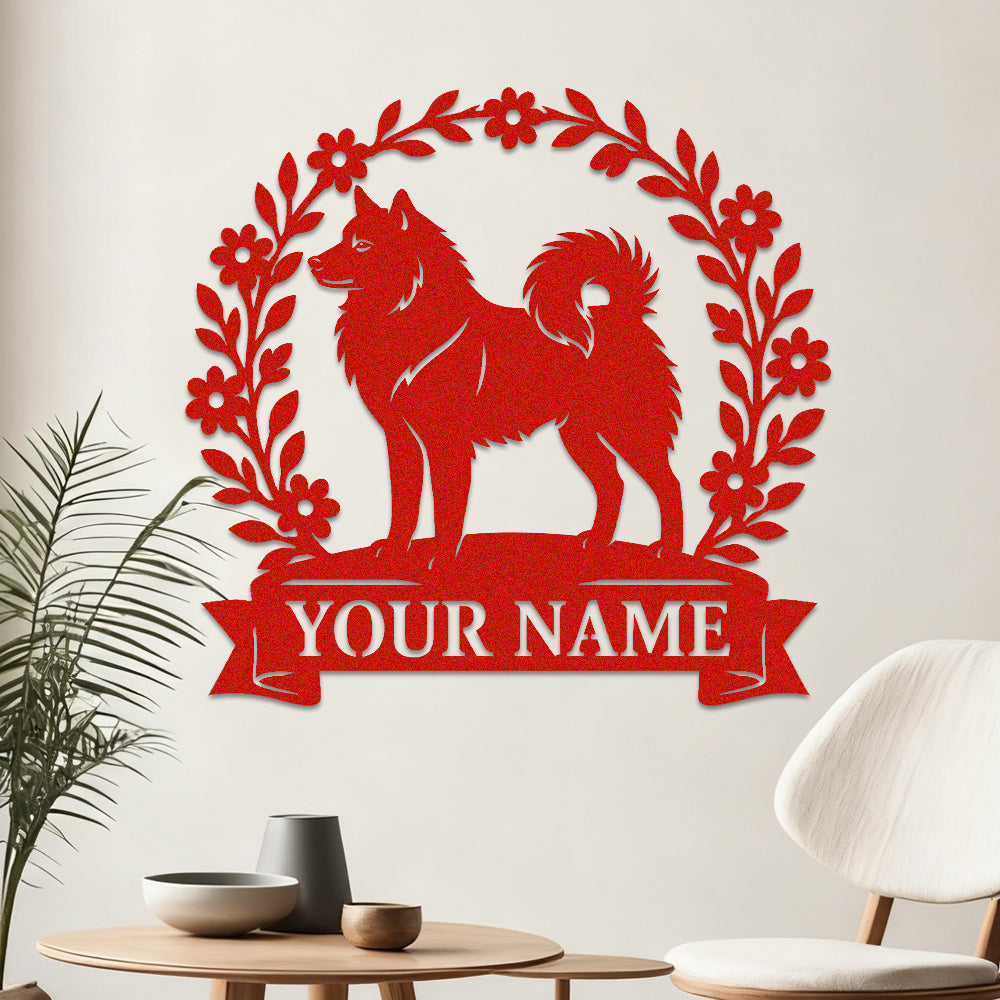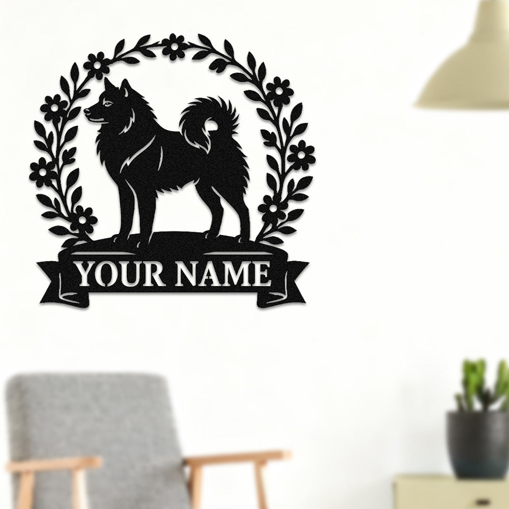 Finnish Spitz Wreath Metal Wall Art Dog Lover Personalized Memorial Metal Sign