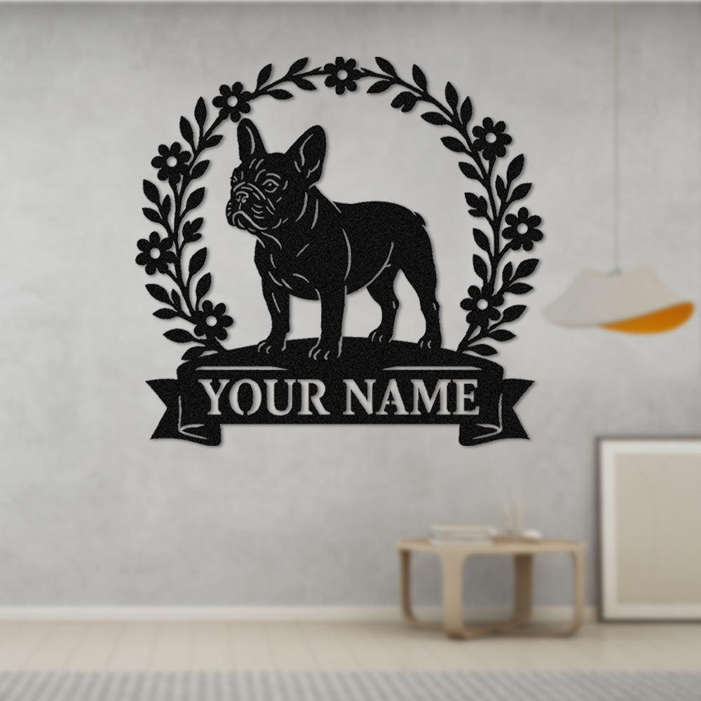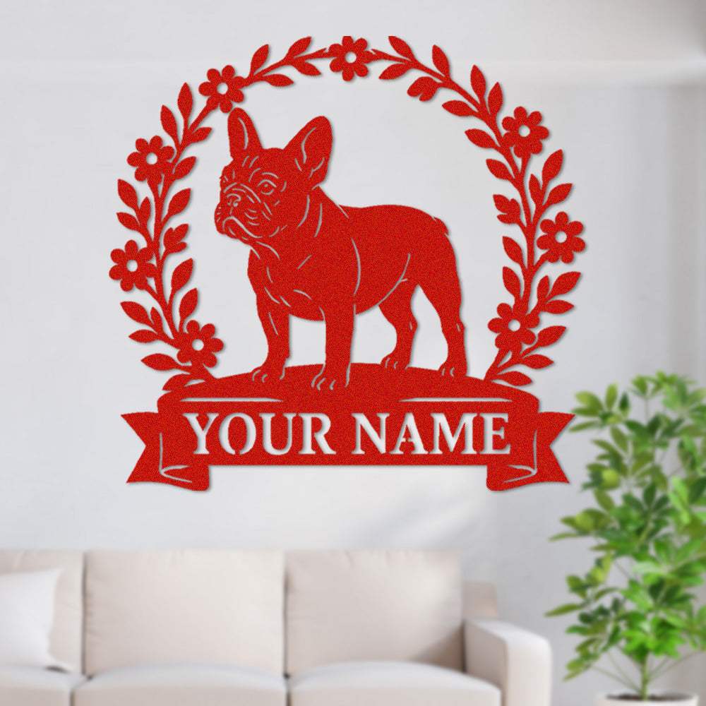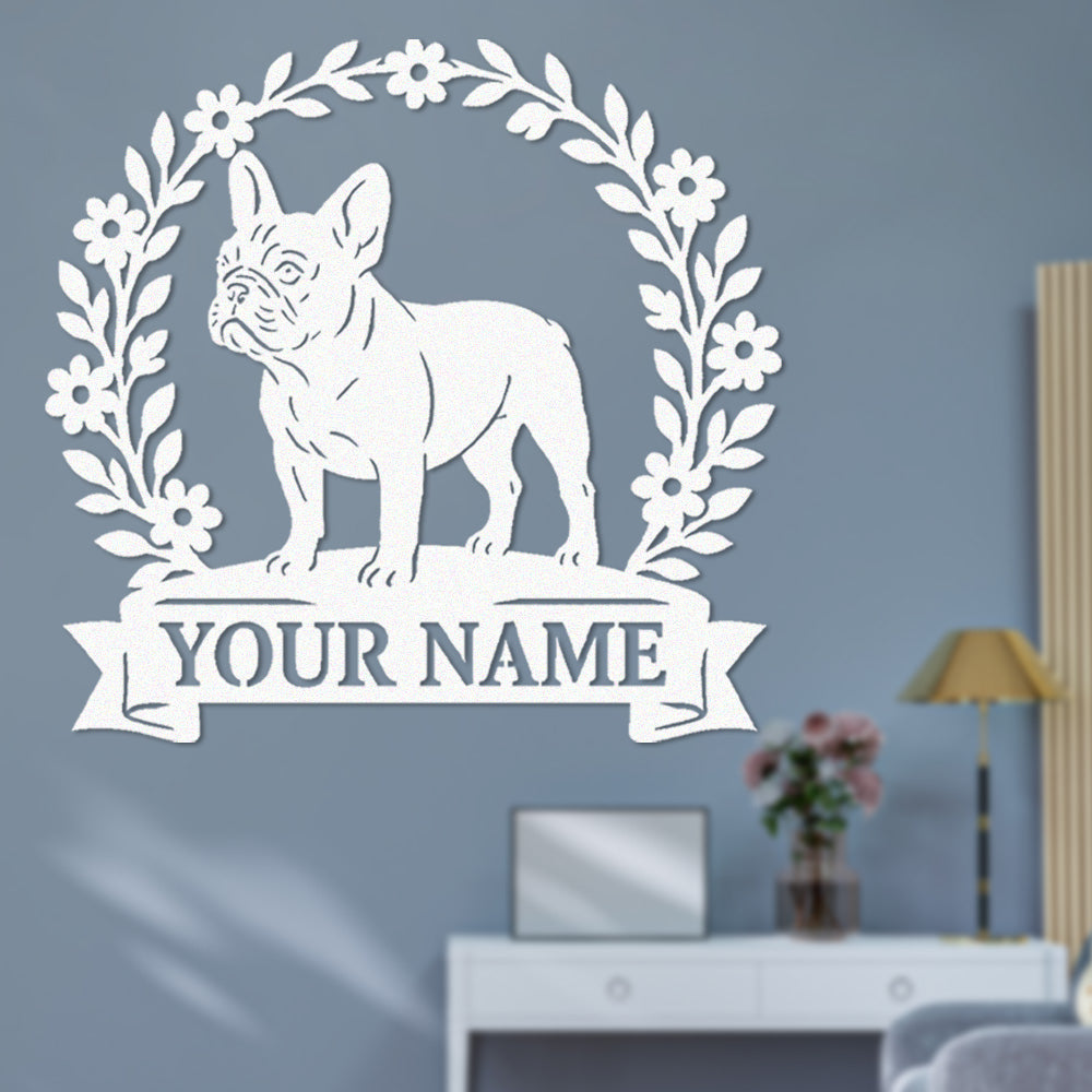 French Bulldog Wreath Metal Wall Art Dog Lover Personalized Memorial Metal Sign