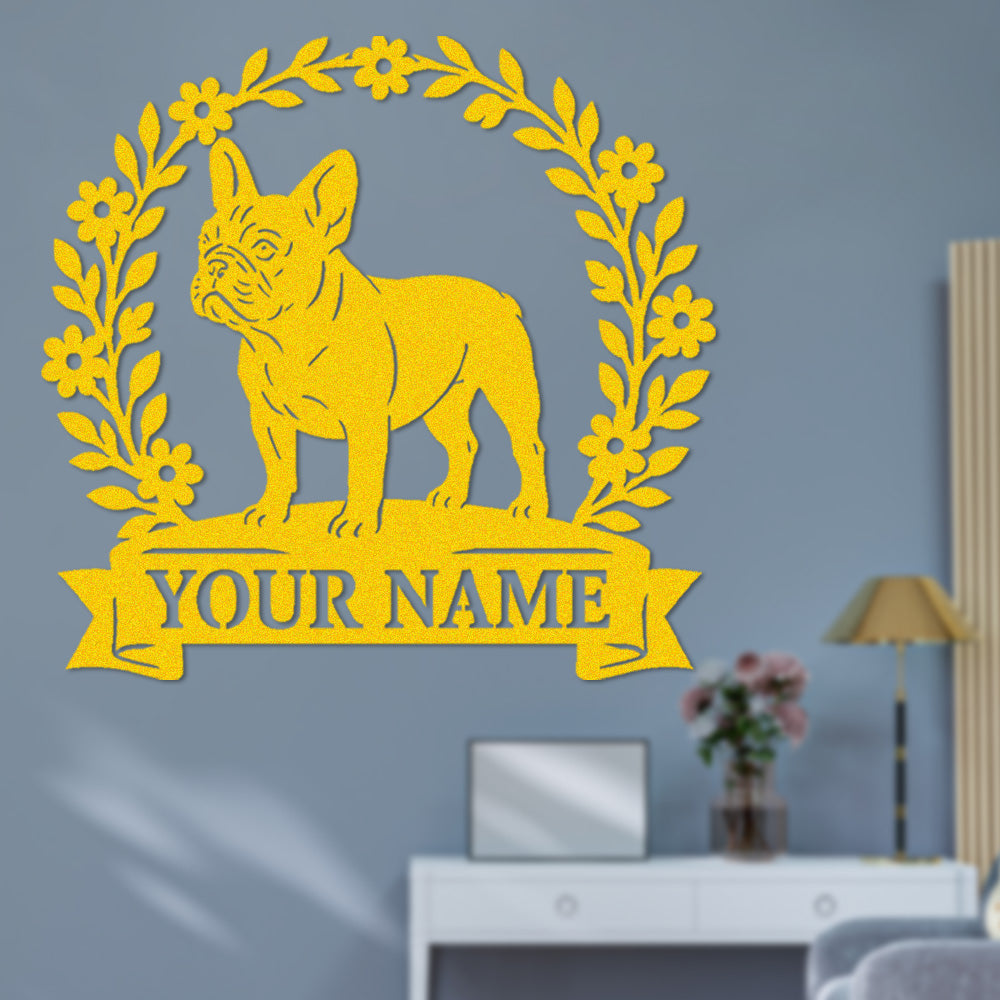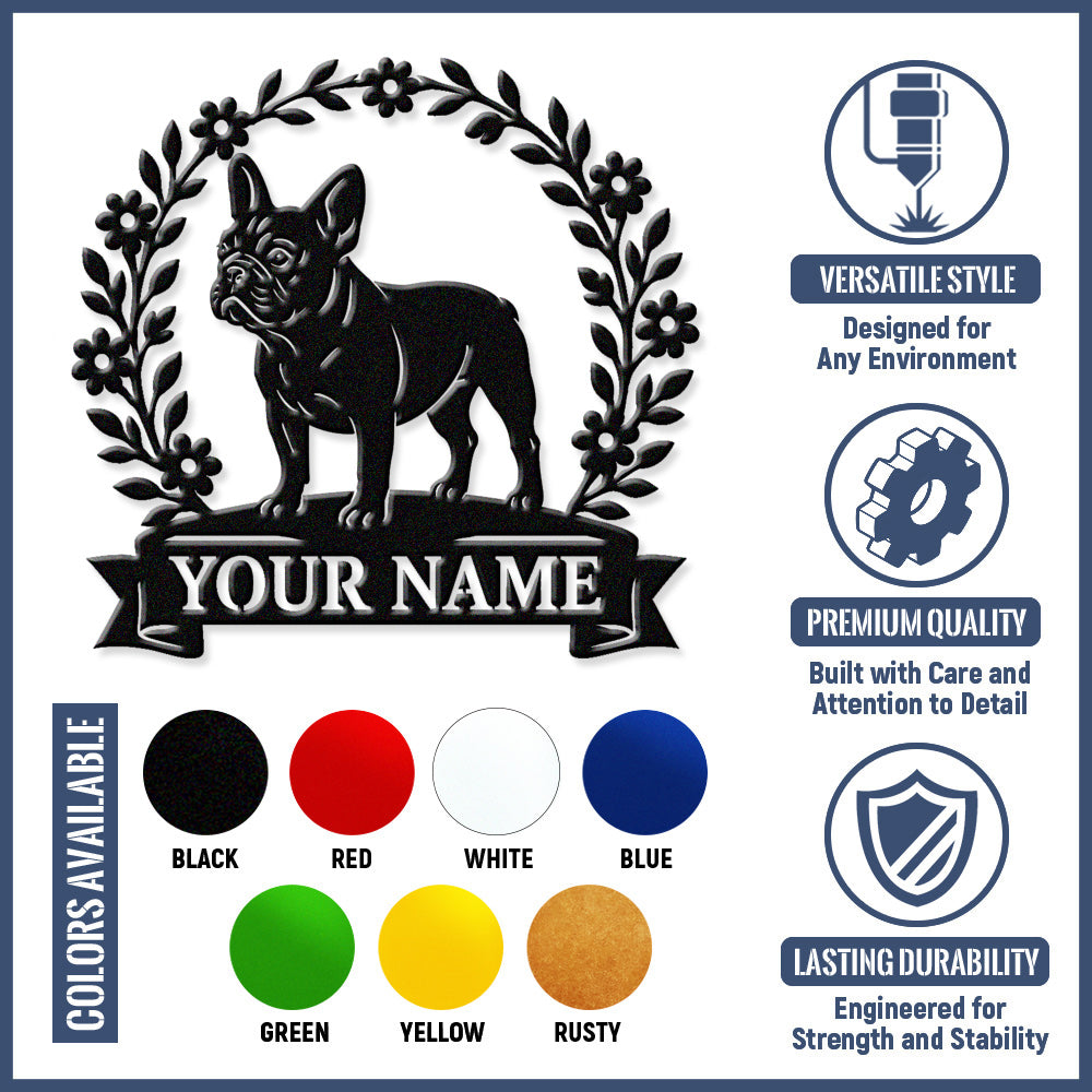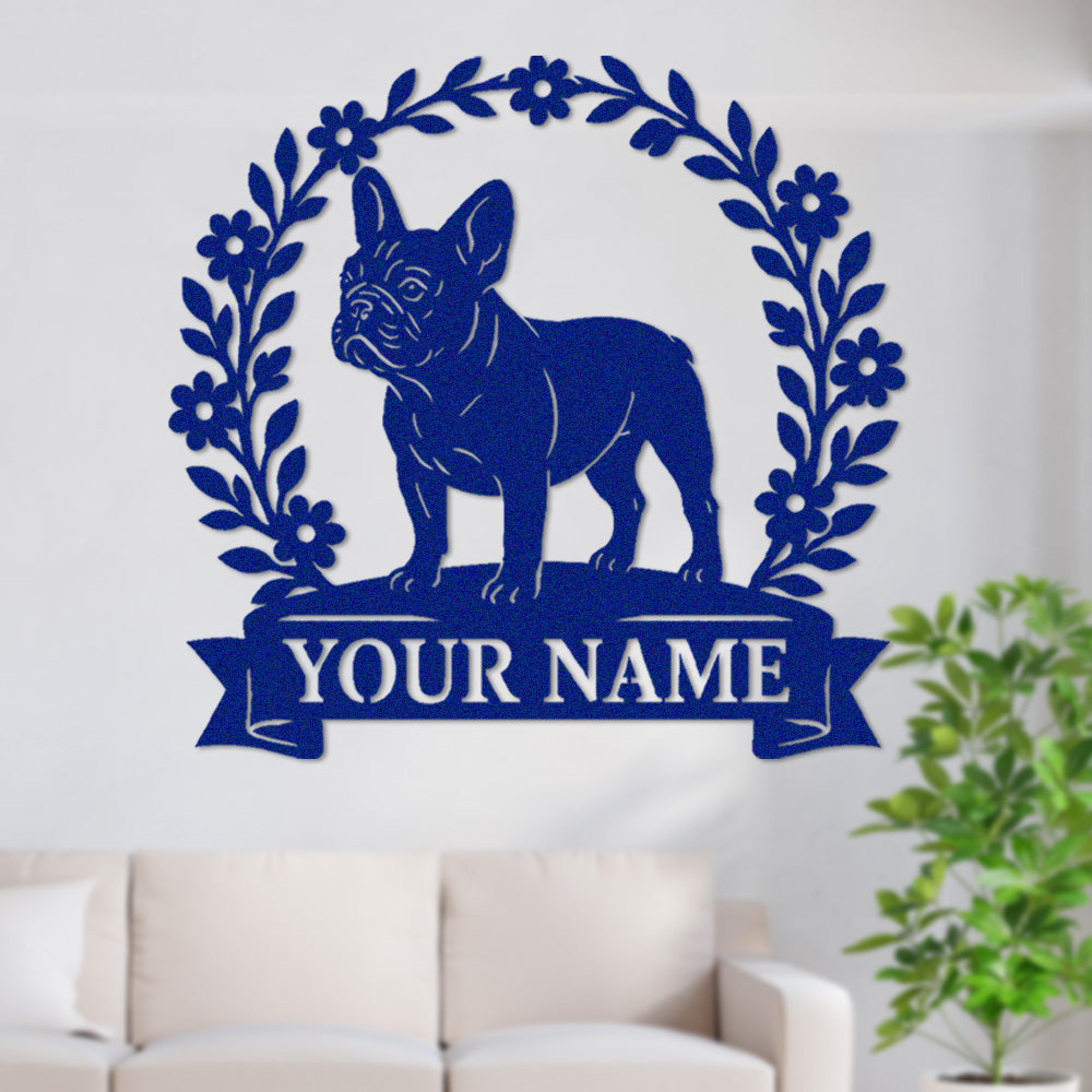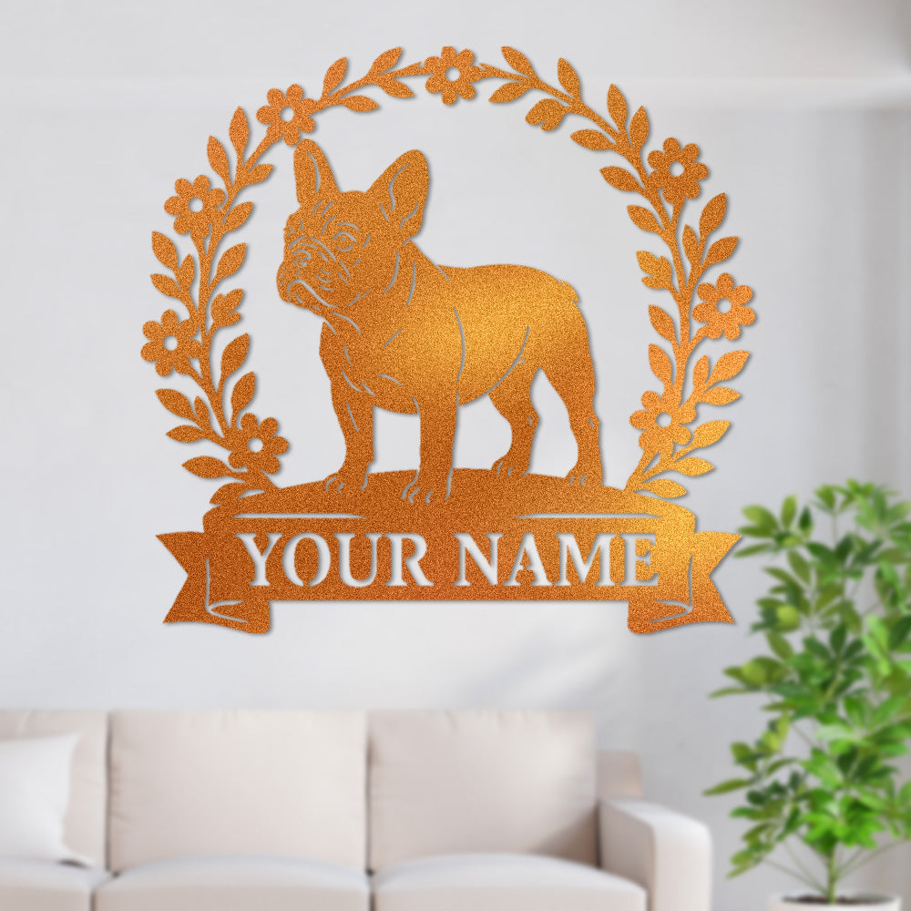 French Bulldog Wreath Metal Wall Art Dog Lover Personalized Memorial Metal Sign
