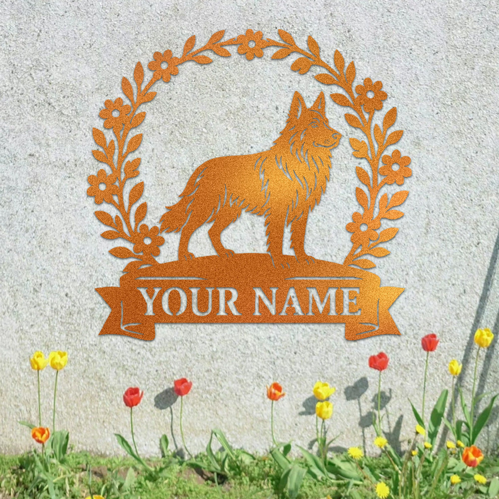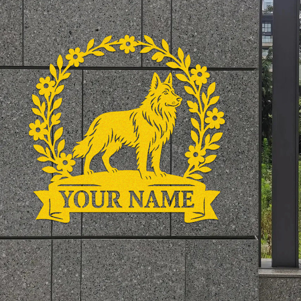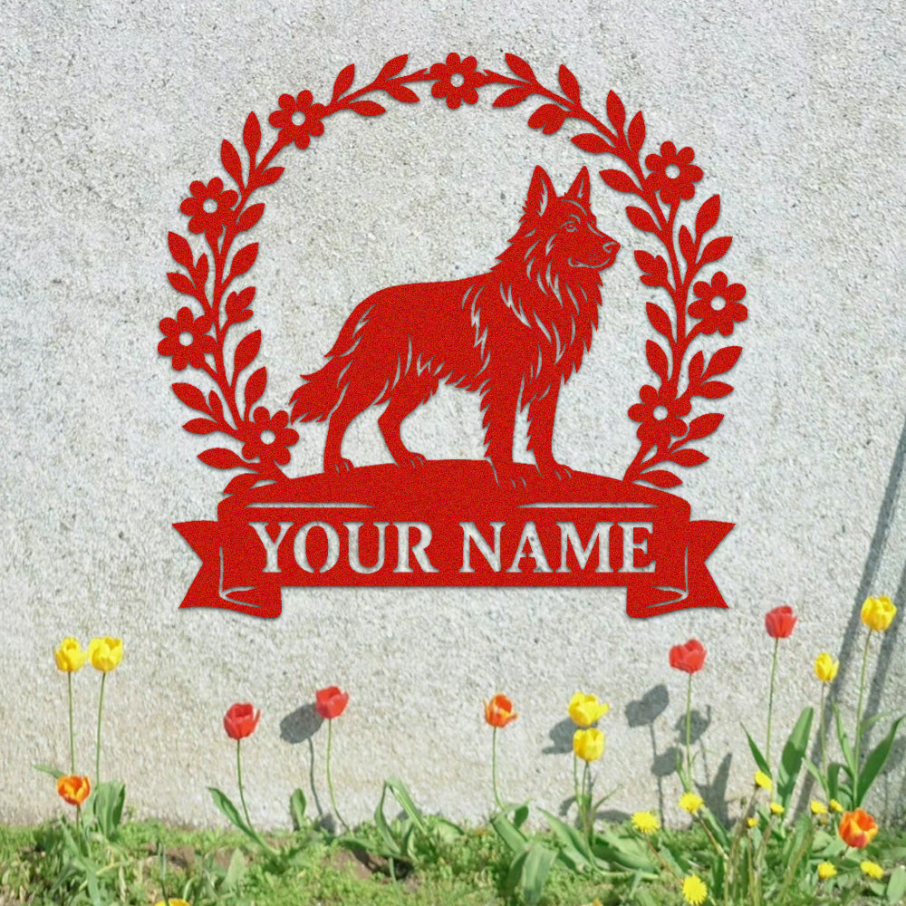 German Shepherd Wreath Metal Wall Art Dog Lover Personalized Memorial Metal Sign