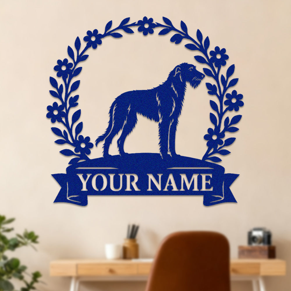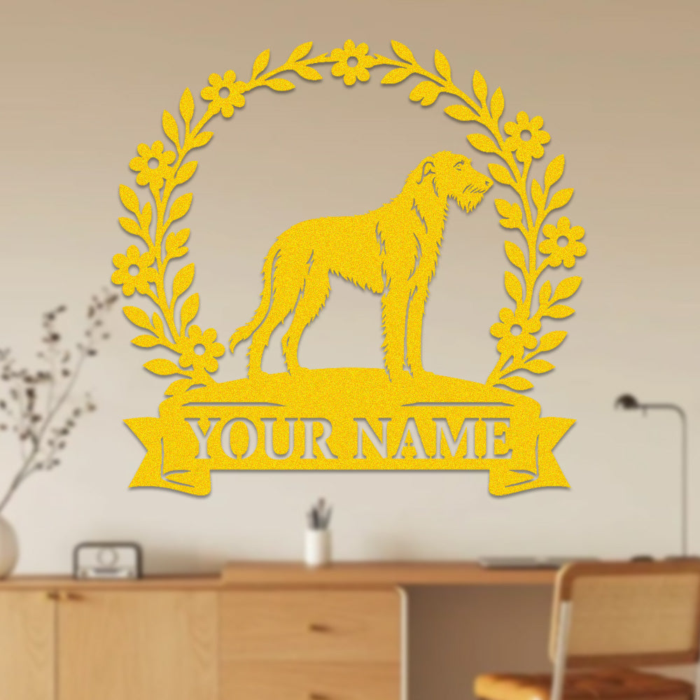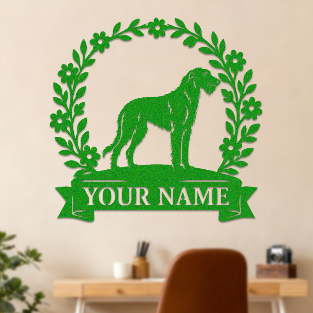 Irish Wolfhound Wreath Metal Wall Art Dog Lover Personalized Memorial Metal Sign
