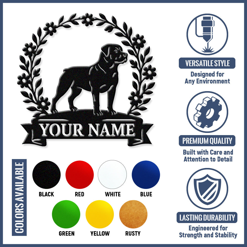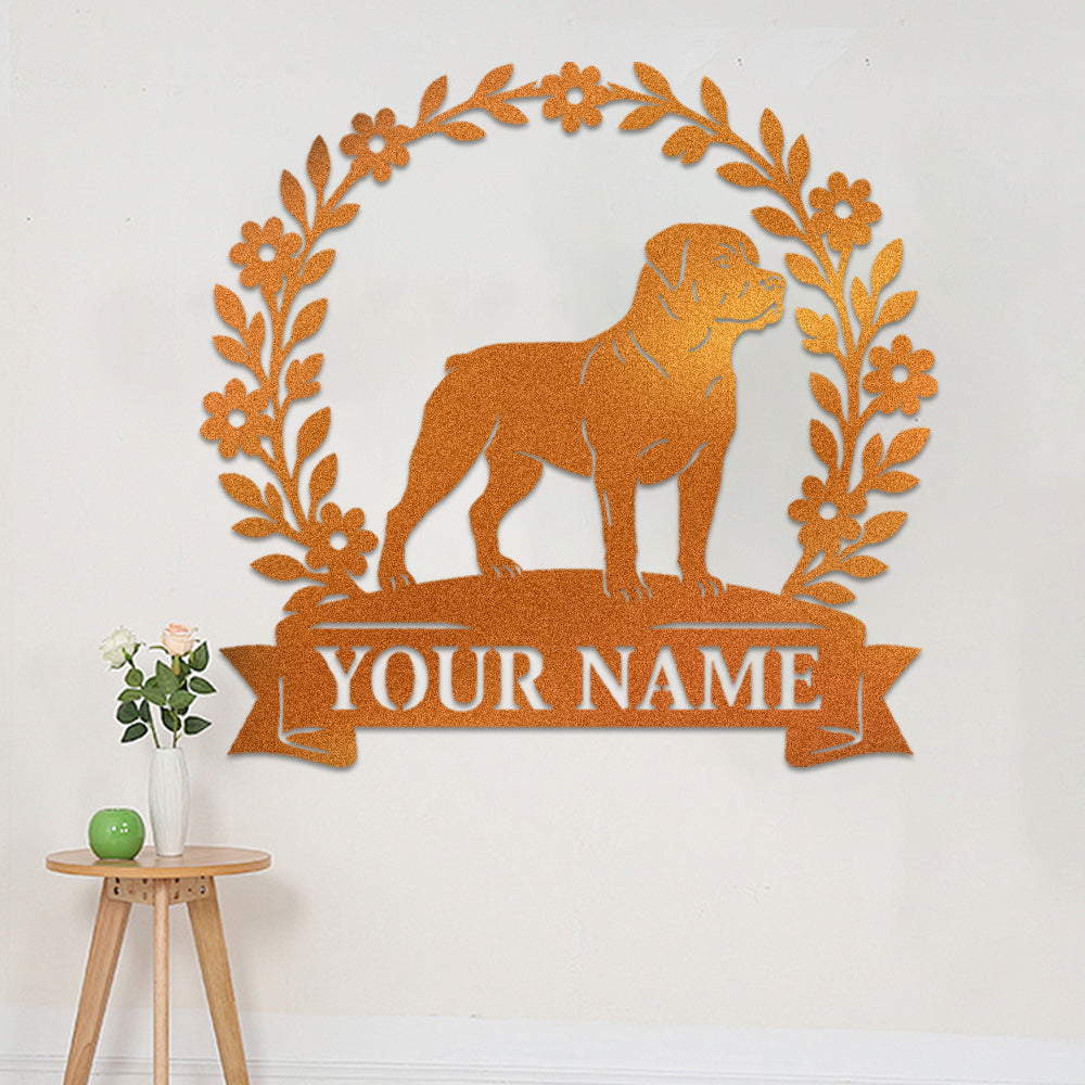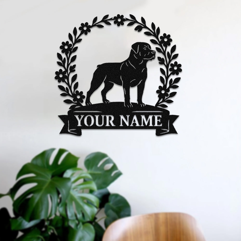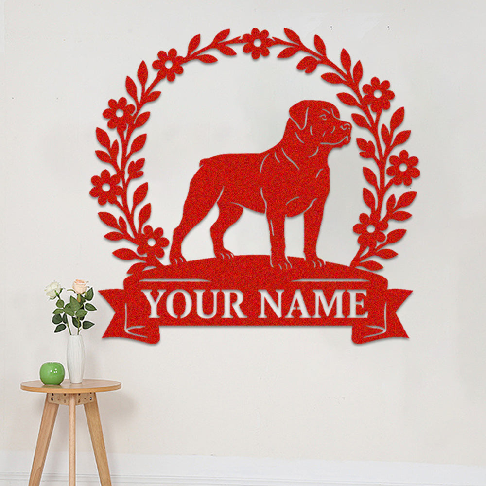 Rottweiler Wreath Metal Wall Art Dog Lover Personalized Memorial Metal Sign