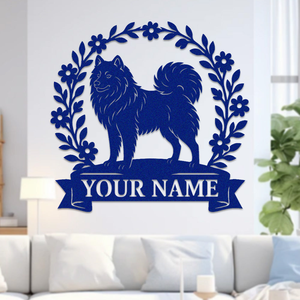 Samoyed Wreath Metal Wall Art Dog Lover Personalized Memorial Metal Sign
