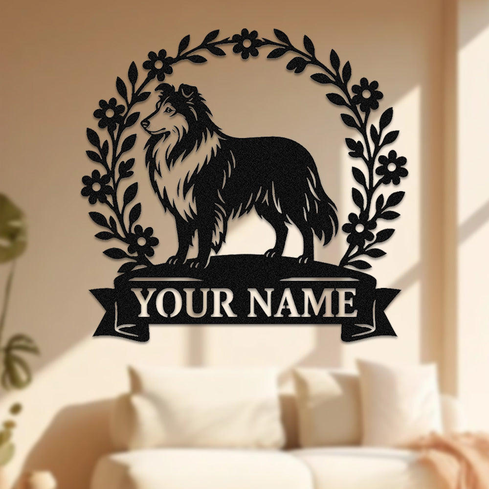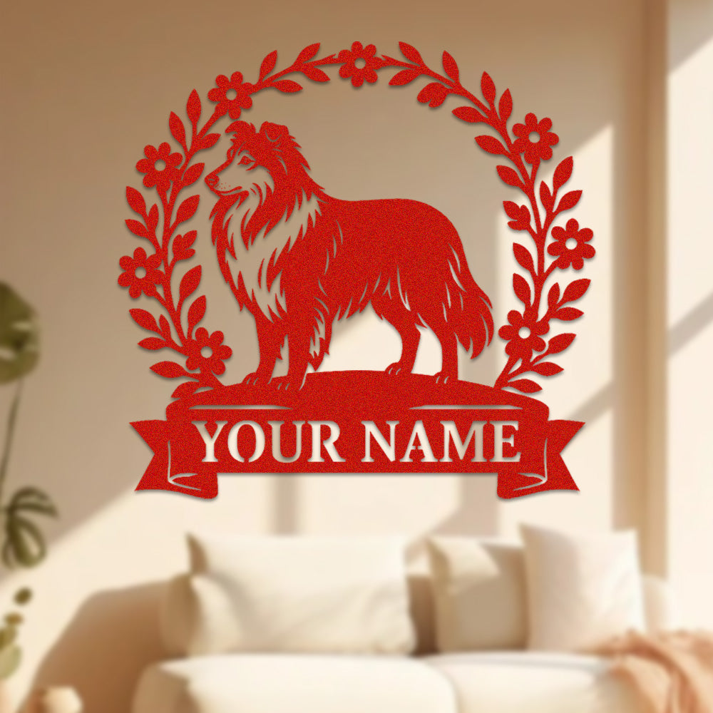 Shetland Sheepdog Wreath Metal Wall Art Dog Lover Personalized Memorial Metal Sign
