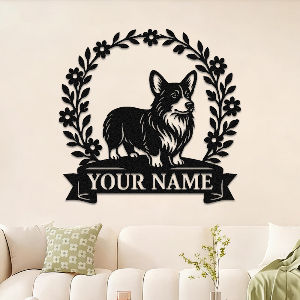 Welsh Corgi Wreath Metal Wall Art Dog Lover Personalized Memorial Metal Sign