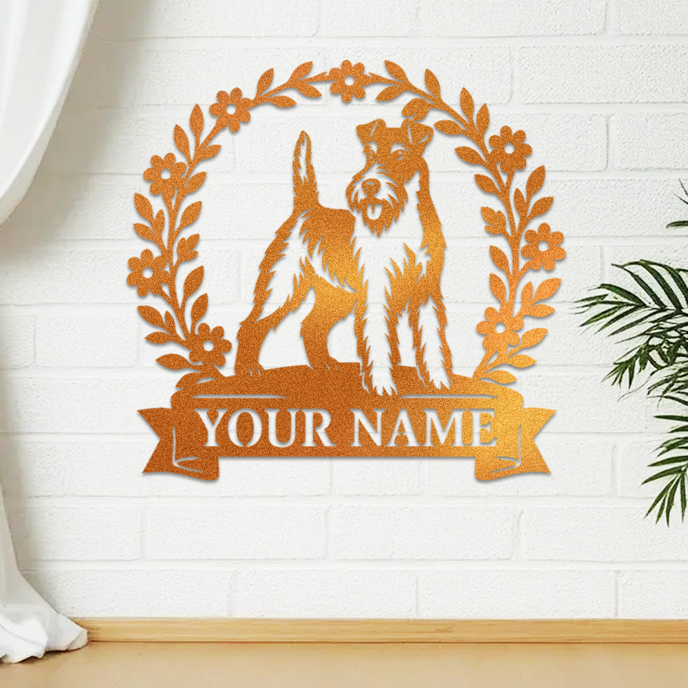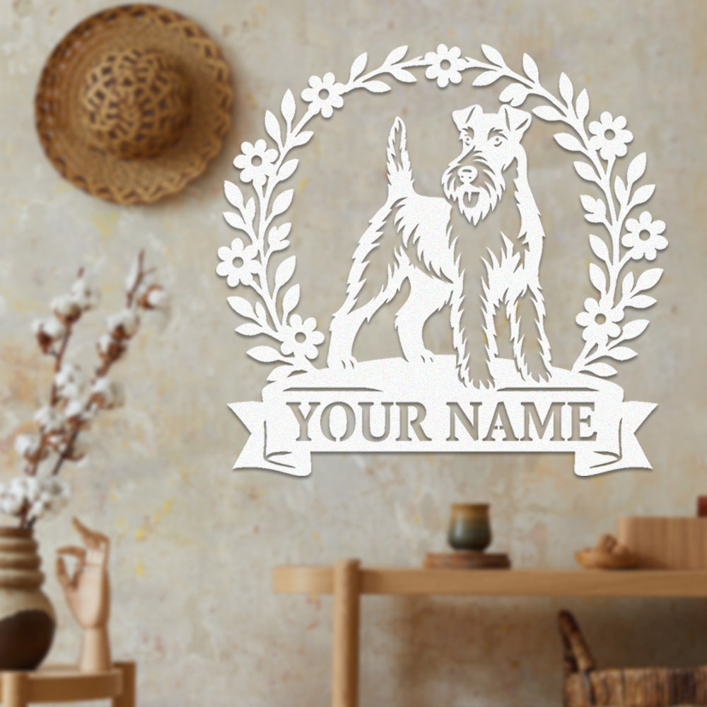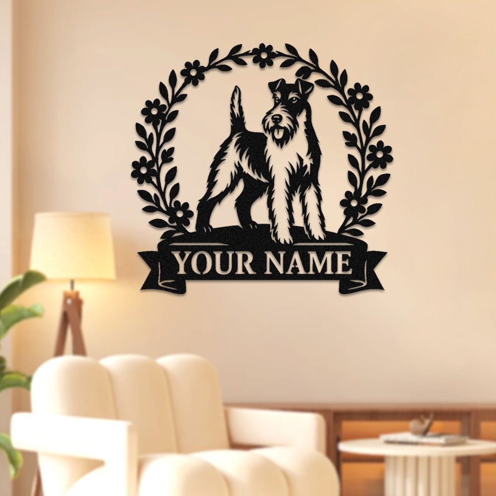 Wire Fox Terrier Wreath Metal Wall Art Dog Lover Personalized Memorial Metal Sign